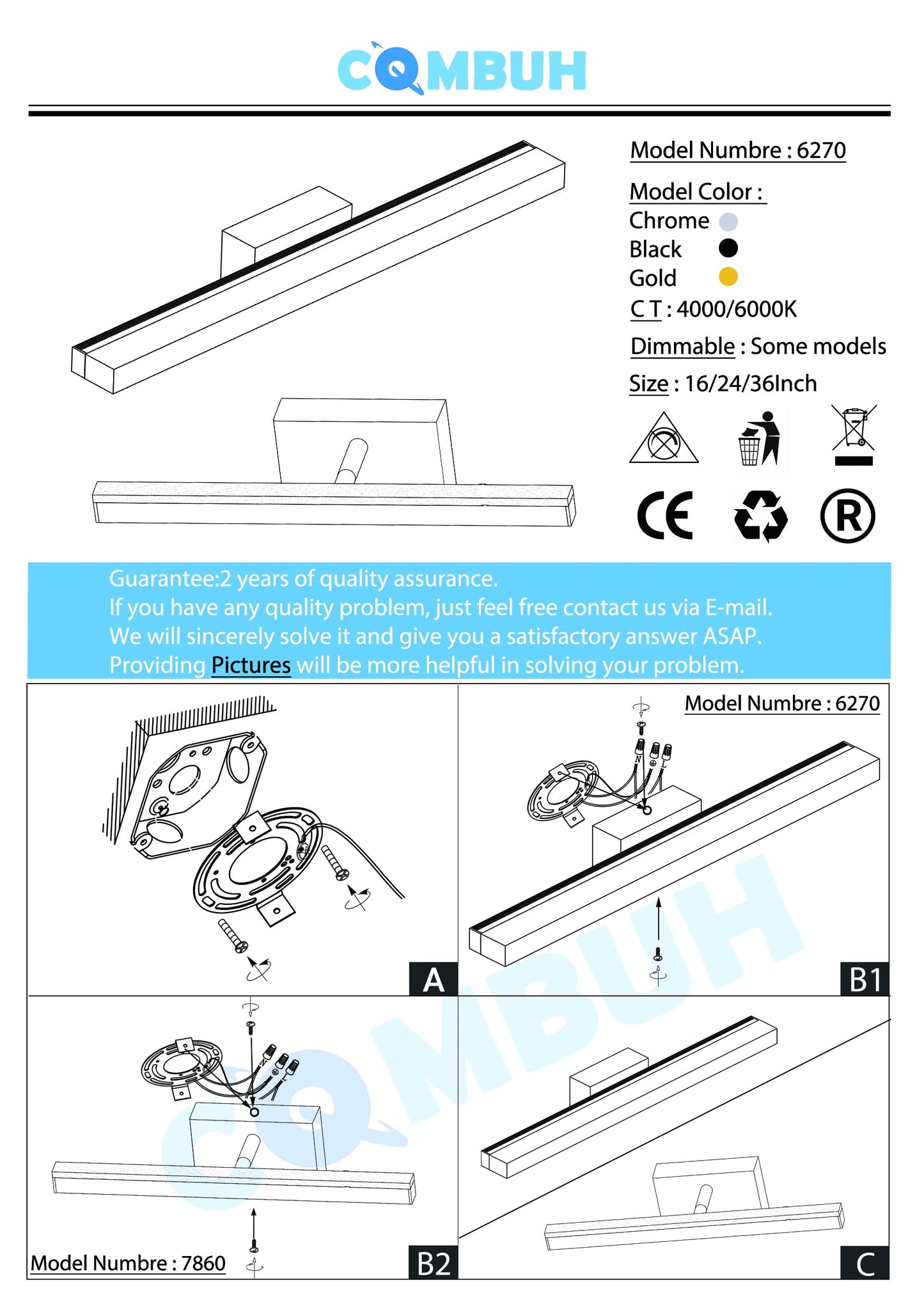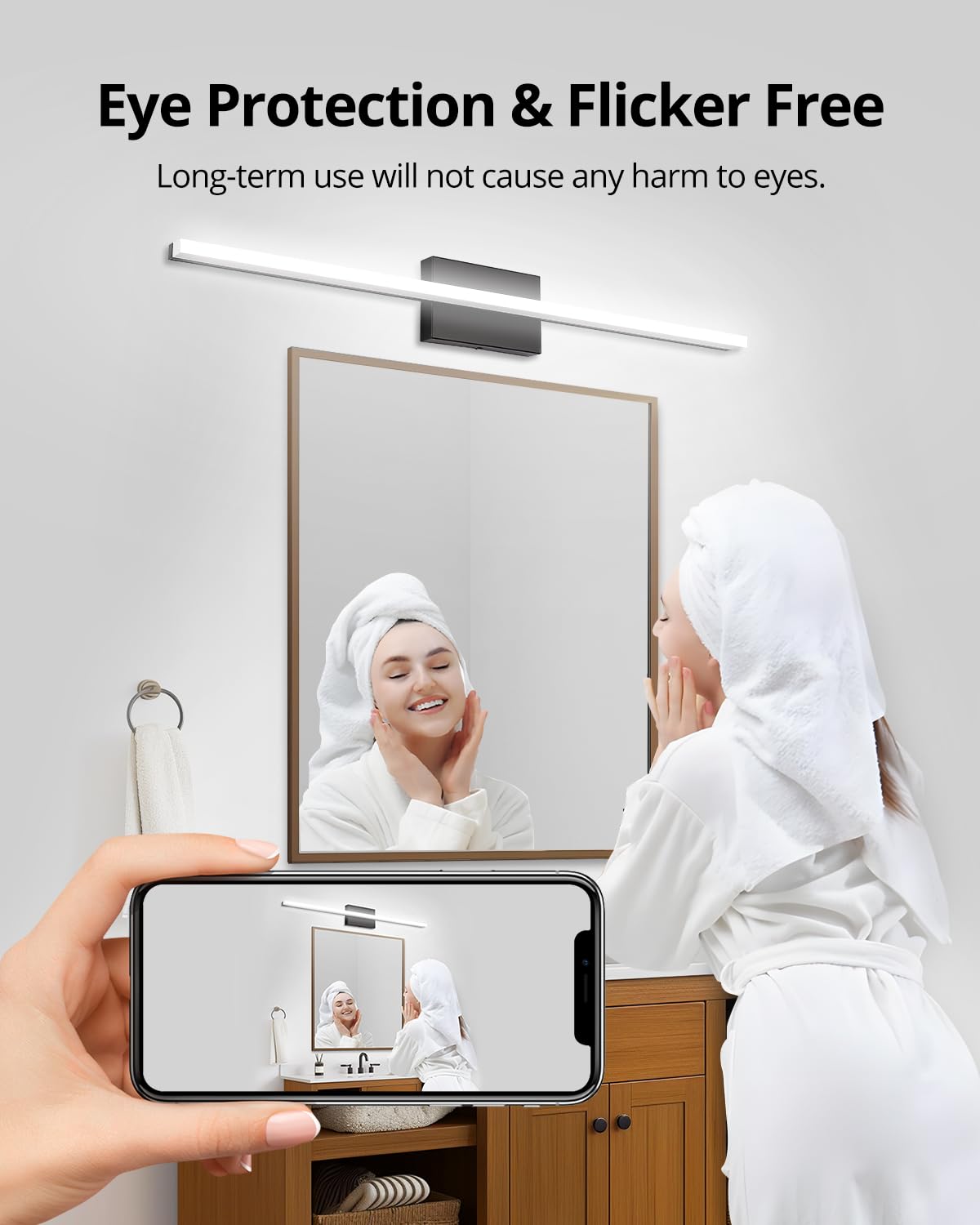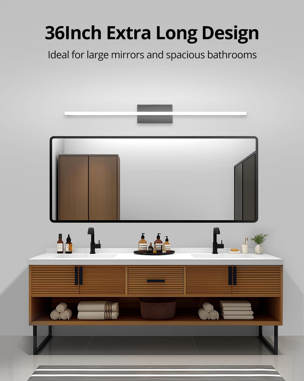 - MODERN DESIGN: The Bathroom Lamp features a sleek and modern design, with 9W/16Inch, providing 800LM of cool white light at a color temperature of 6000K. The softer light color creates a comfortable atmosphere in your bathroom. Not dimmable.
