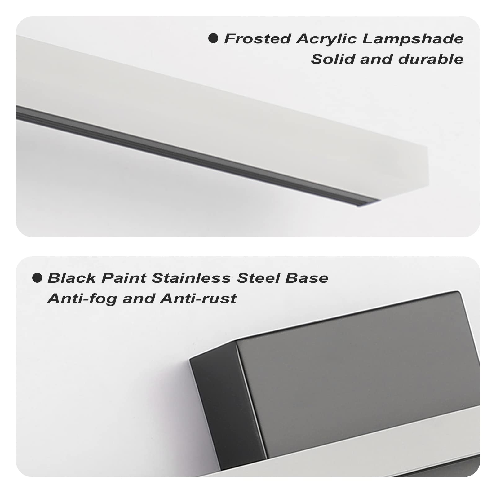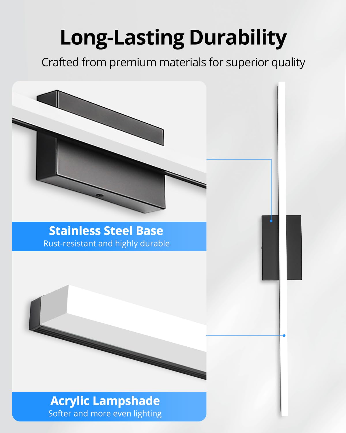 - HIGH-QUALITY CONSTRUCTION: The bathroom wall light over the mirror is constructed with a durable stainless steel base and acrylic material, ensuring longevity and preventing rust.