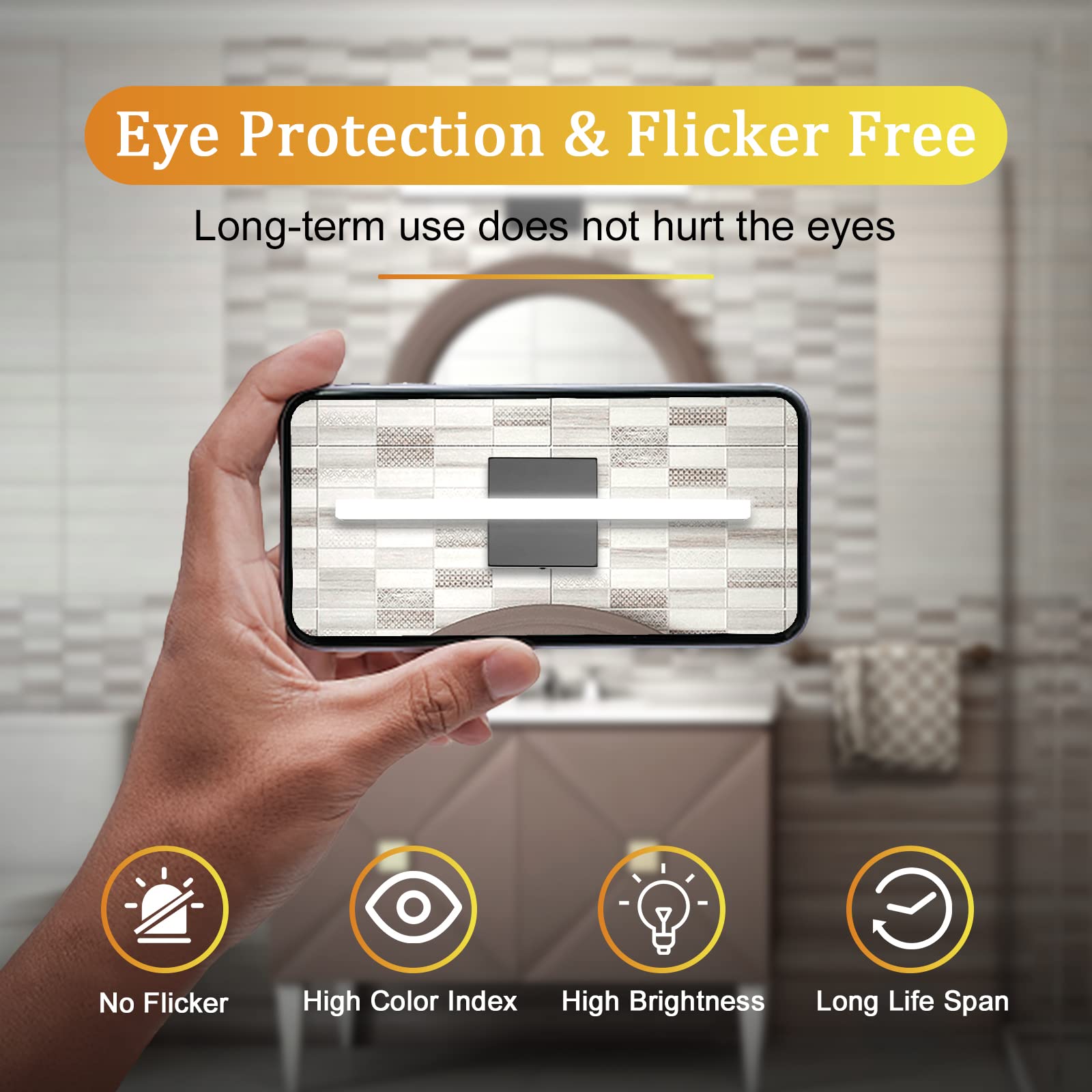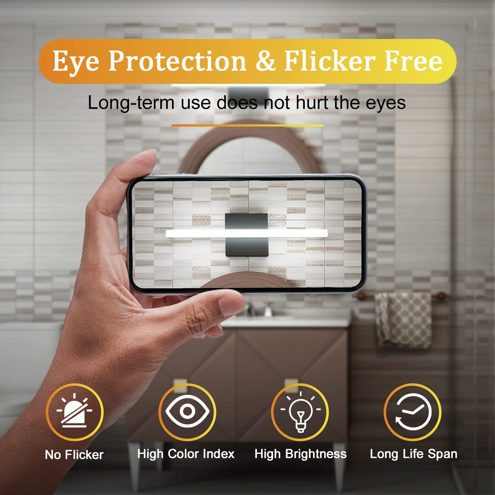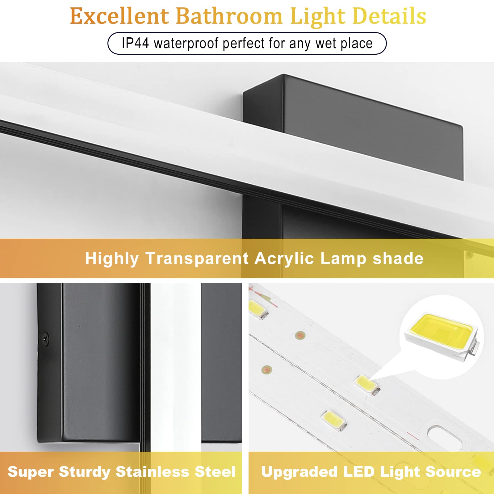 - PREMIUM LED Integrated: The Vanity Lights for Bathroom are equipped with 2835SMD LED integrated inside, delivering brilliant light while ensuring eye protection and eliminating any flash. The built-in short circuit protection enhances safety, and the energy-saving design helps you save electricity bills.