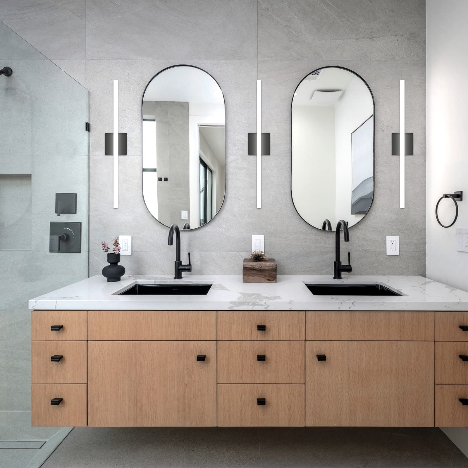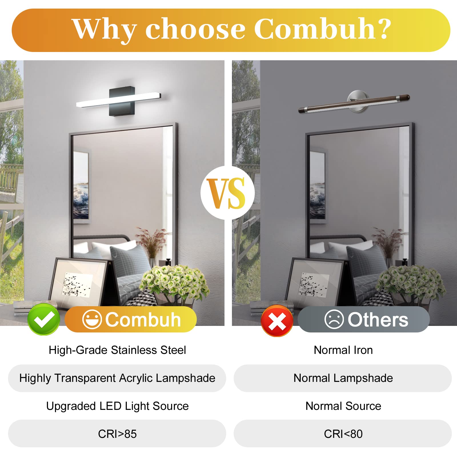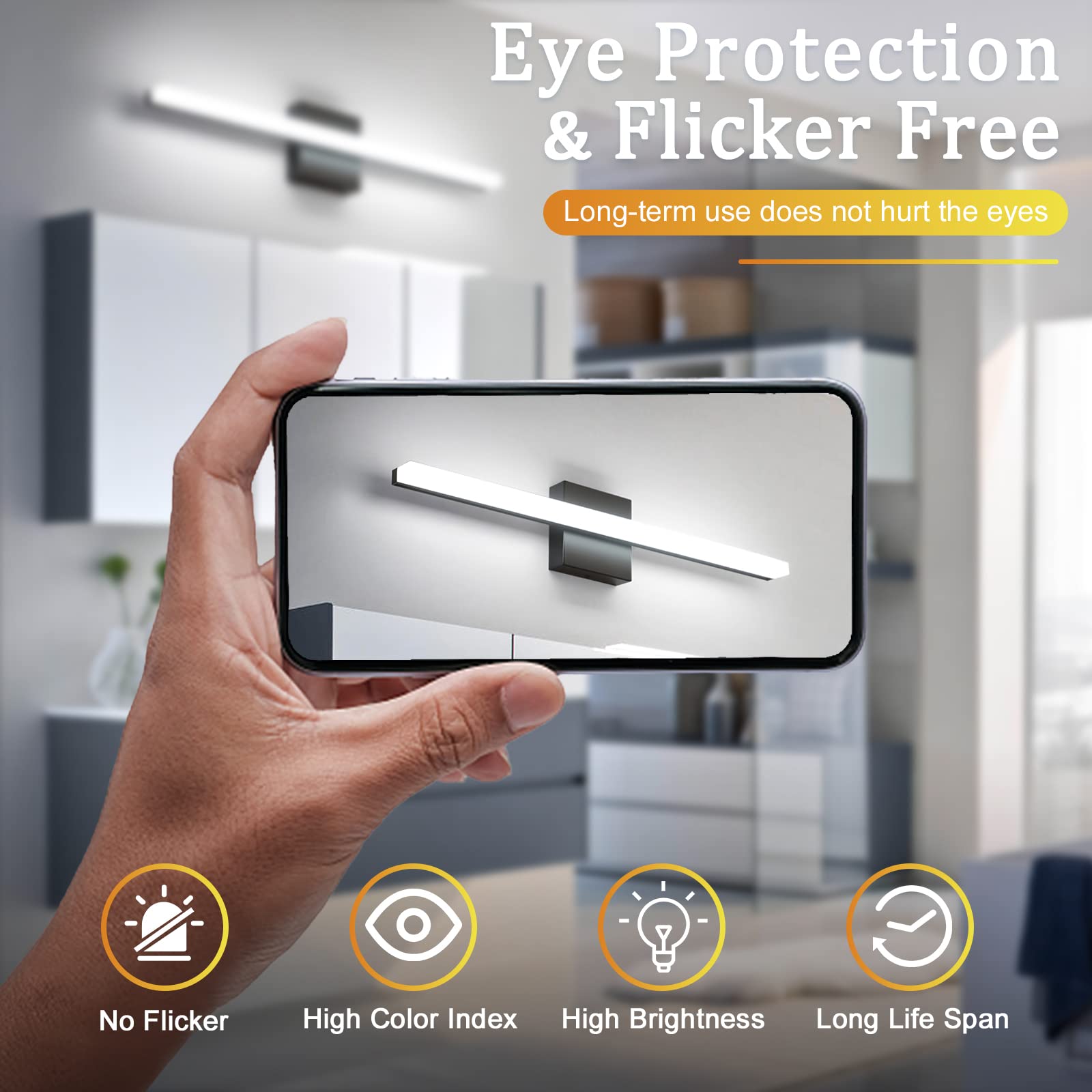 - PREMIUM LED Integrated: The Vanity Lights for Bathroom are equipped with 2835SMD LED integrated inside, delivering brilliant light while ensuring eye protection and eliminating any flash. The built-in short circuit protection enhances safety, and the energy-saving design helps you save electricity bills.