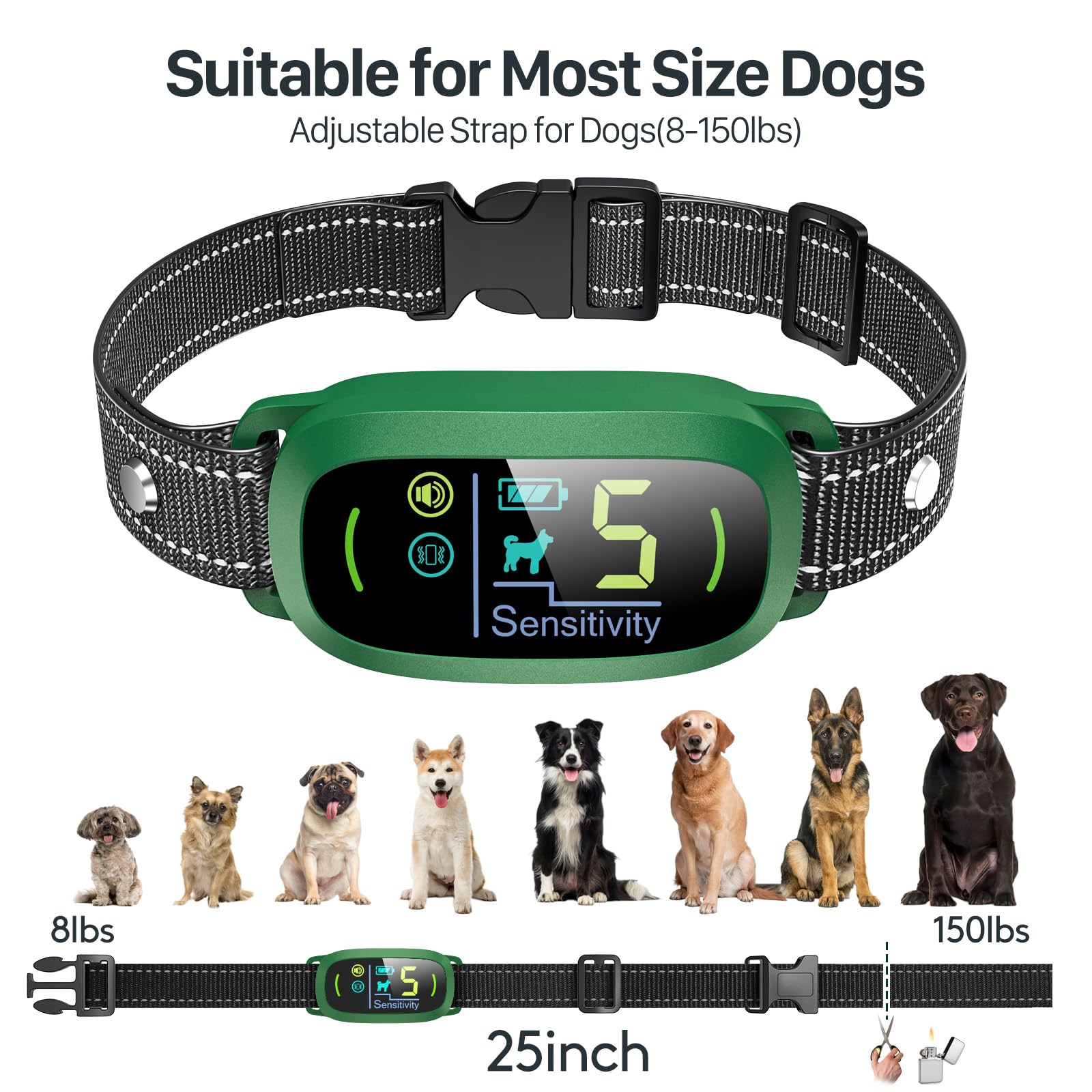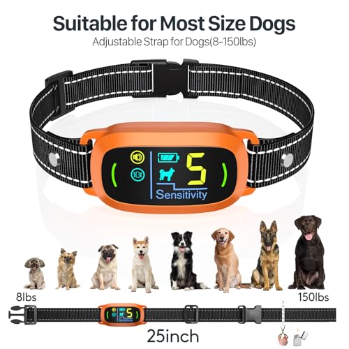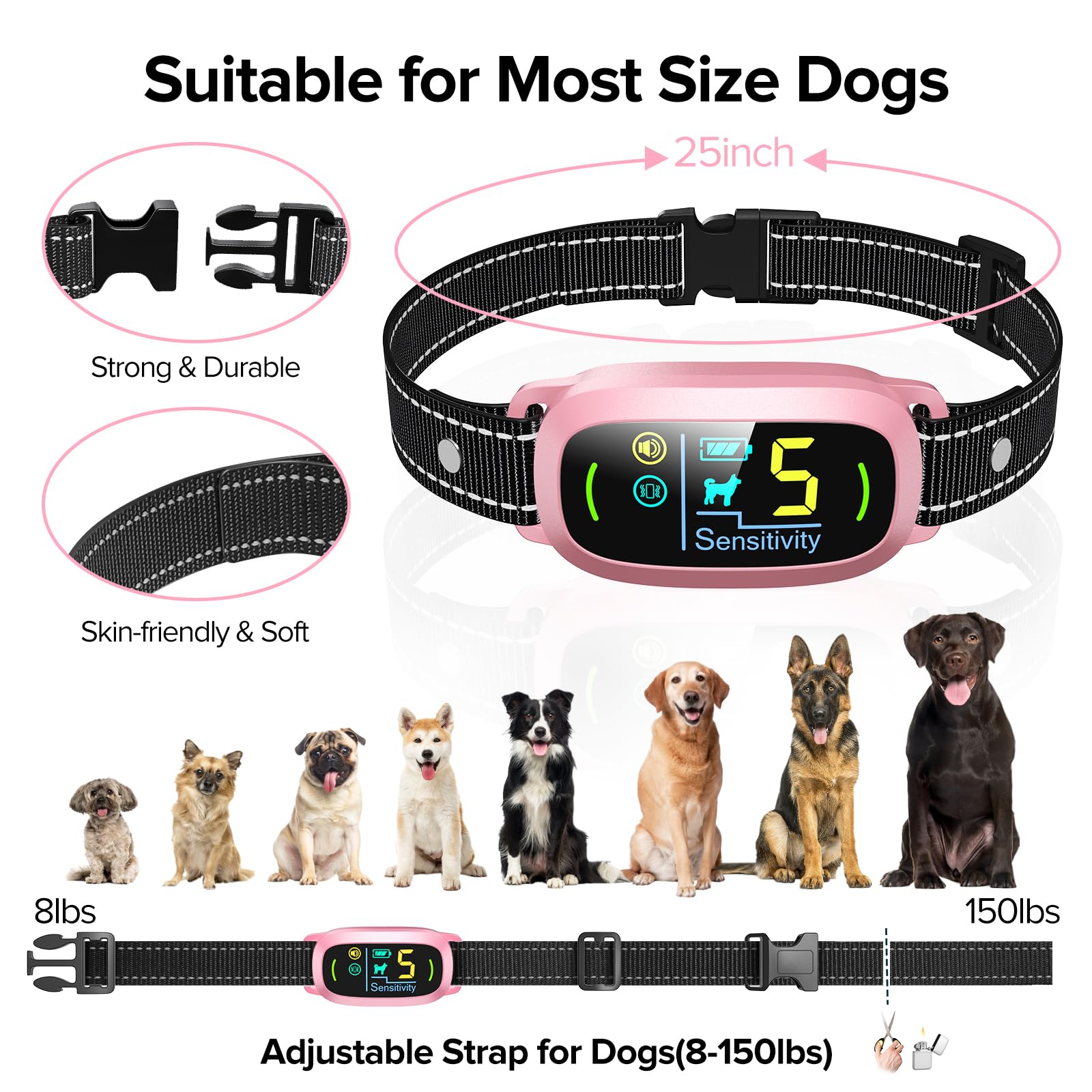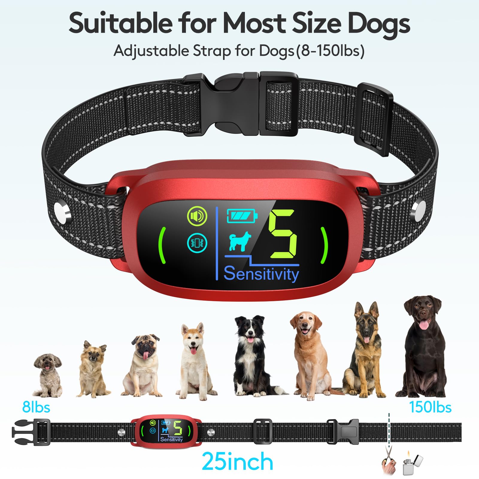 - Fits Most Dogs: Our bark collar is 27 inches long and weighs 0.17 lbs, suitable for dogs weighing 8 to 150 lbs with neck sizes from 8 to 25 inches, and is ideal for dogs over 6 months old. The bark collar length can be adjusted as your dog grows