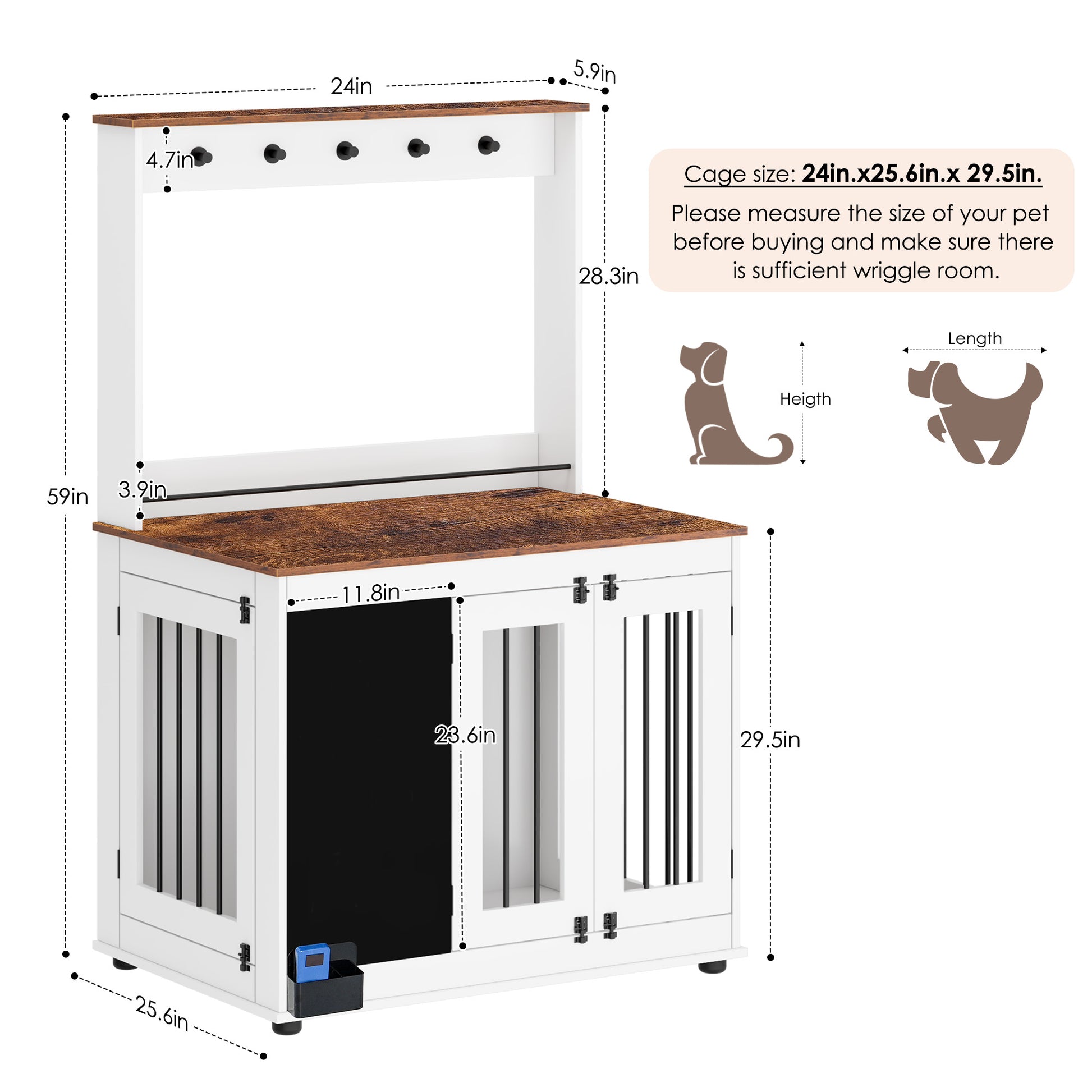 Dog crate,Graffiti dog cage, kennel with double doors, crate interior furniture, heavy wooden dog cage, large dog, white