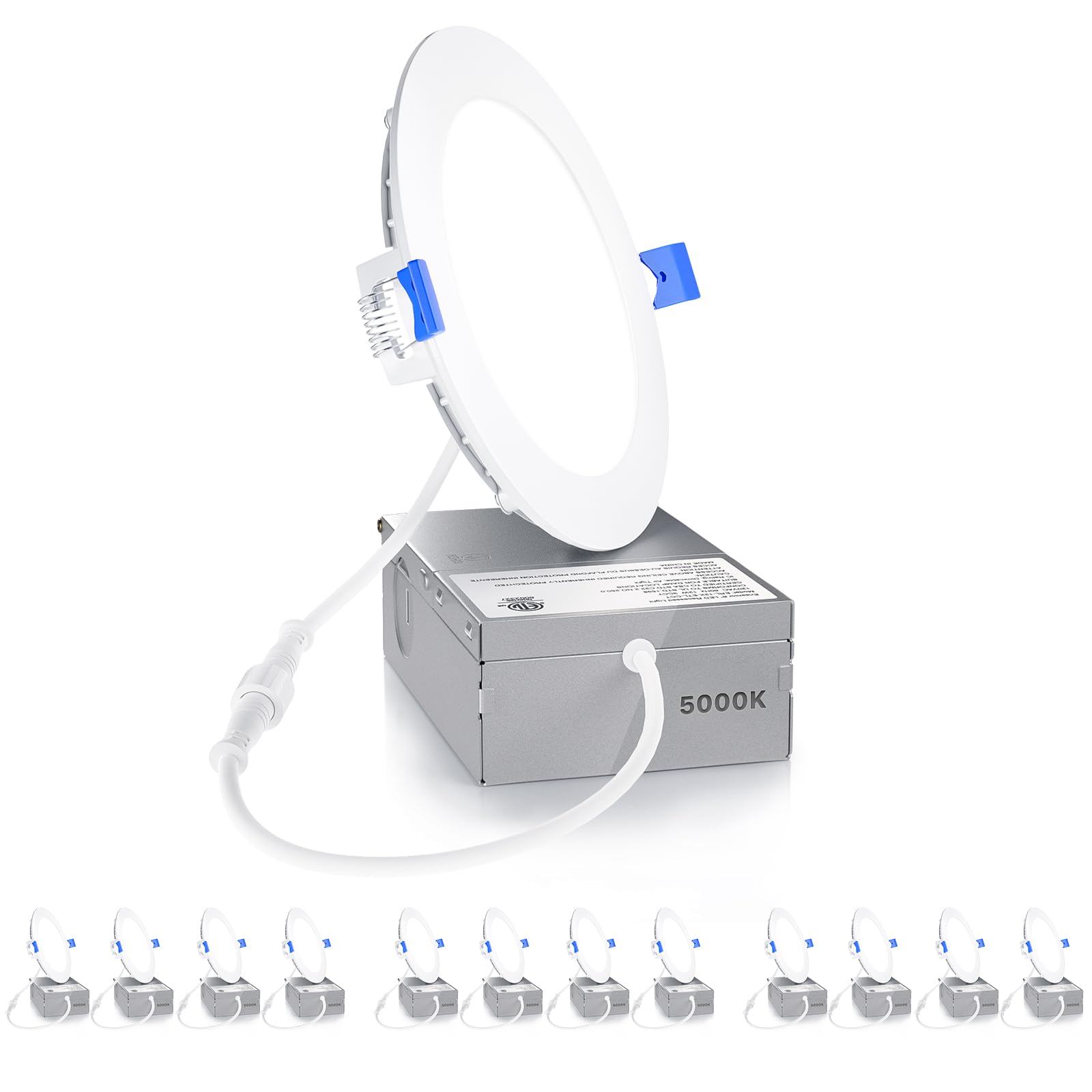 Ensenior 12 Pack 4 Inch LED Recessed Ceiling Light, Dimmable, 2700K-5000K 5CCT, 750LM 9W 120V, High Brightness Canless Wafer Downlight - ETL&FCC&IC