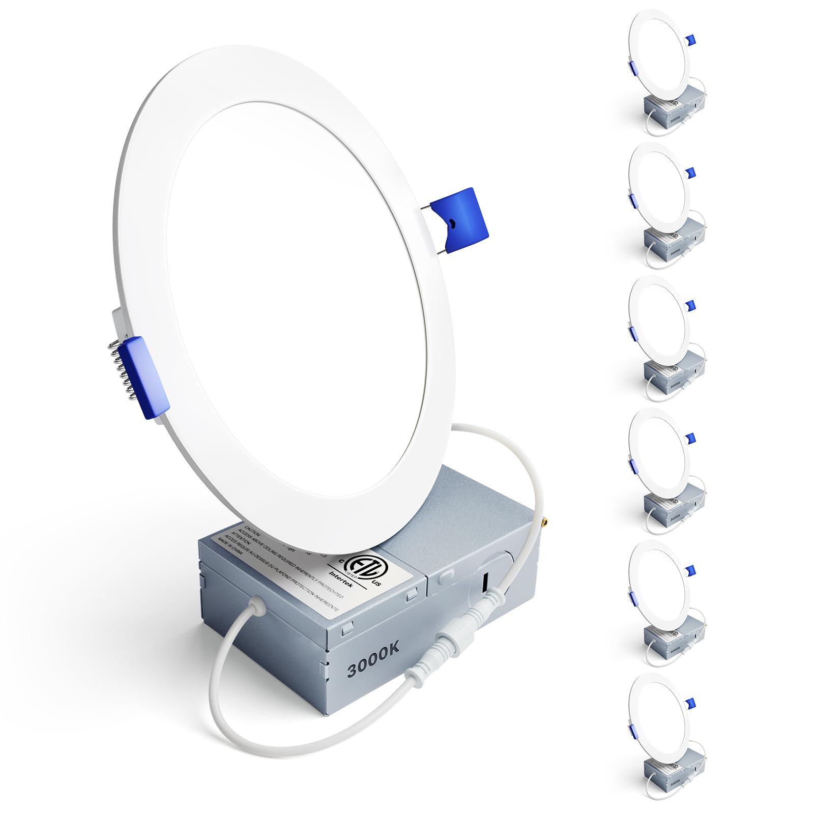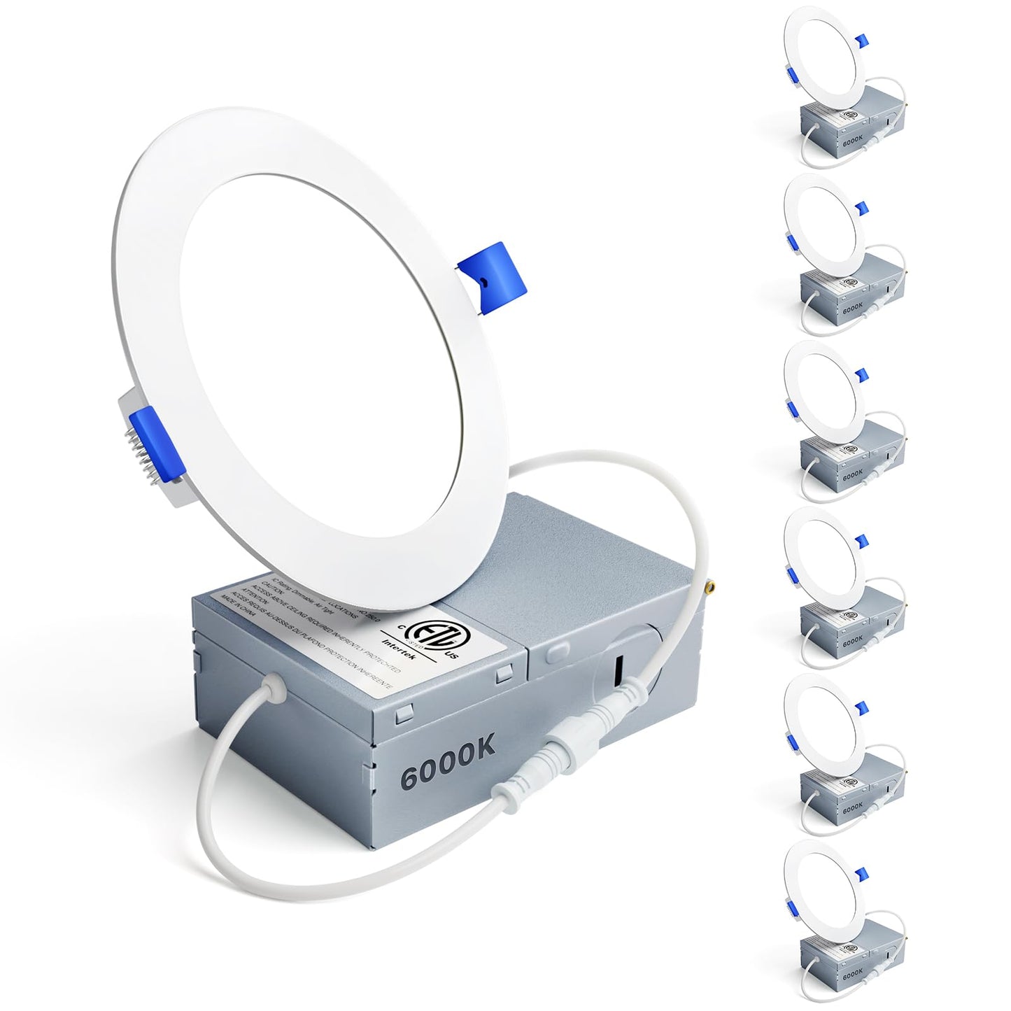 Ensenior 6 Pack 6 Inch LED Recessed Light, Dimmable, 2700K-5000K 5CCT, 1200LM High Brightness, 12W 120V, Damp Rated, Ultra-Thin Canless Wafer Ceiling Light - ETL & FCC & IC