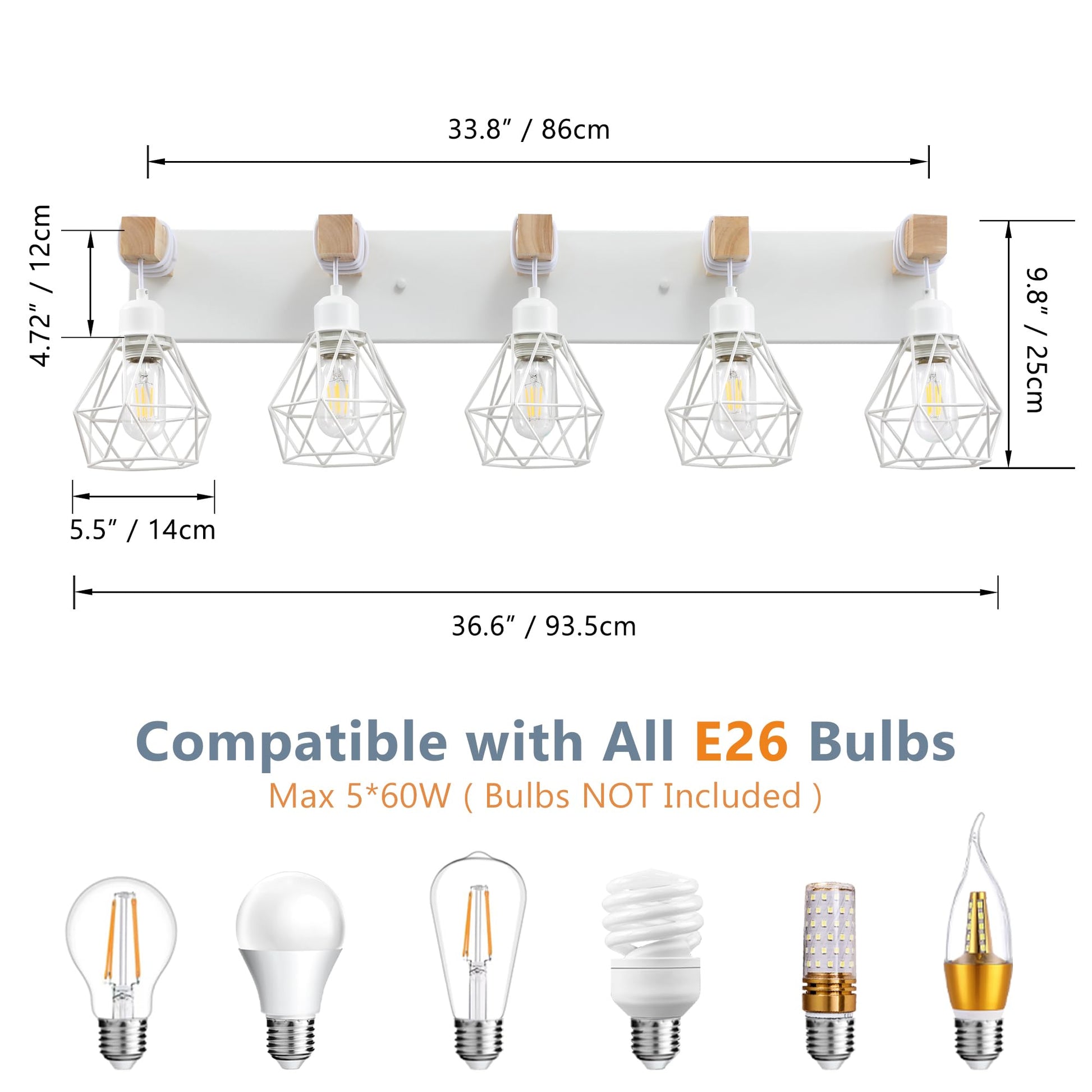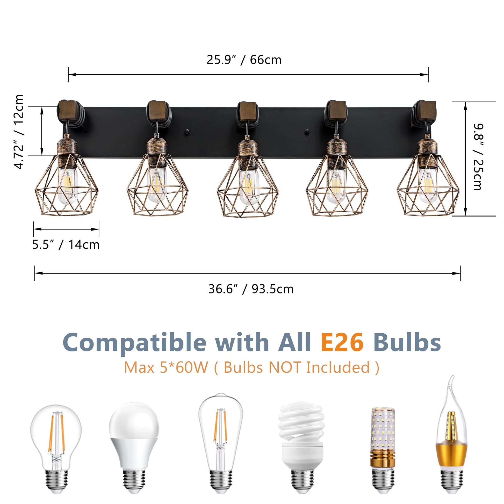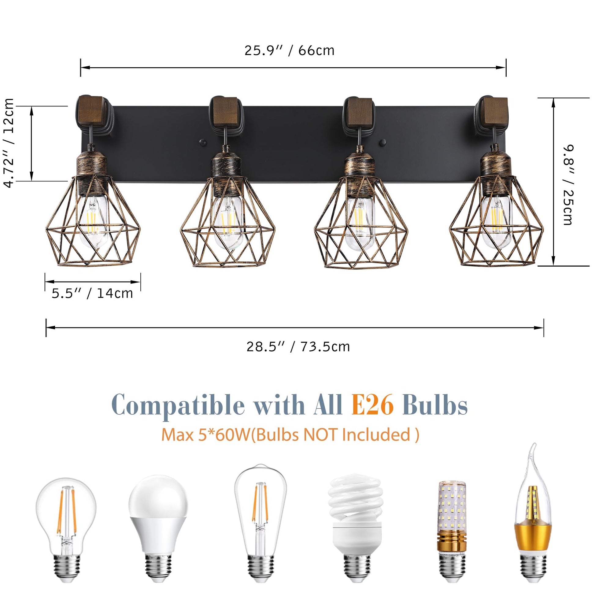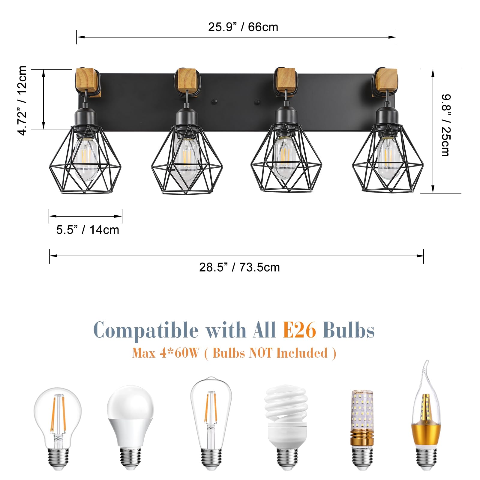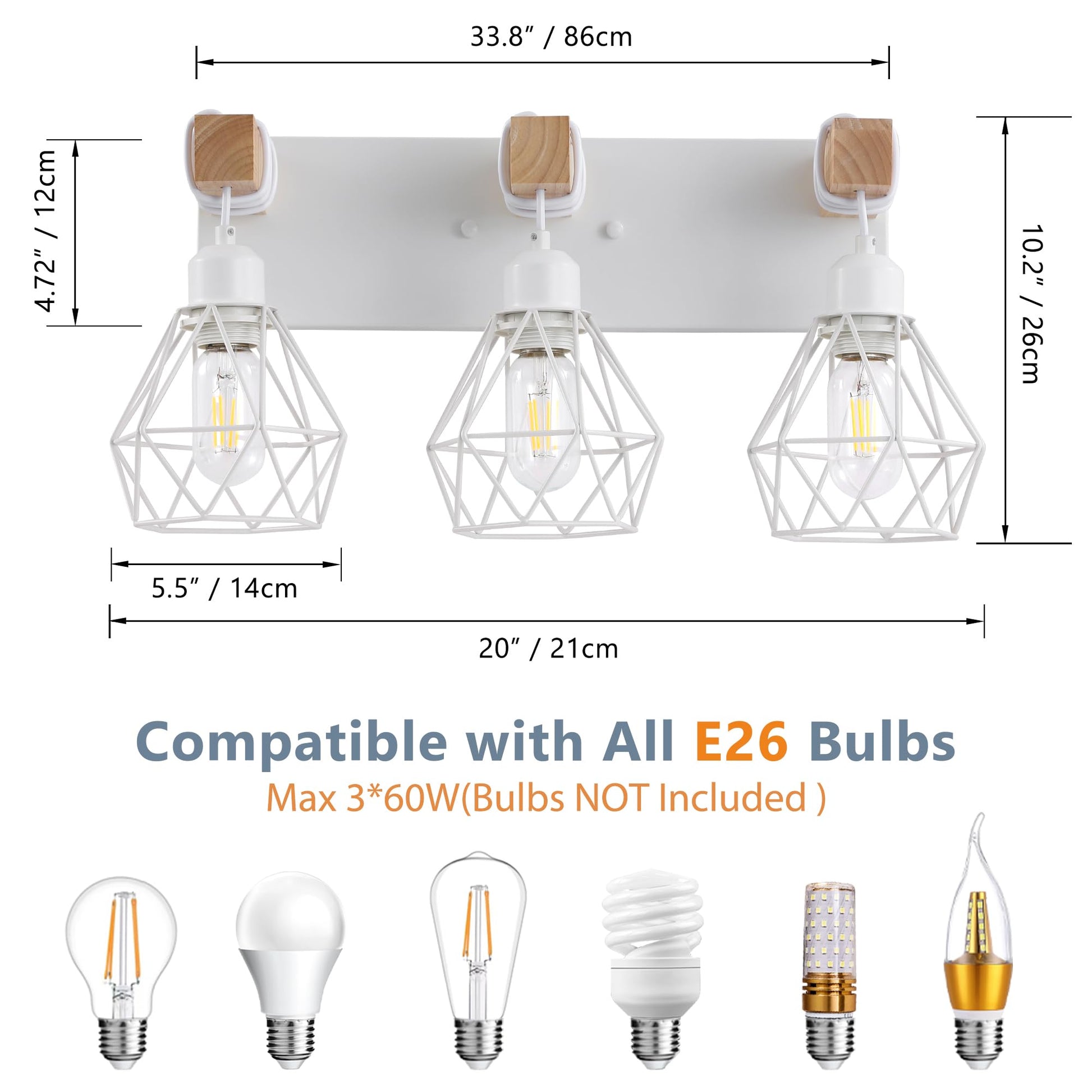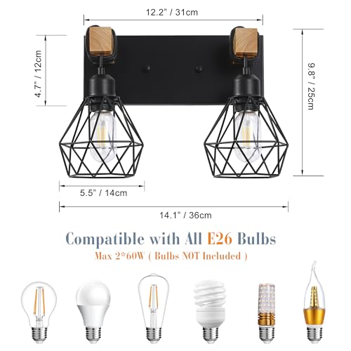 - 【Versatile E26 Standard Sockets】 - Embrace endless possibilities with the E26 base of this vanity lights. It effortlessly accommodates a variety of LED, CFL, or other bulbs (max 60W). Personalize your space by selecting bulbs of different styles and color temperatures, creating the desired ambiance that reflects your unique taste.