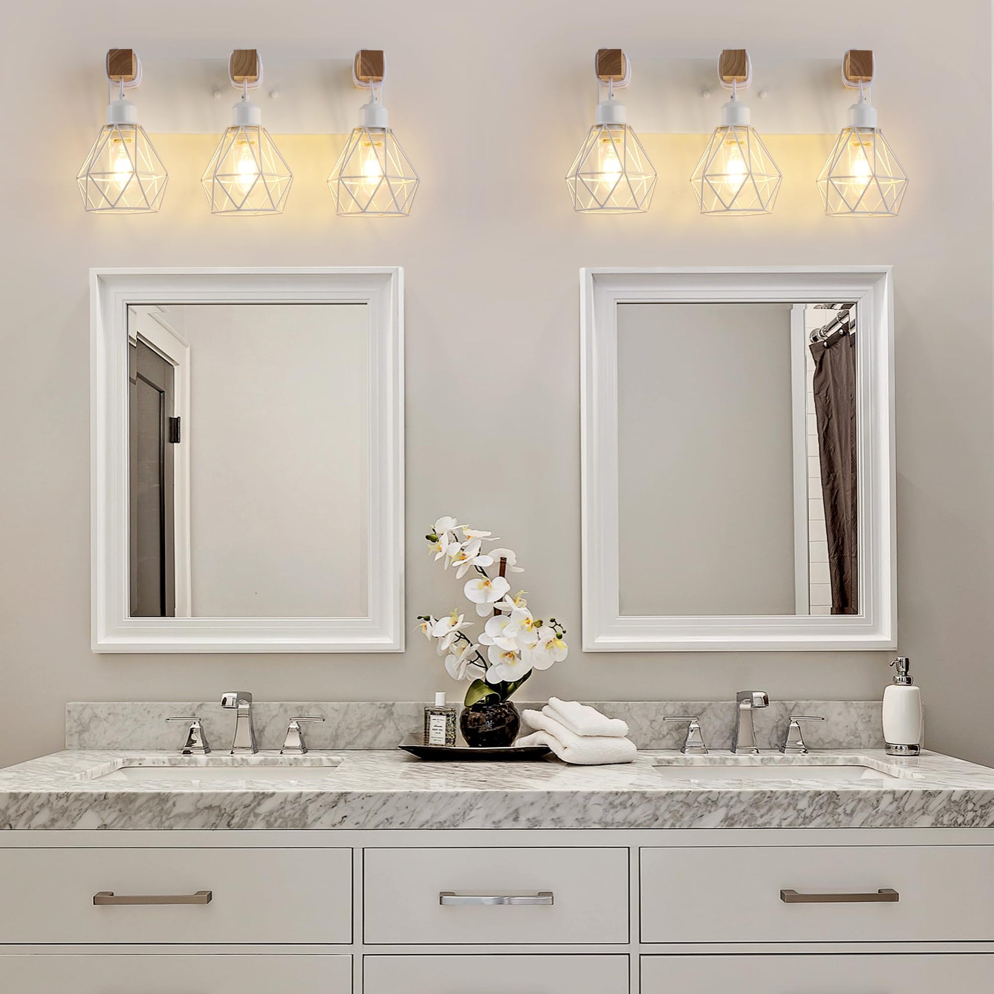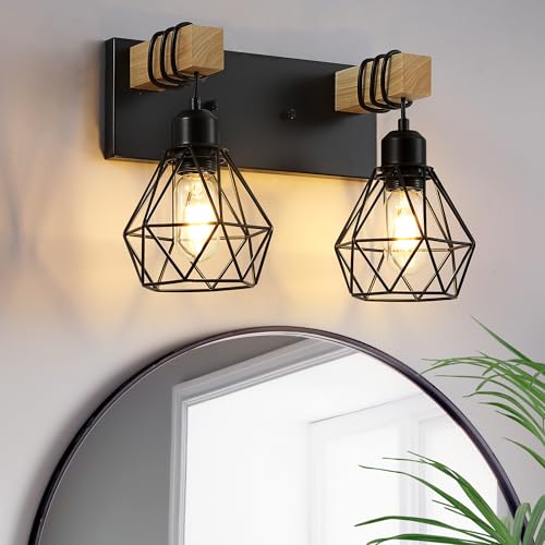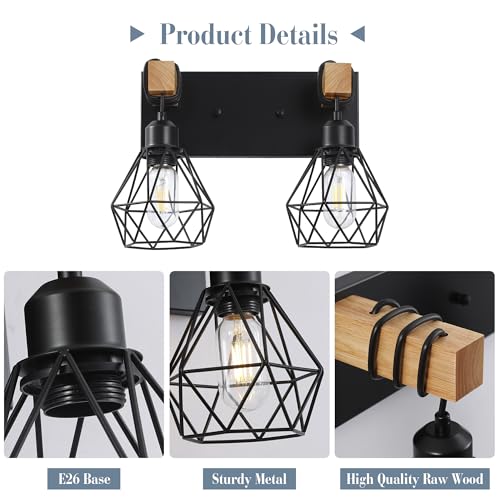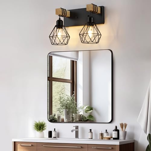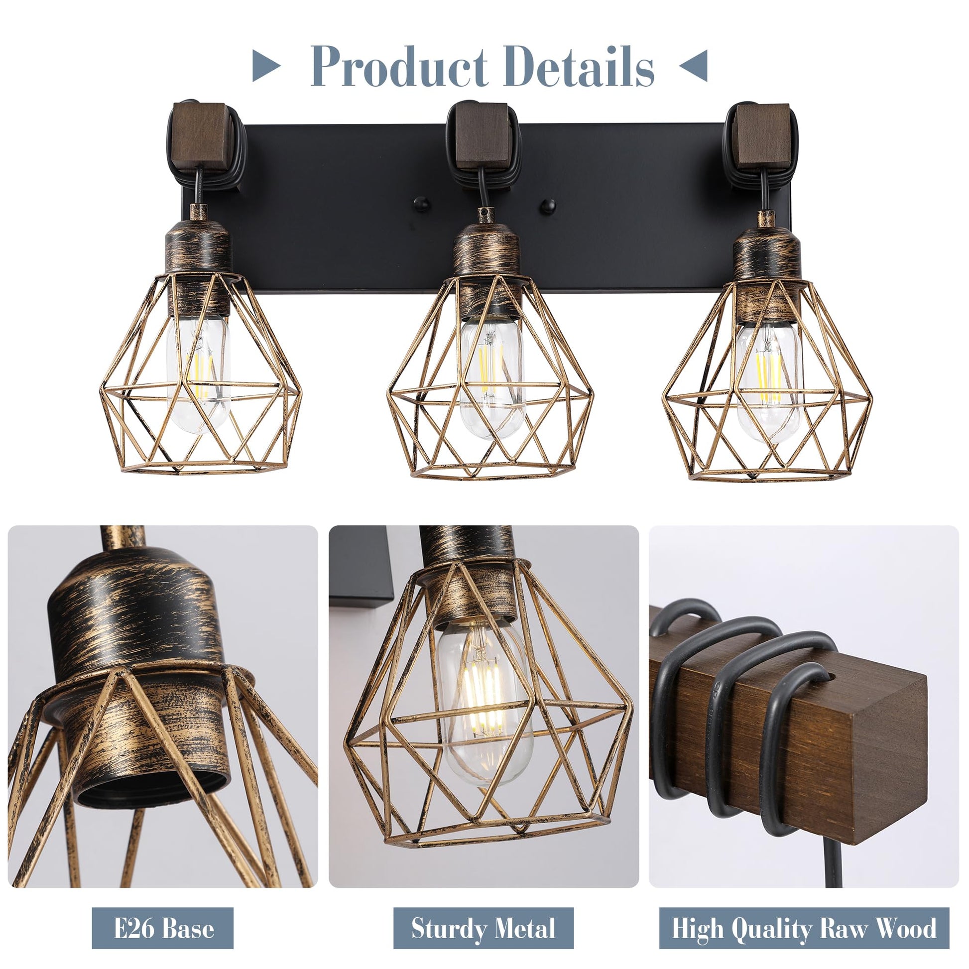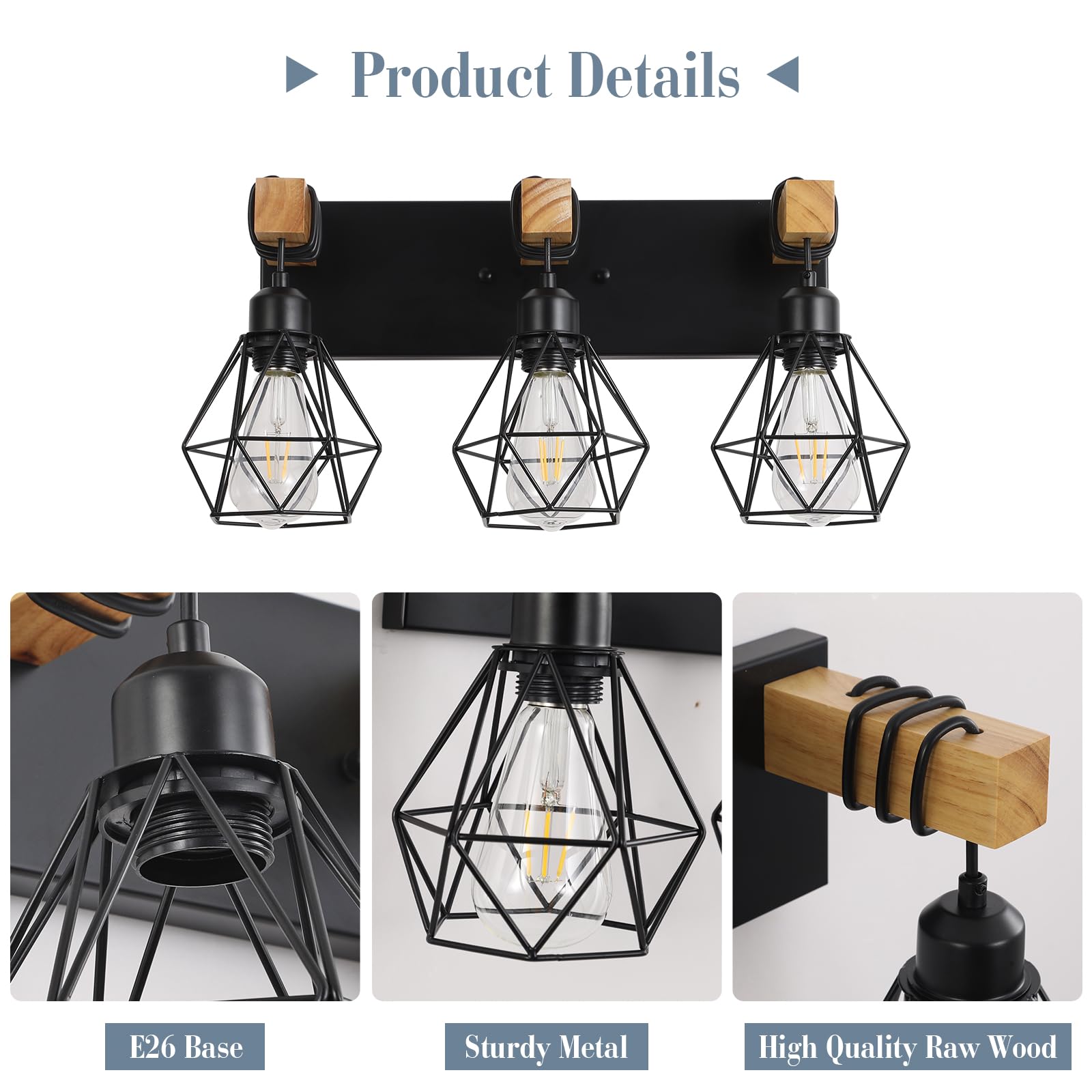 - 【Rustic Bathroom Vanity Light】- The 3 light farmhouse bathroom vanity light fixtures combines rustic charm with timeless appeal, creating a captivating lighting fixture for your home. The wood accents and elegant metal lampshade infuse a sense of sophistication, turning your space into a cozy retreat.