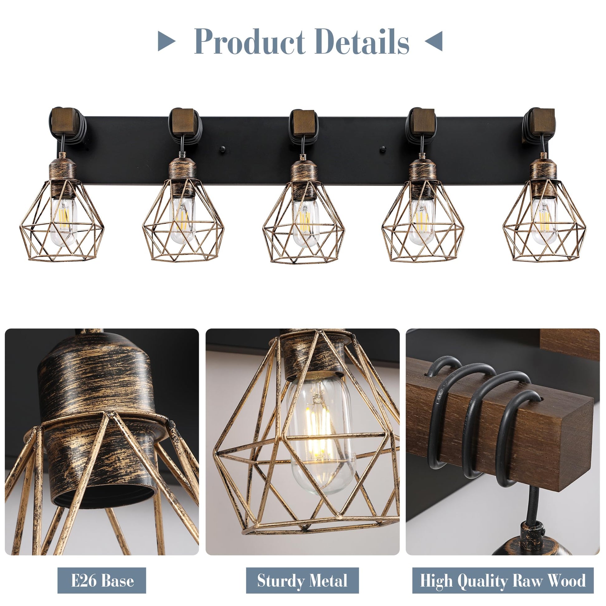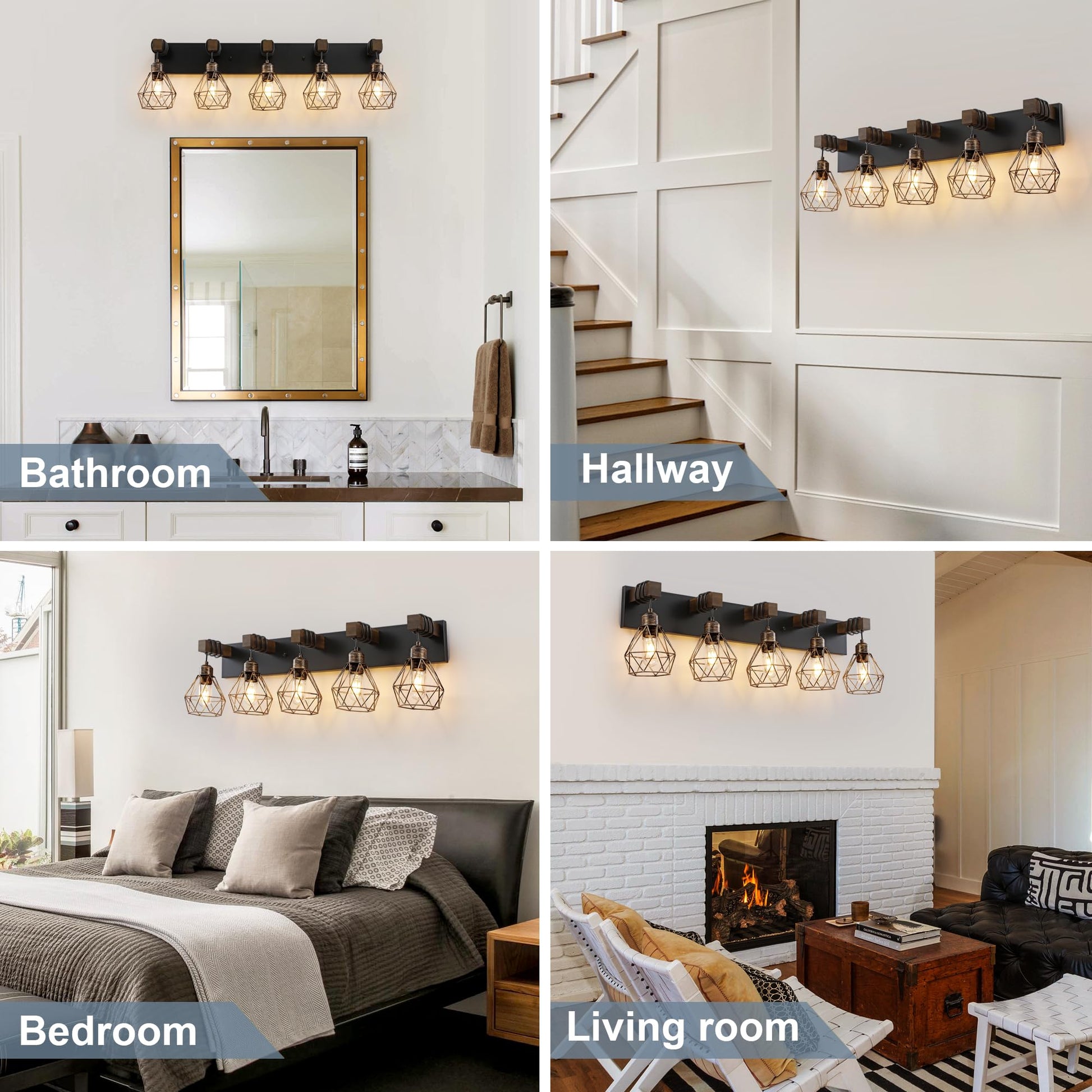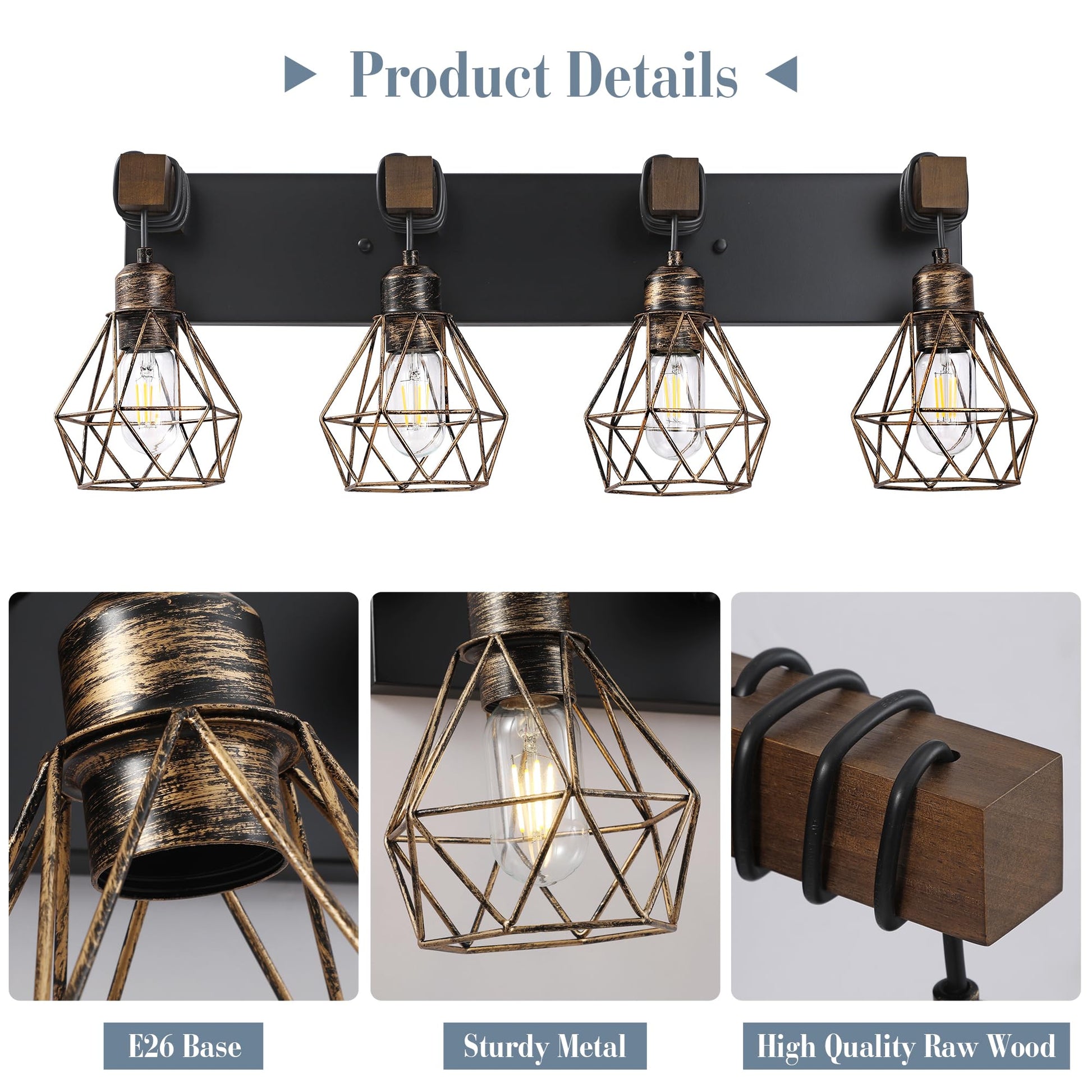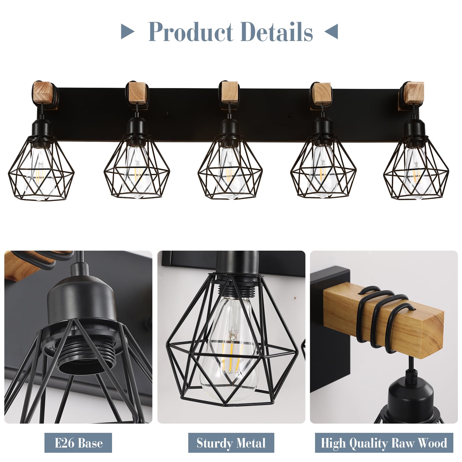 - 【Rustic Bathroom Vanity Light】- The 3 light farmhouse bathroom vanity light fixtures combines rustic charm with timeless appeal, creating a captivating lighting fixture for your home. The wood accents and elegant metal lampshade infuse a sense of sophistication, turning your space into a cozy retreat.