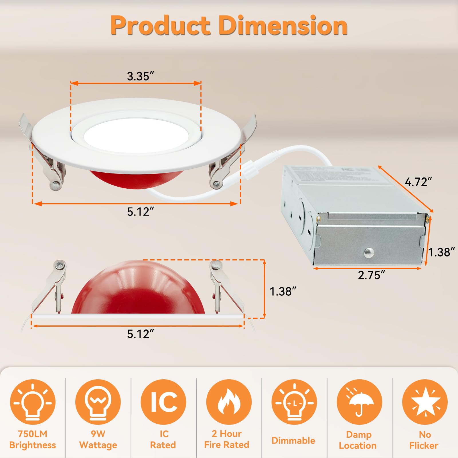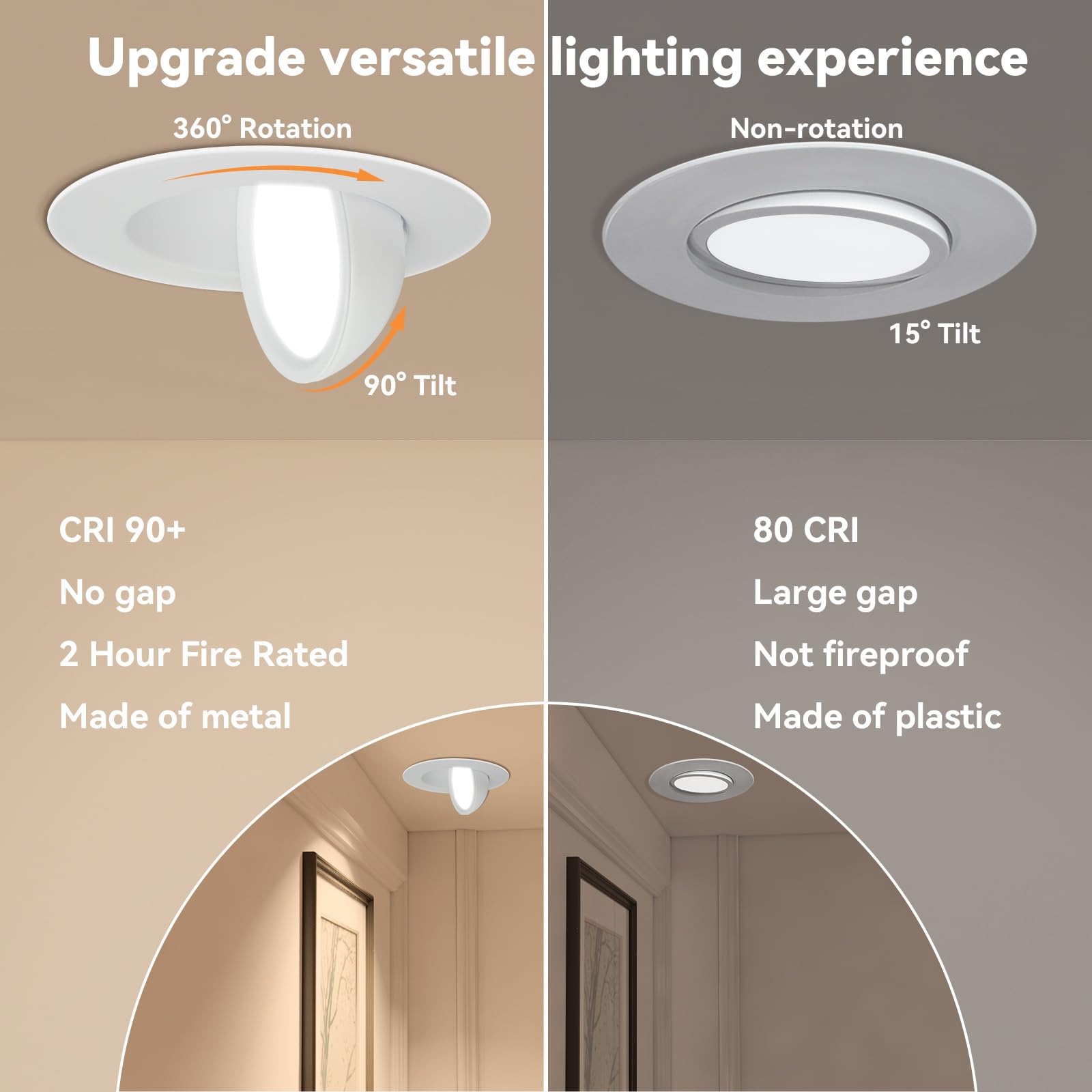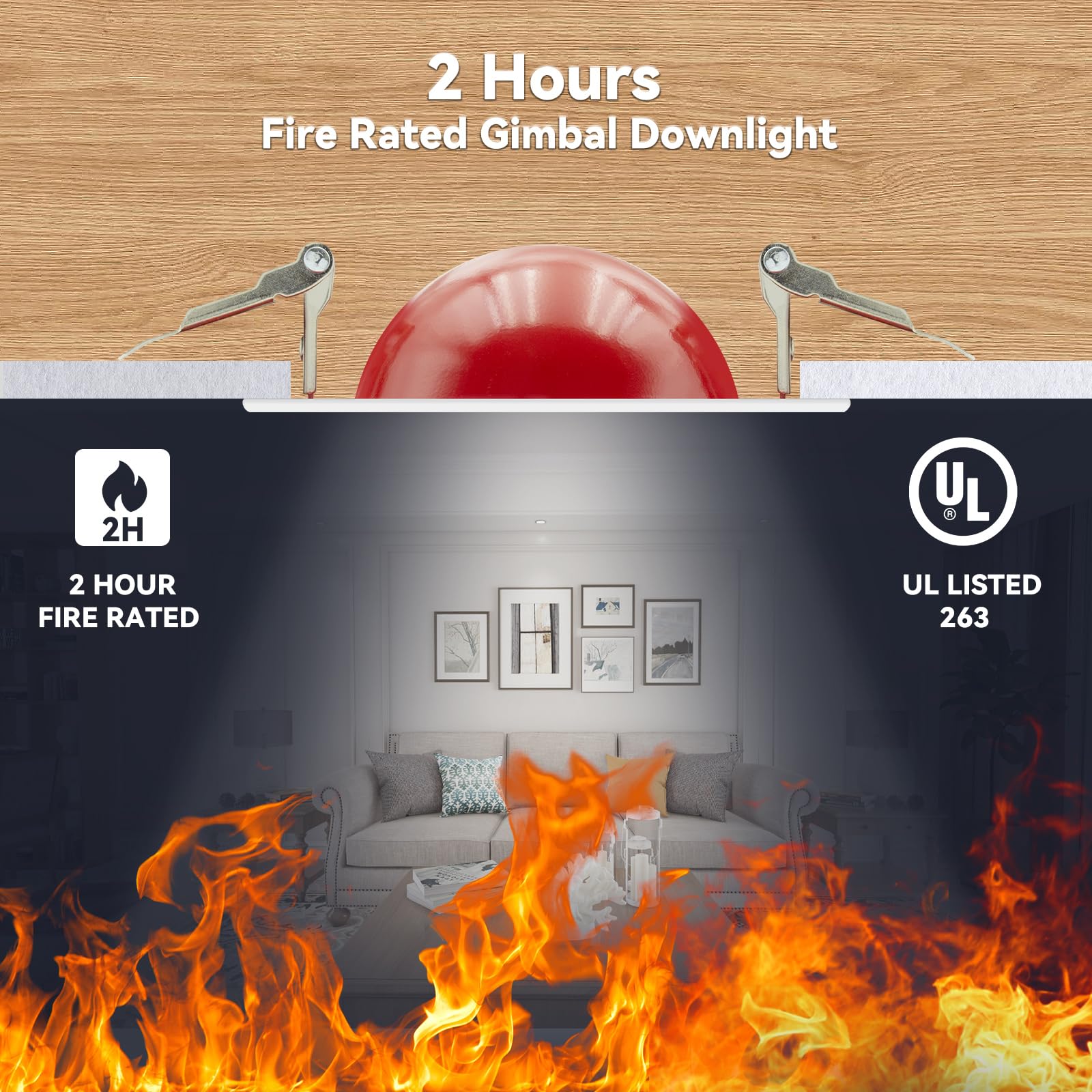 - 💡【Fire Rated】With FCC and UL263 high standard certification, our gimbal recessed lighting is 2-hour fire resistant to stop the spread of fire, prevent you from a potential accident, and keep your family safe.