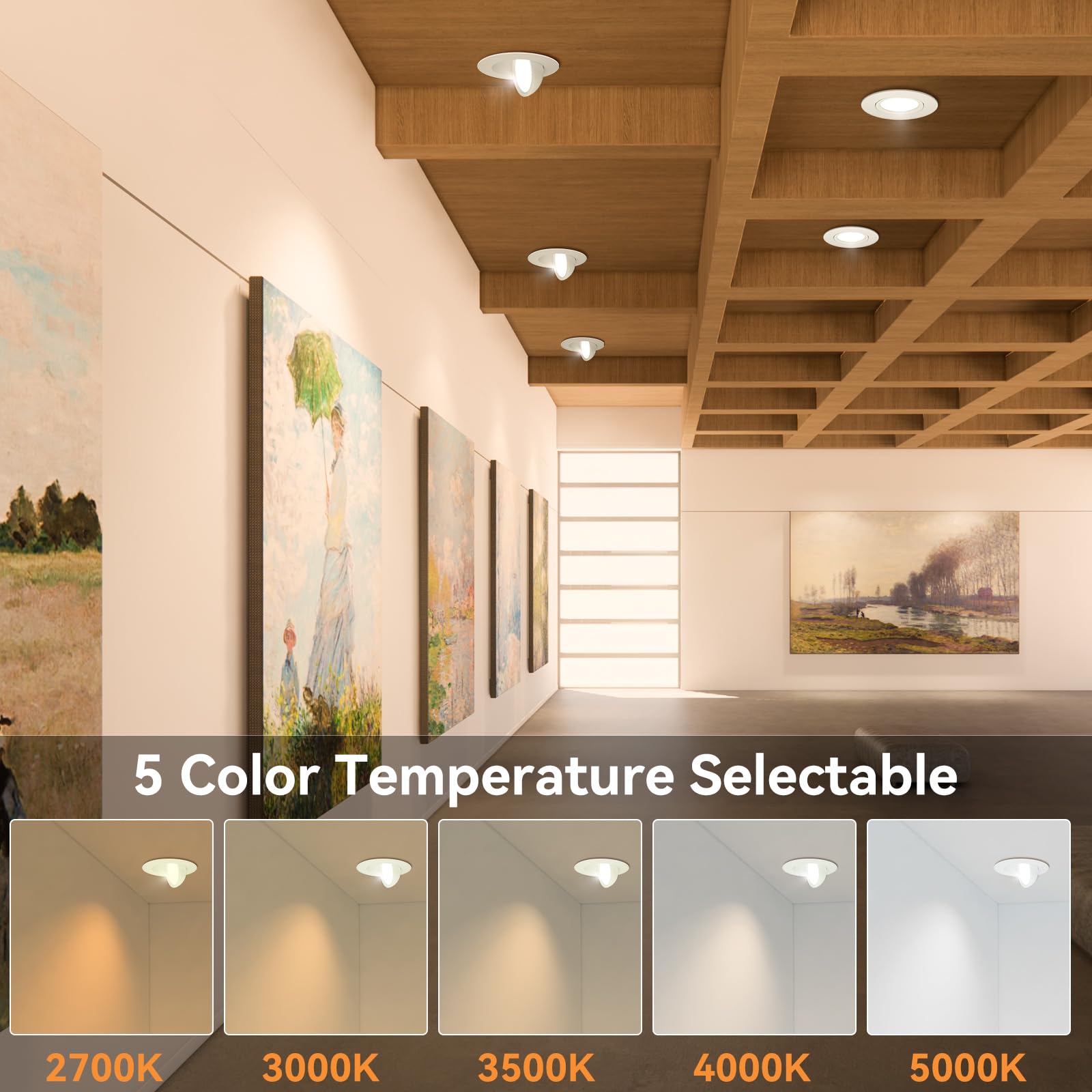 HONZIN 12 Pack 4 Inch Recessed Lighting, 5CCT Gimbal Led Recessed Light 4 Inch with Junction Box, Dimmable, 9W CRI90+, IC Rated, 2700K/3000K/3500K/4000K/5000K Selectable, No Fire Cone Needed