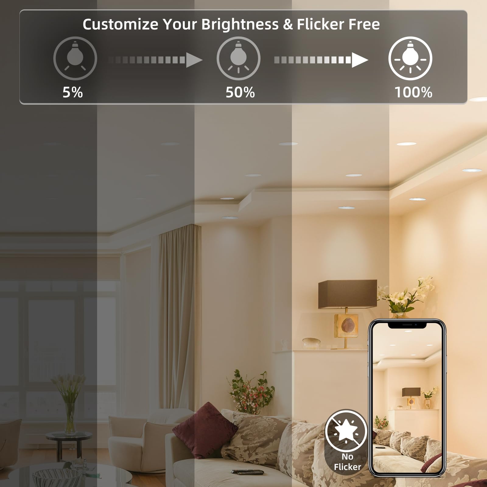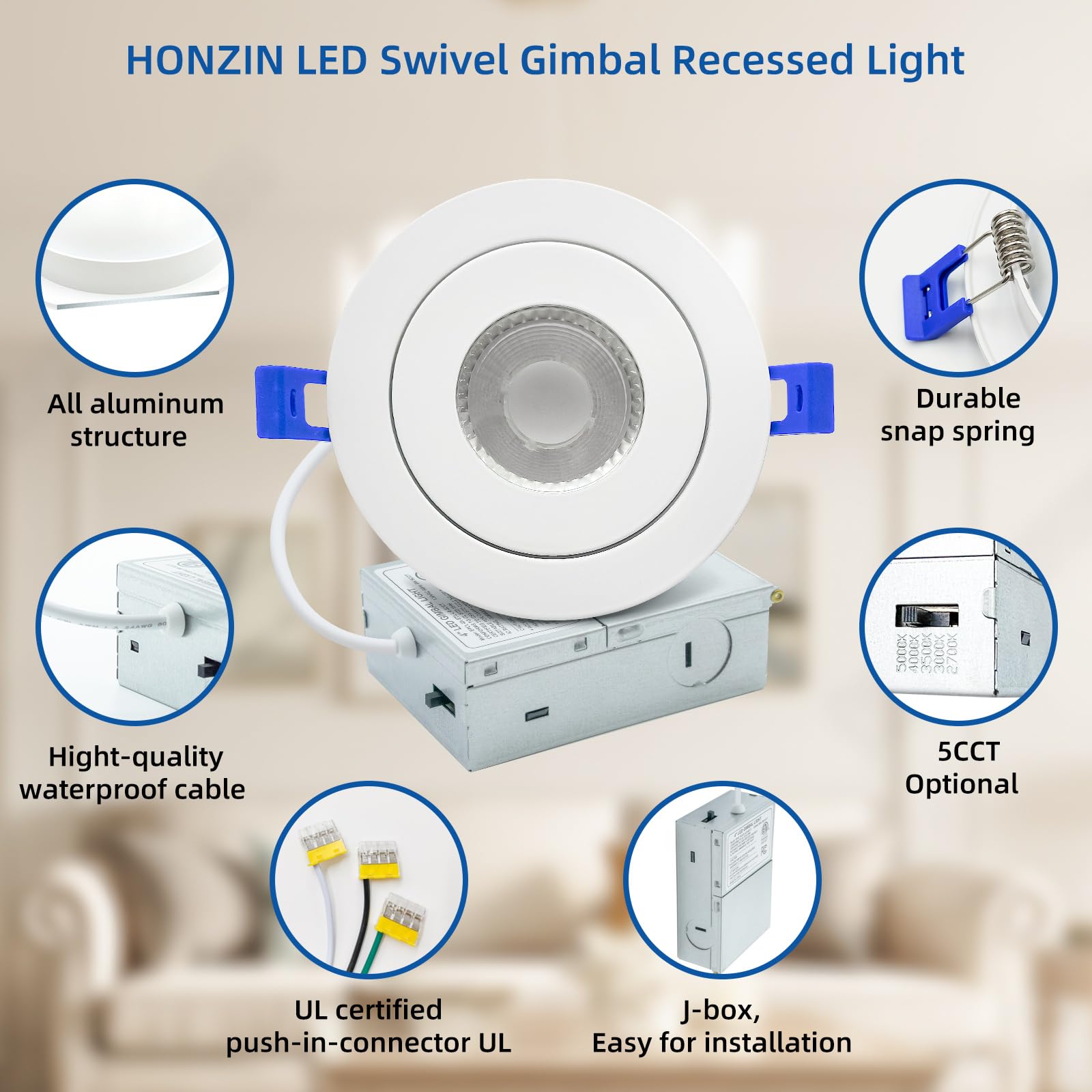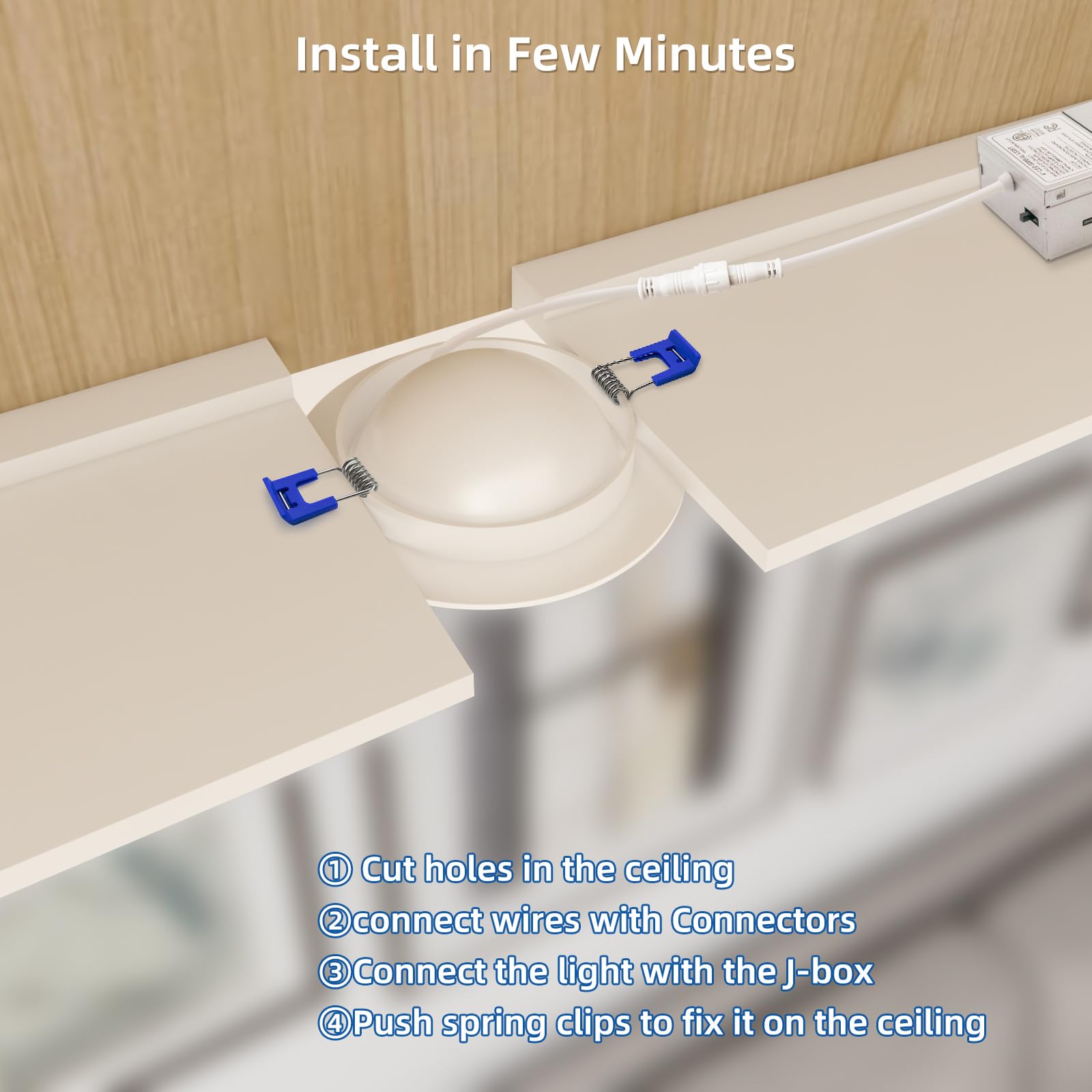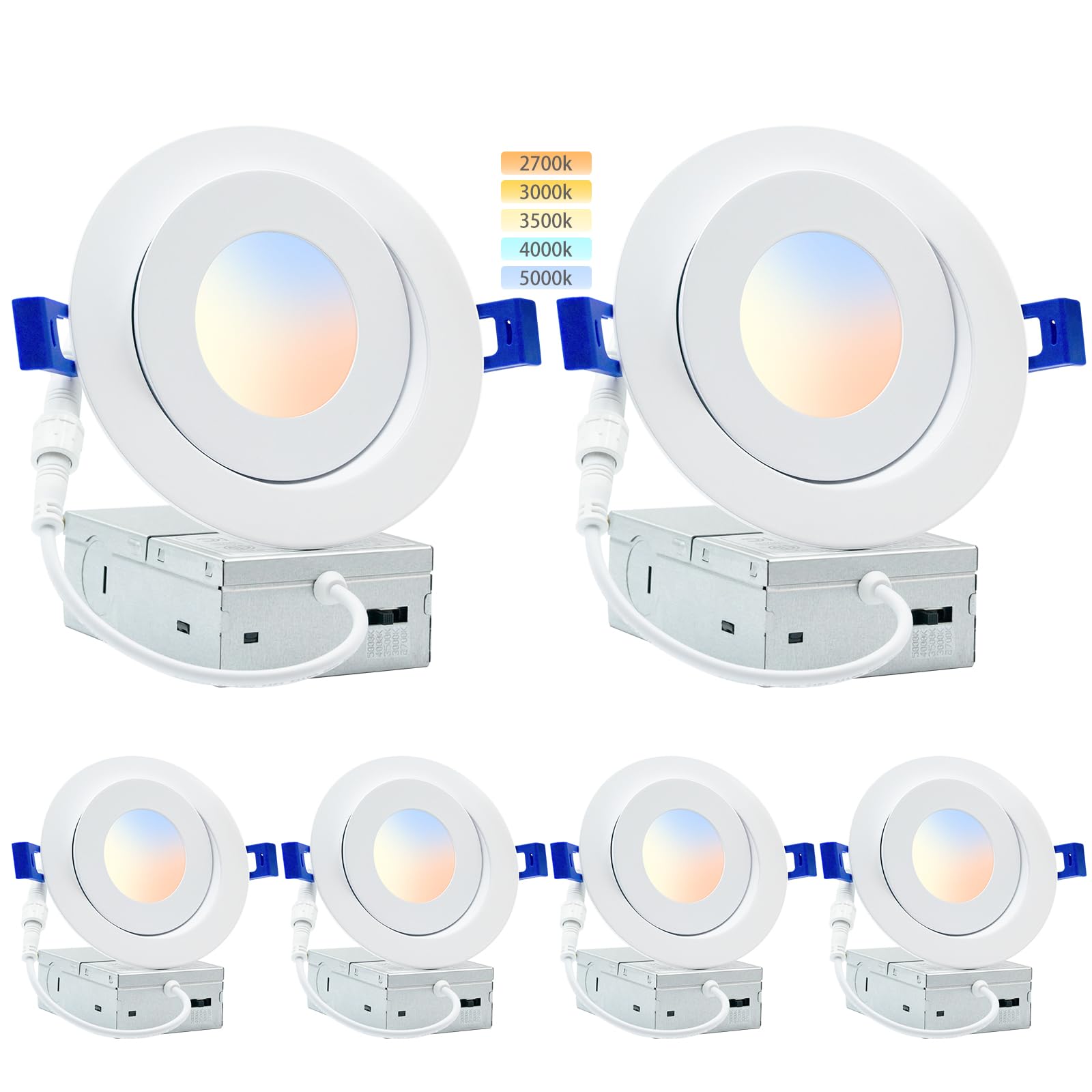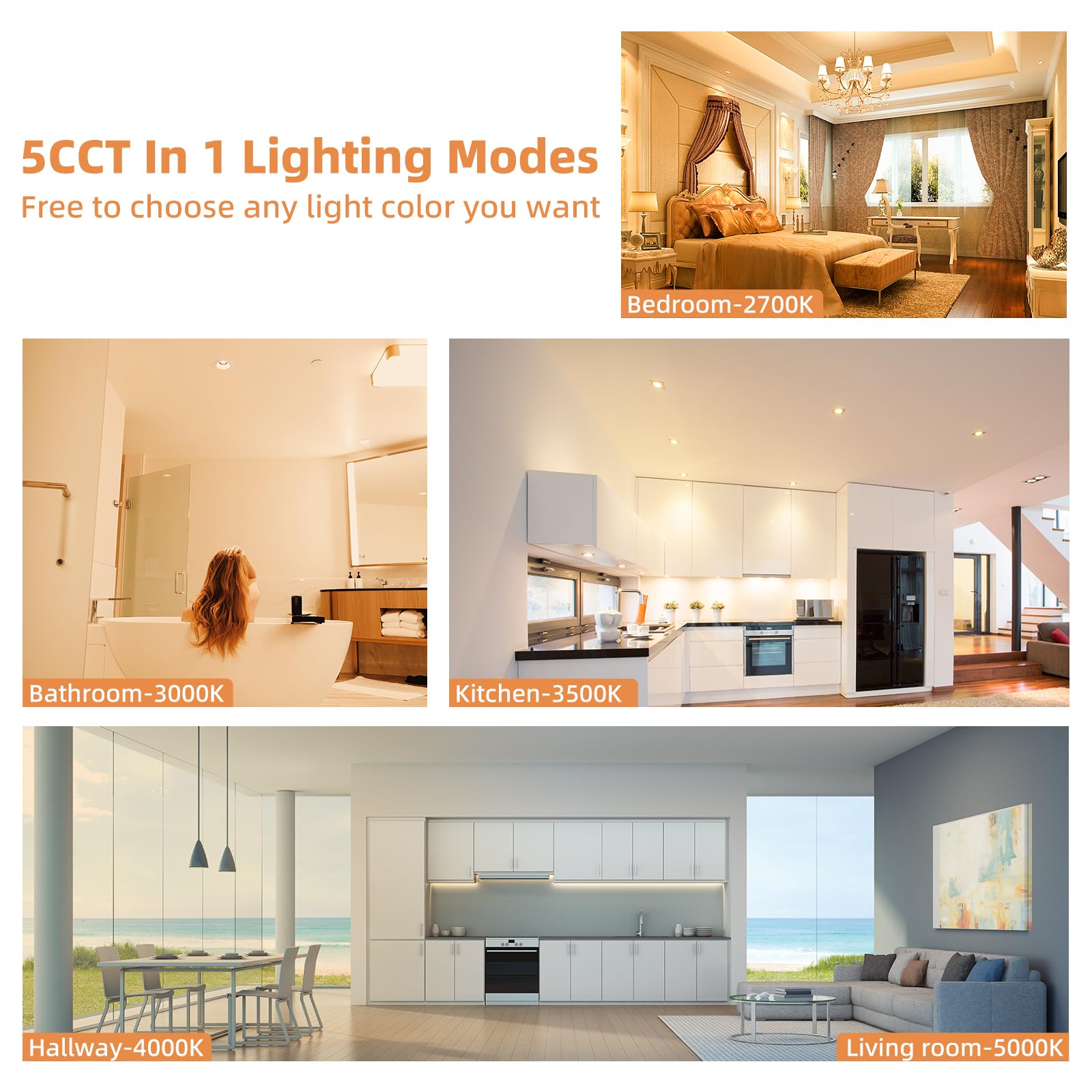- 💡【5CCT-In-1】 Our ultra-thin recessed lights offer you 5 color options in downlight mode: 2700K, 3000K, 3500K, 4000K and 5000K. You can choose the color before installation to create the perfect lighting effect for your home.