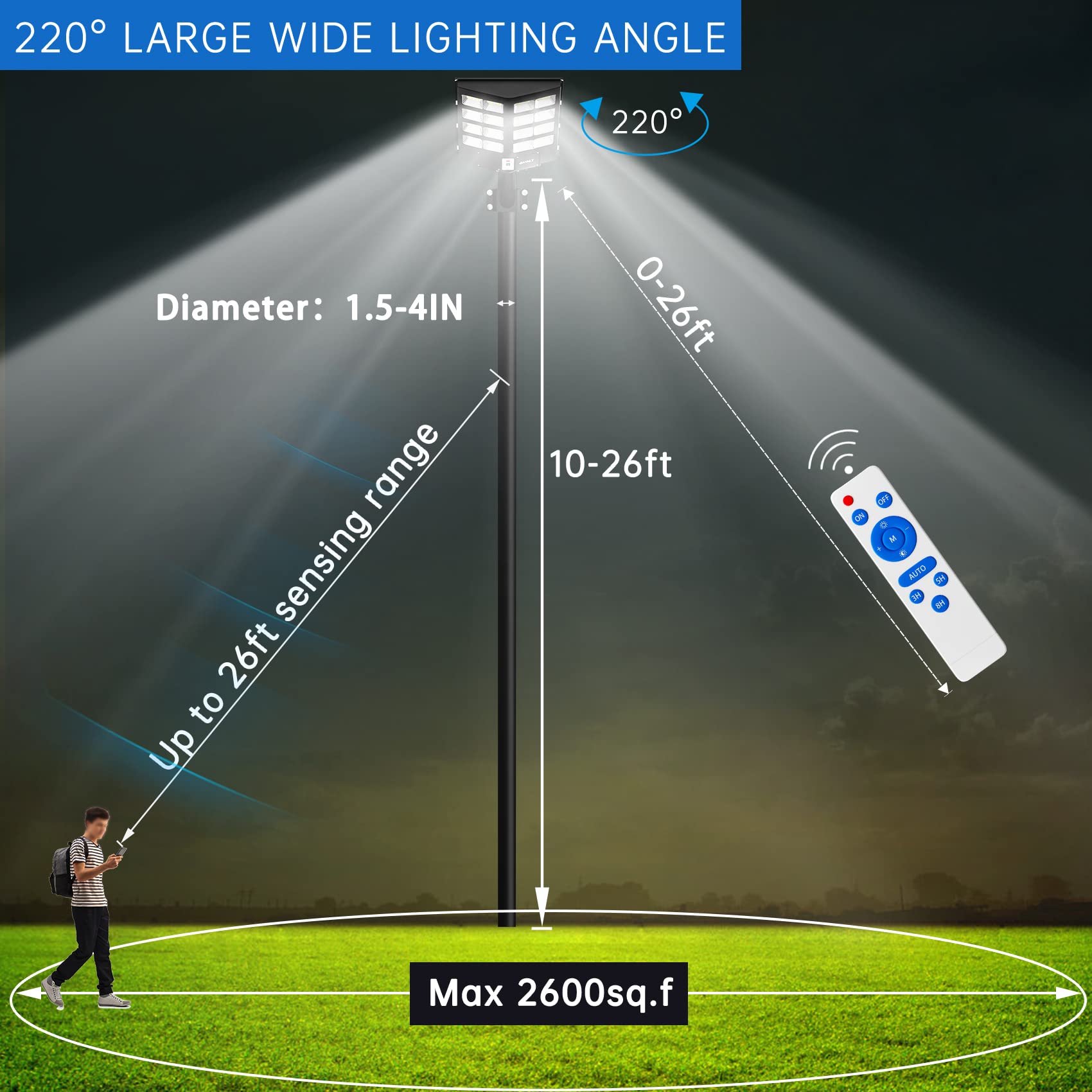- Motion sensing distance :0-26ft
