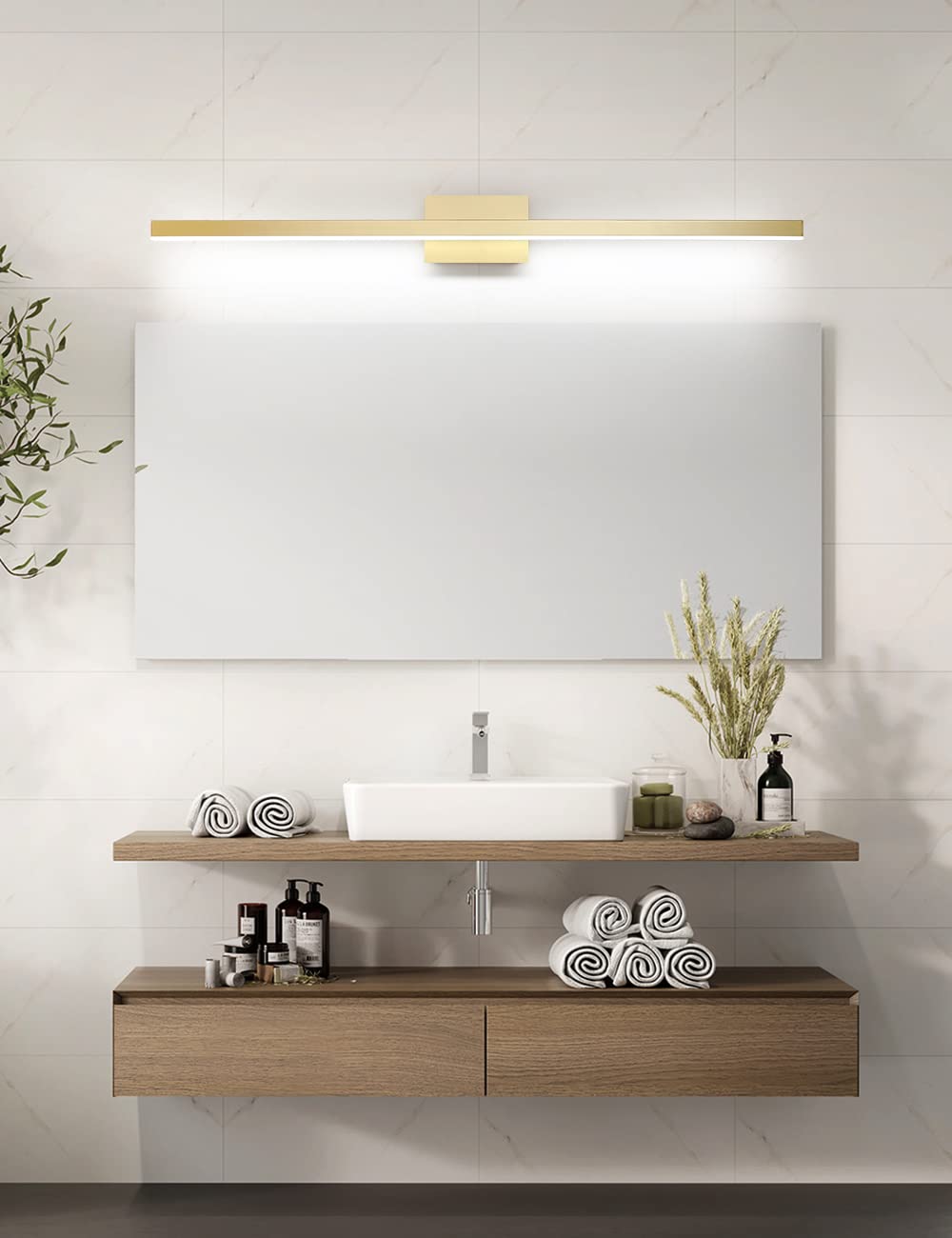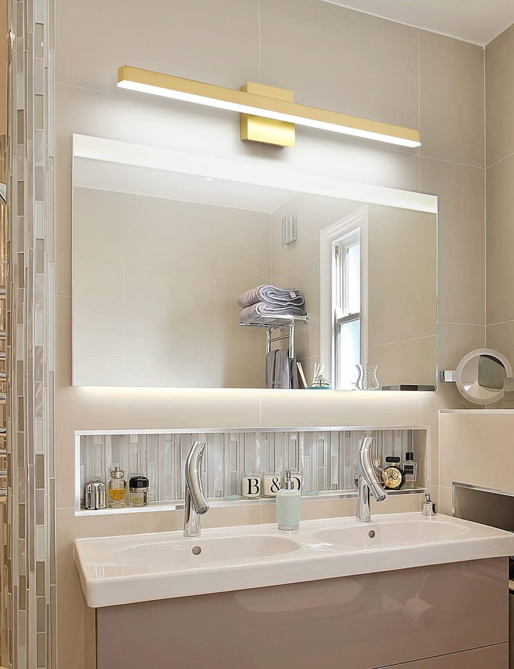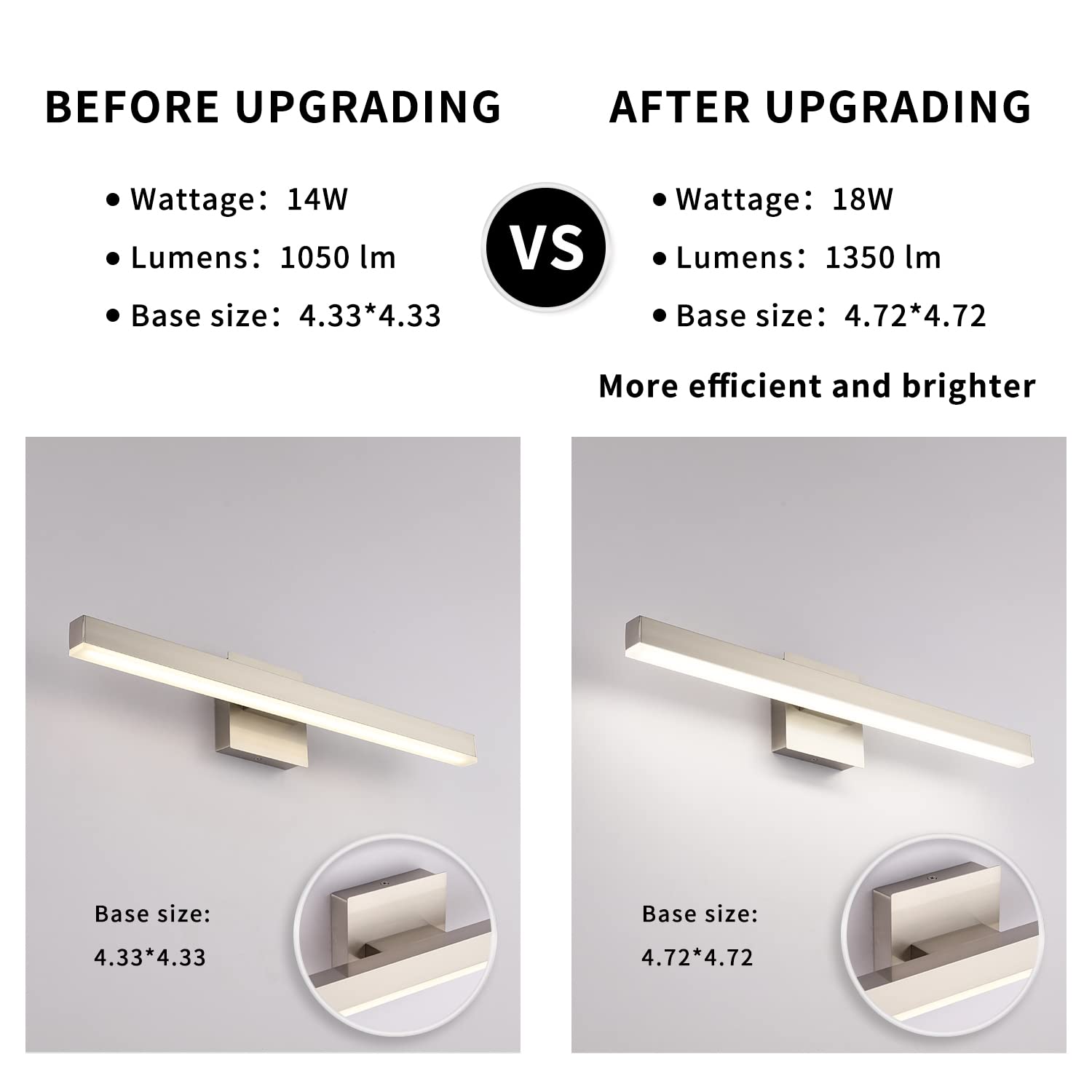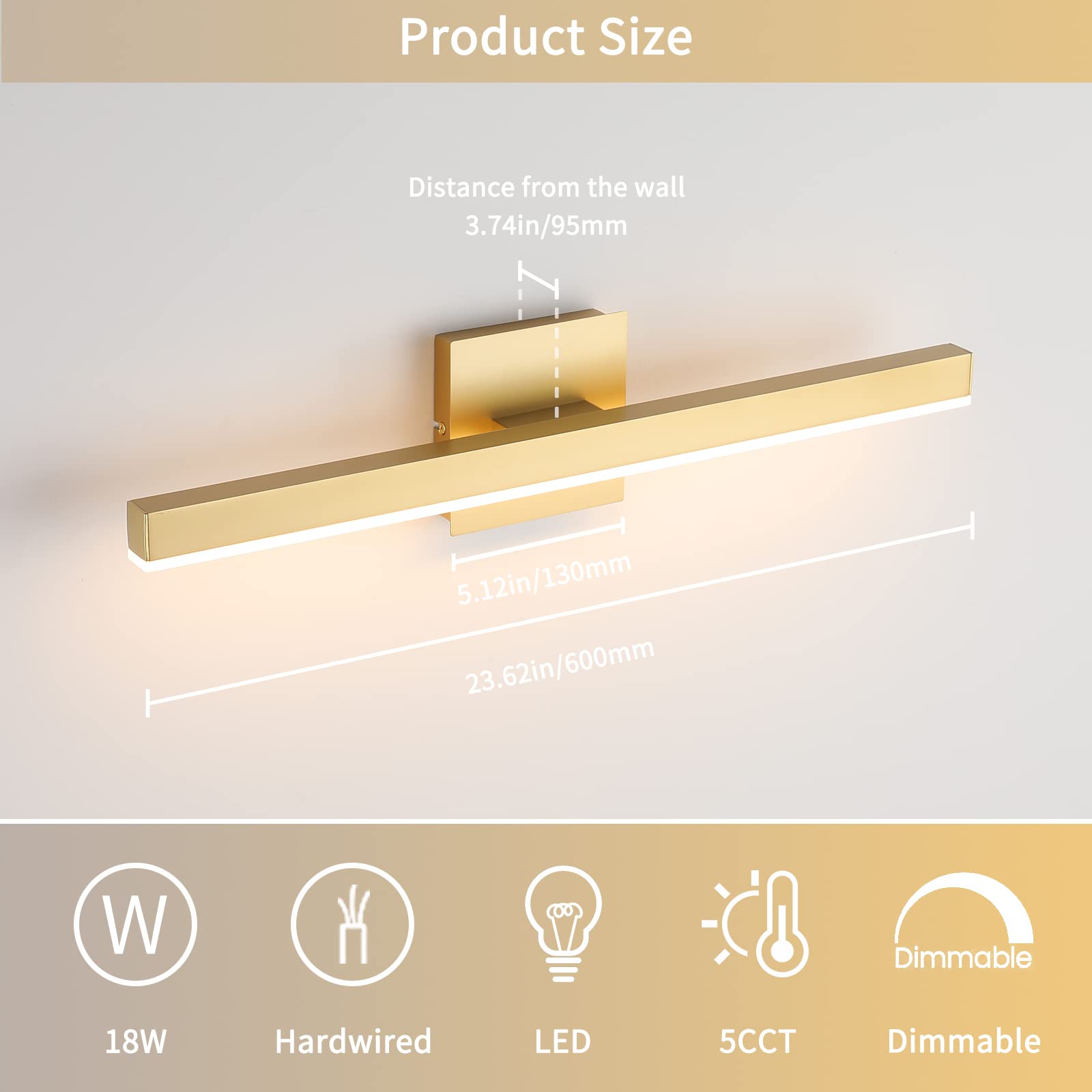 - Dimmable Function: LED vanity light with ETL certificated dimmable driver ensure the vanity lamp to 5%-100% dimming range, the LED lights for vanity mirror compatible with most household triac LED dimmers for smooth and flicker-free operation.you can switch the vanity bathroom lights freely to the dimming range