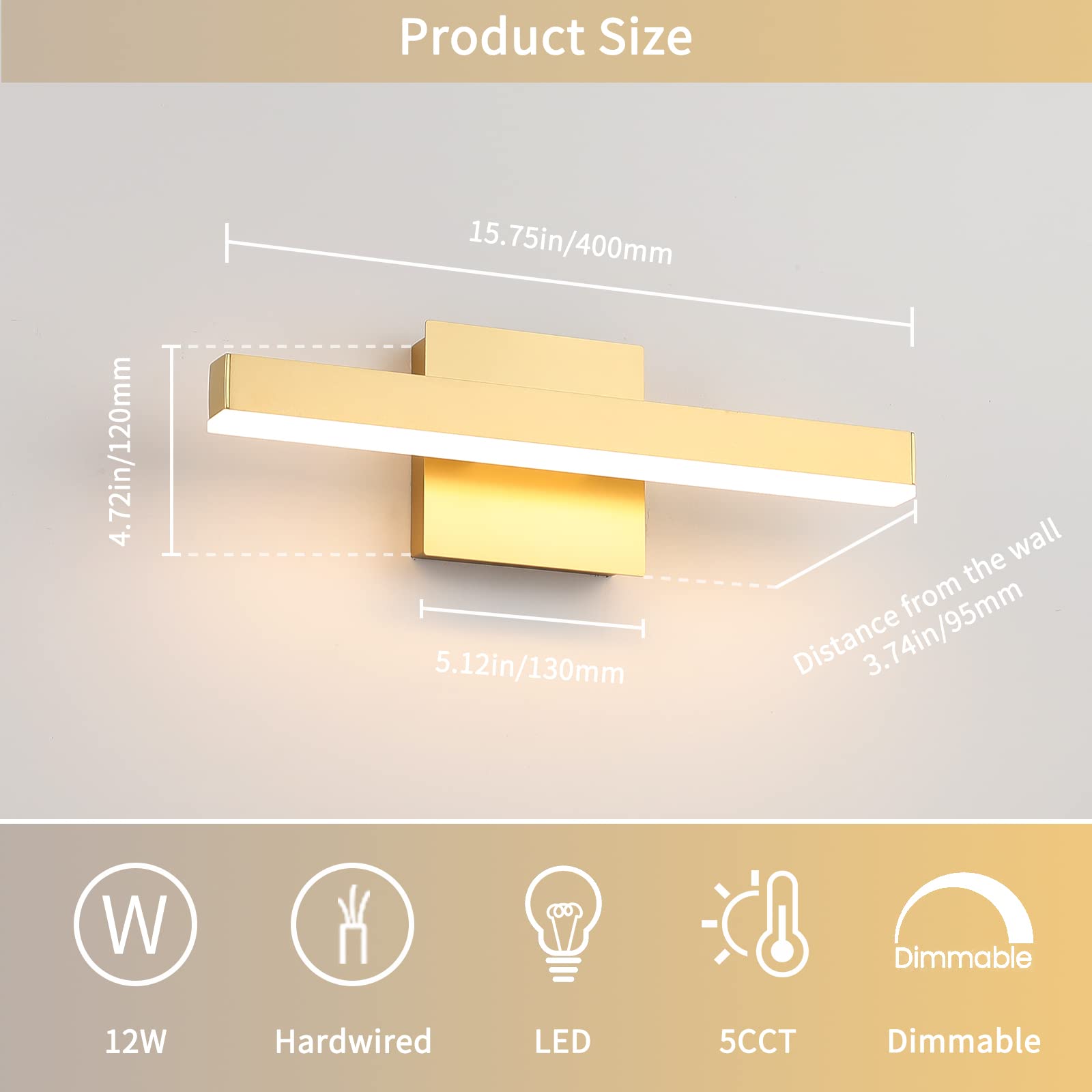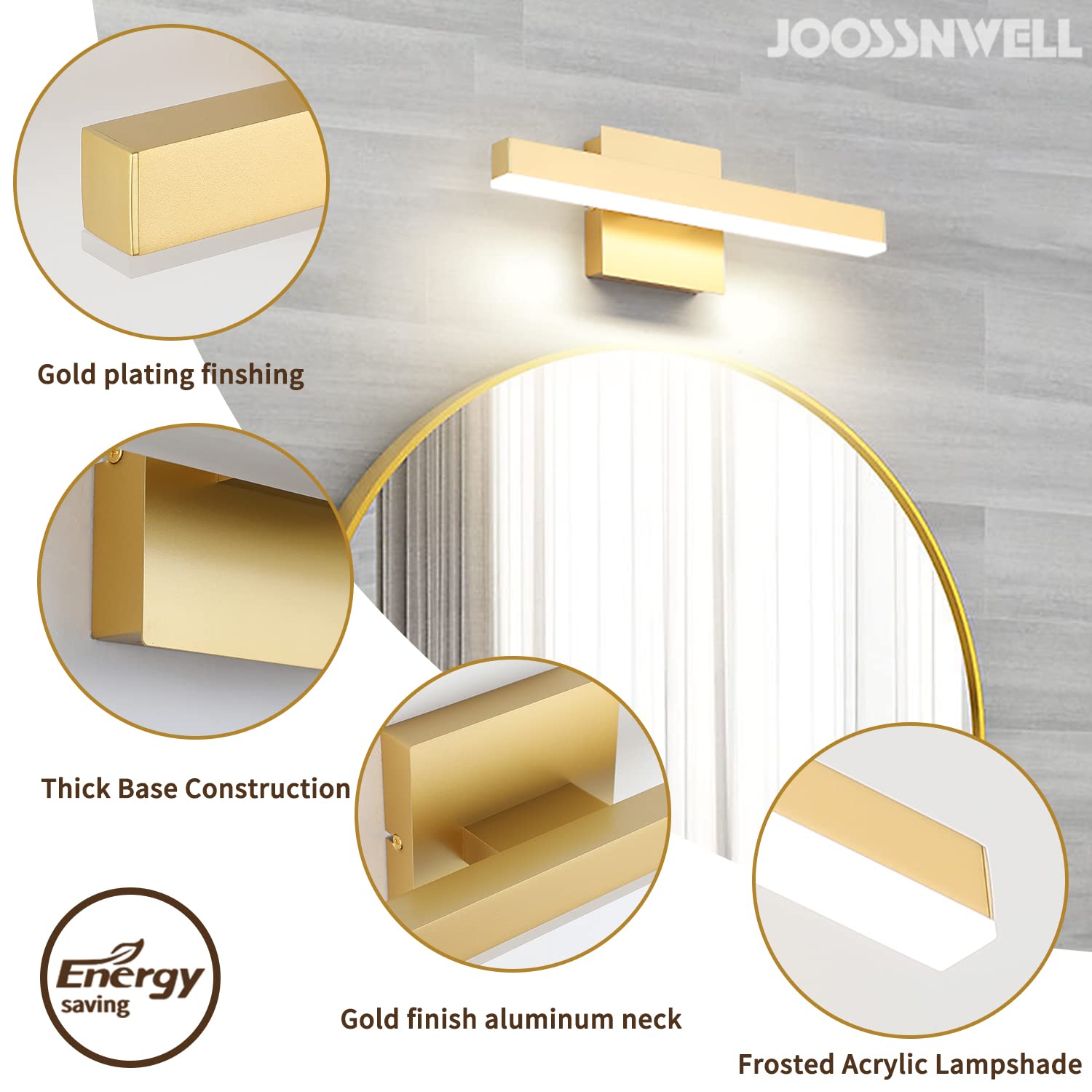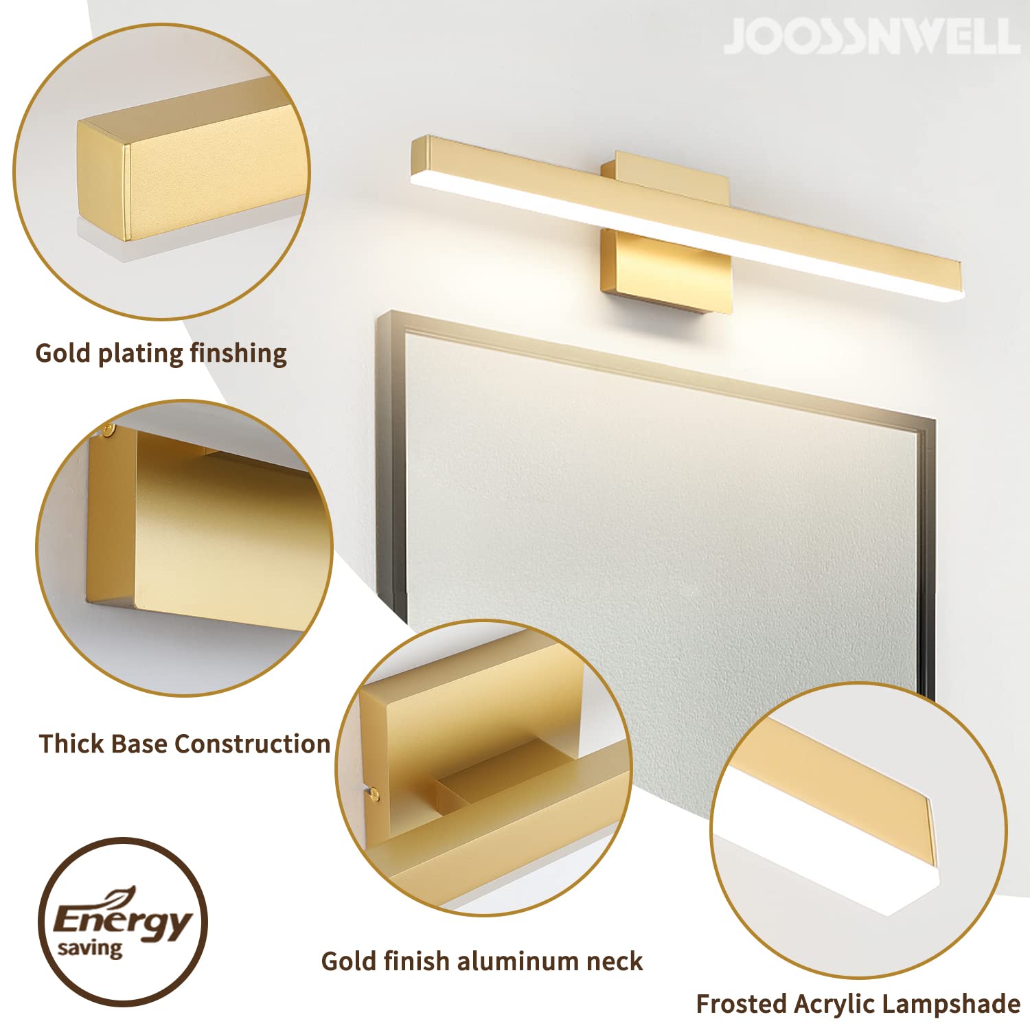 - Energy Saving And Easy Installation: The Modern Bathroom light fixtures is with integrated led light source 12W, voltage: 110V / 120V. LED technology saves up to 80% electricity compare to conventional mirror lights vanity lights for mirror bulbs and lifespan up to 30,000hours. Easy to instal just connect to the reserved wire directly