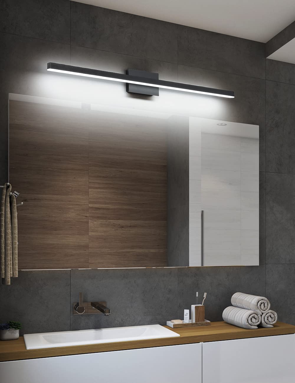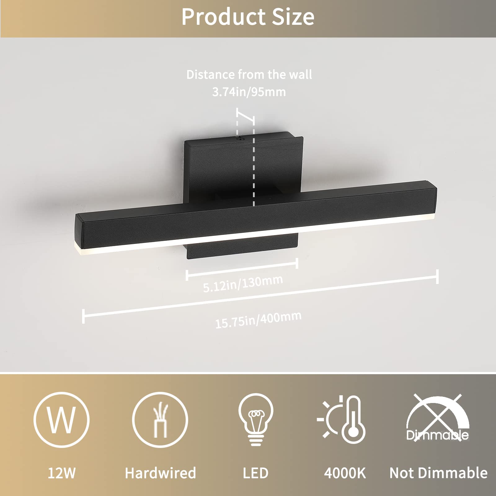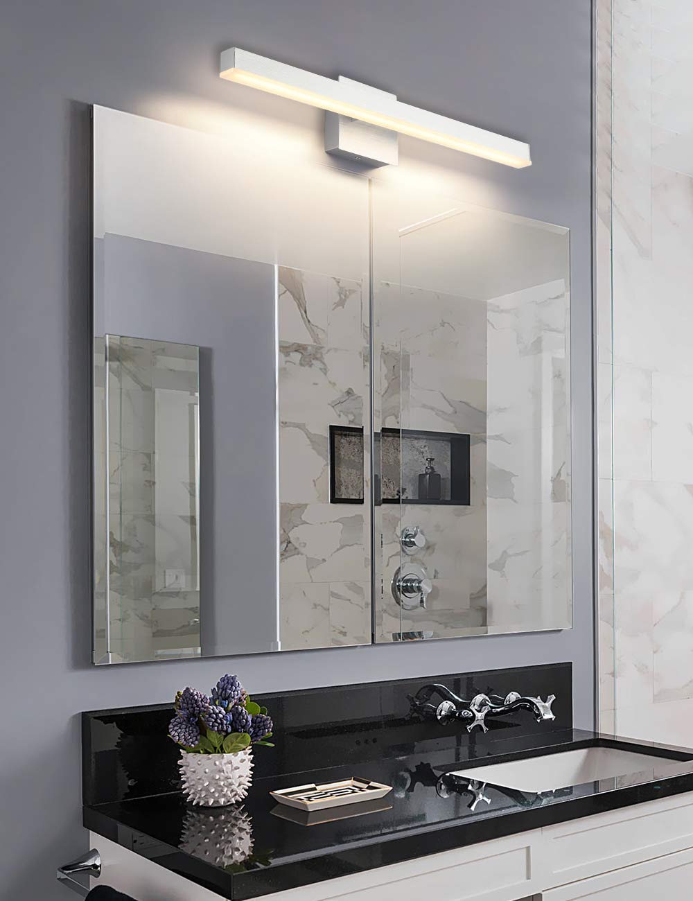 - Energy Saving And Easy Installation: The Modern Bathroom light fixtures is with integrated led light source 12W, voltage: 110V / 120V. LED technology saves up to 80% electricity compare to conventional mirror lights vanity lights for mirror bulbs and lifespan up to 30,000hours. Easy to instal just connect to the reserved wire directly