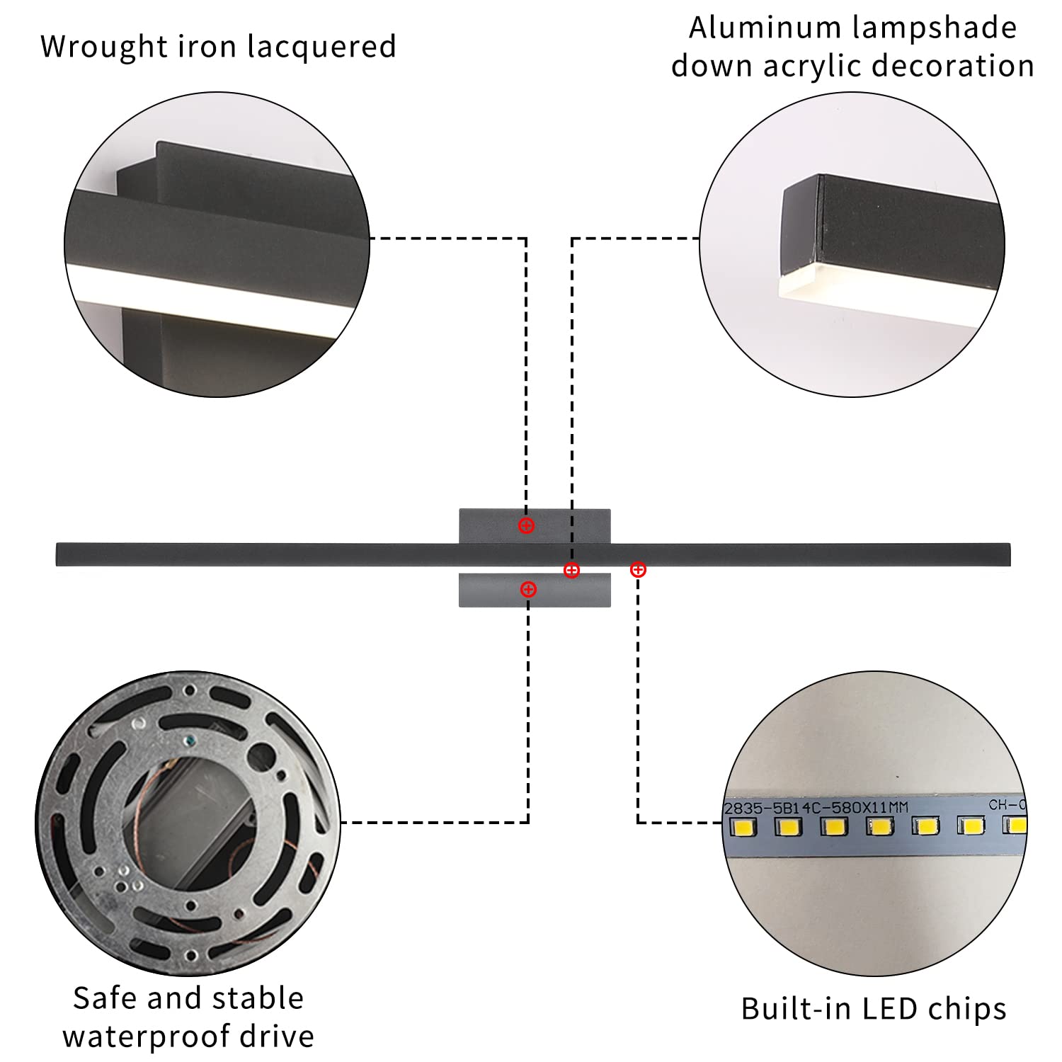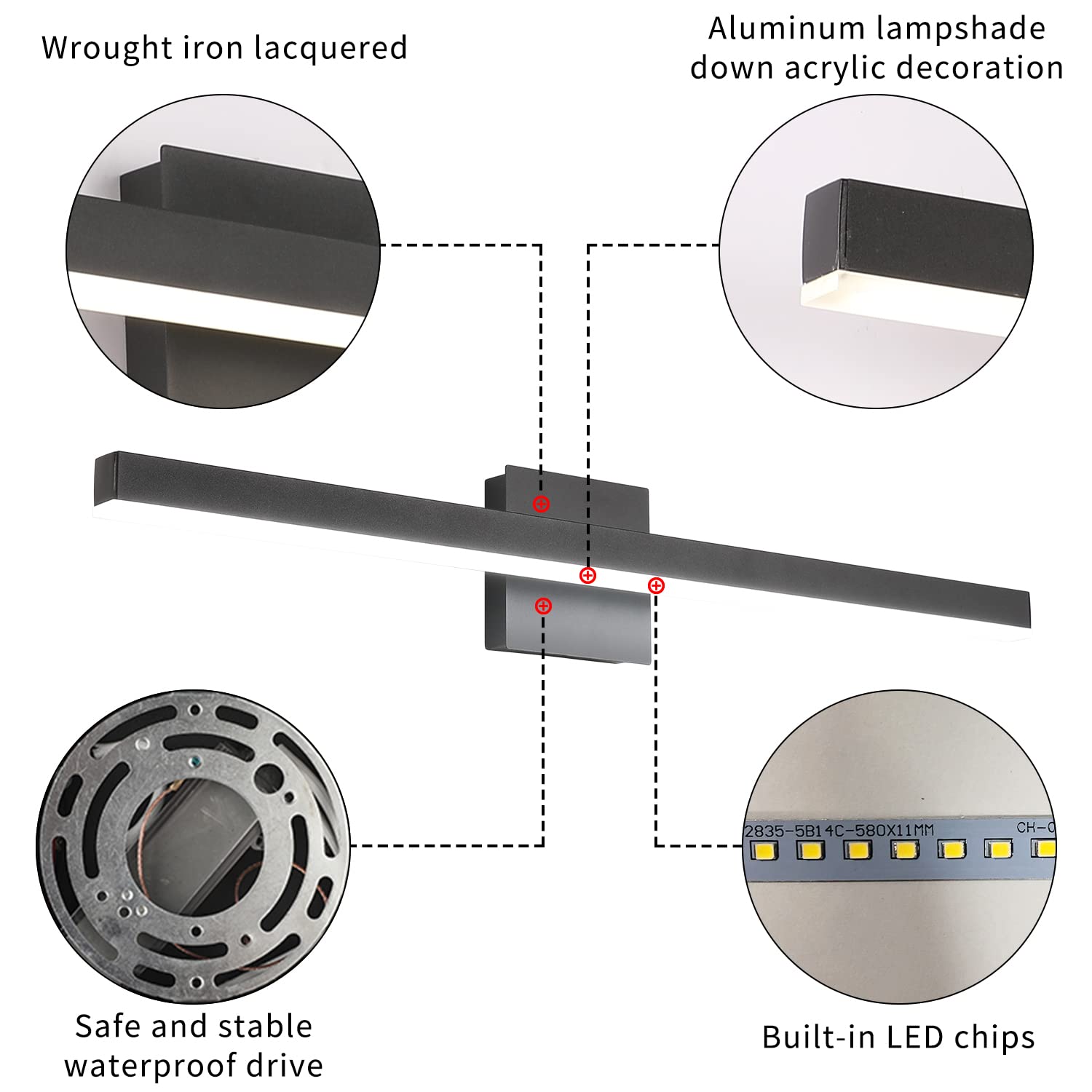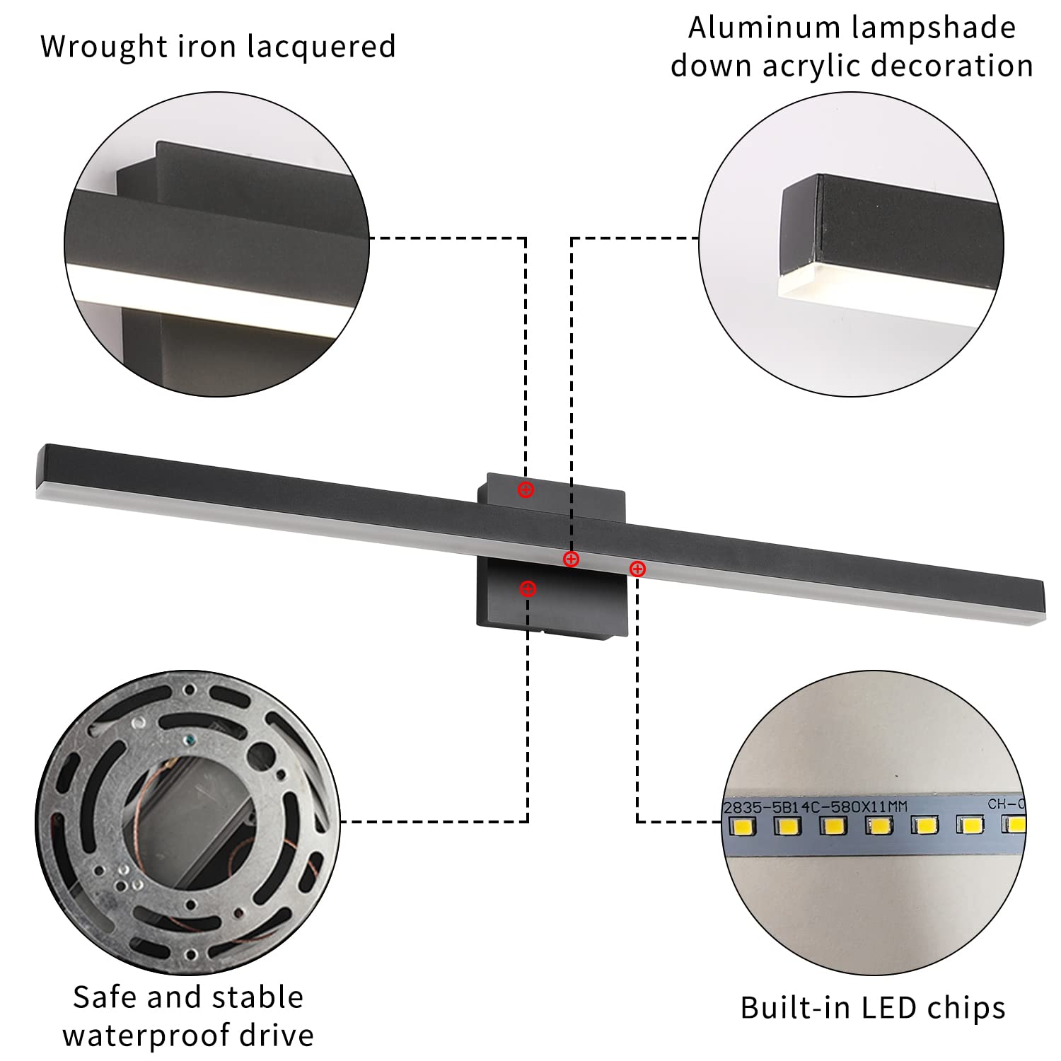 - Durable Led Vanity Lights: Vanity light bar is made of metal material and white acrylic cover, with anti-corrosion, anti-rust, waterproof and dustproof ability
