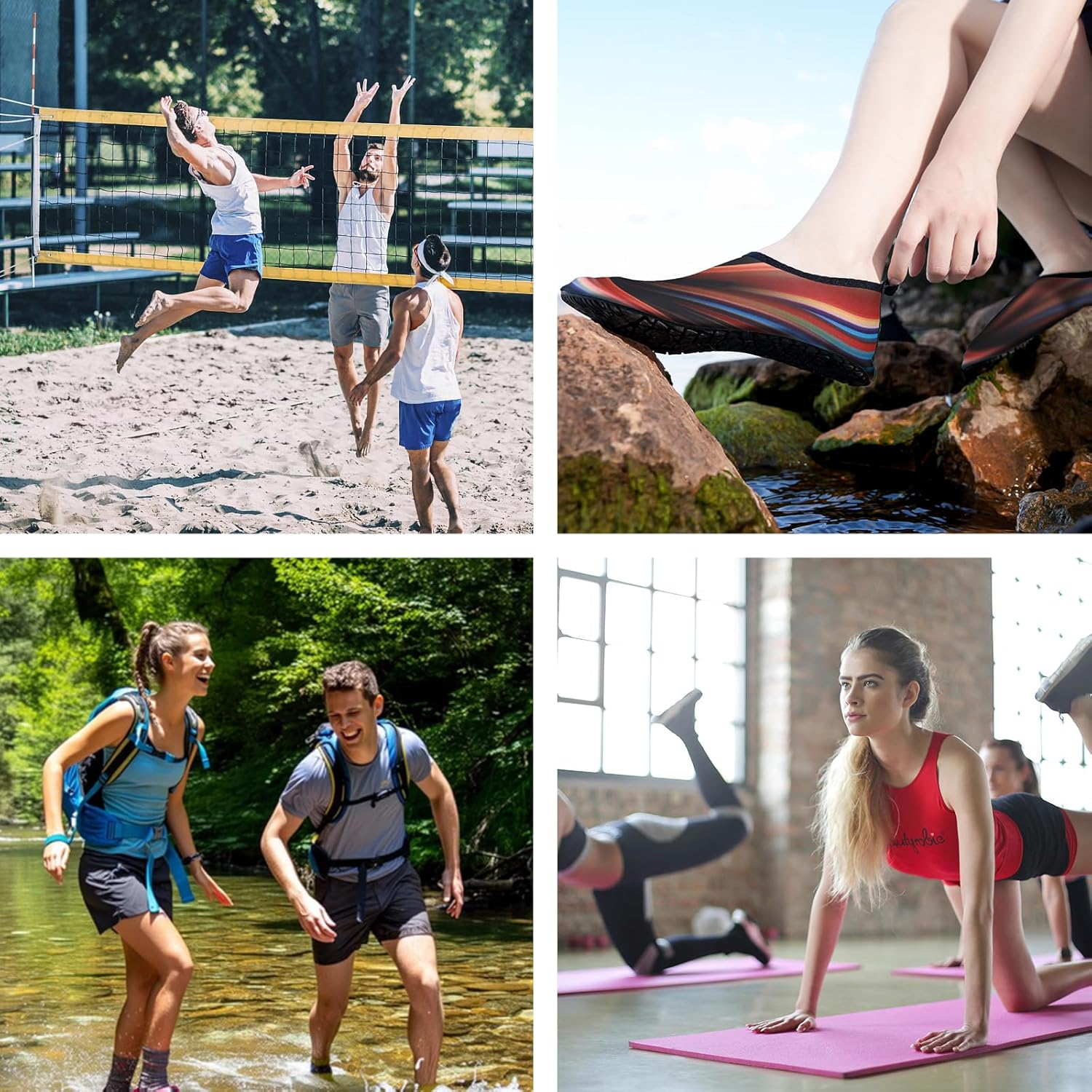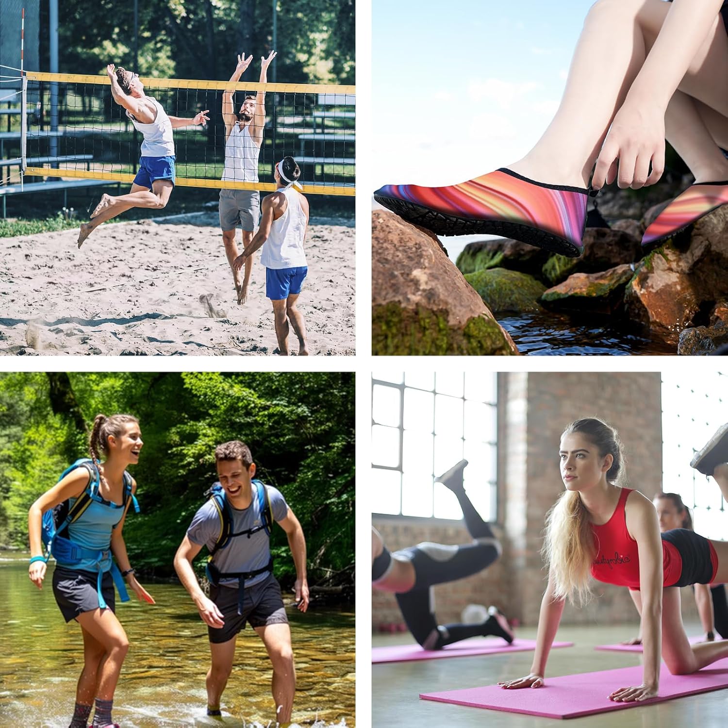 - 👣 Occasions: Lightweight water shoes are ideal for beach trip, swimming, boating, kayaking, snorkeling, windsurfing, beach volleyball, aqua sport, water park activities, fishing, Yoga training and more
