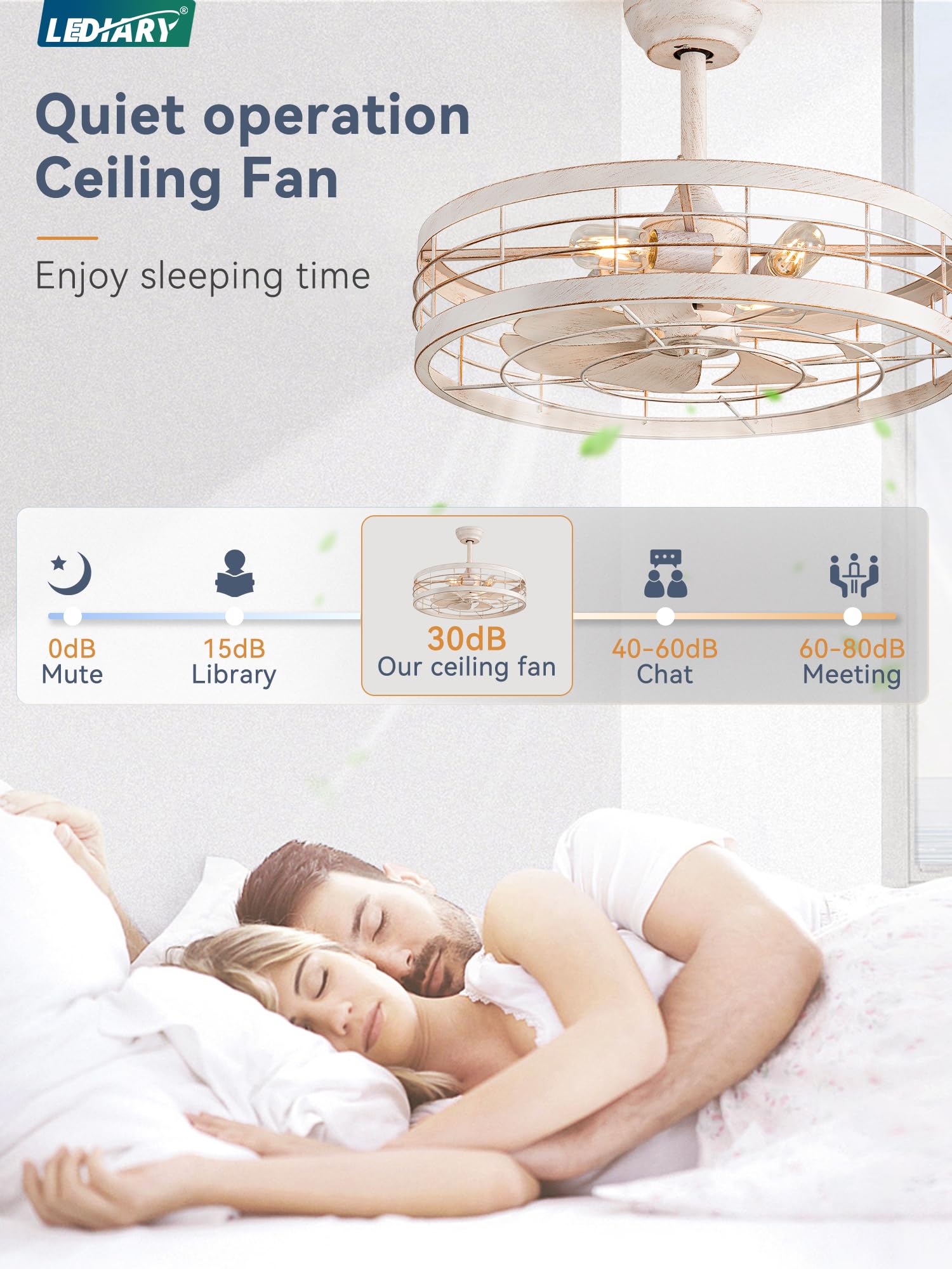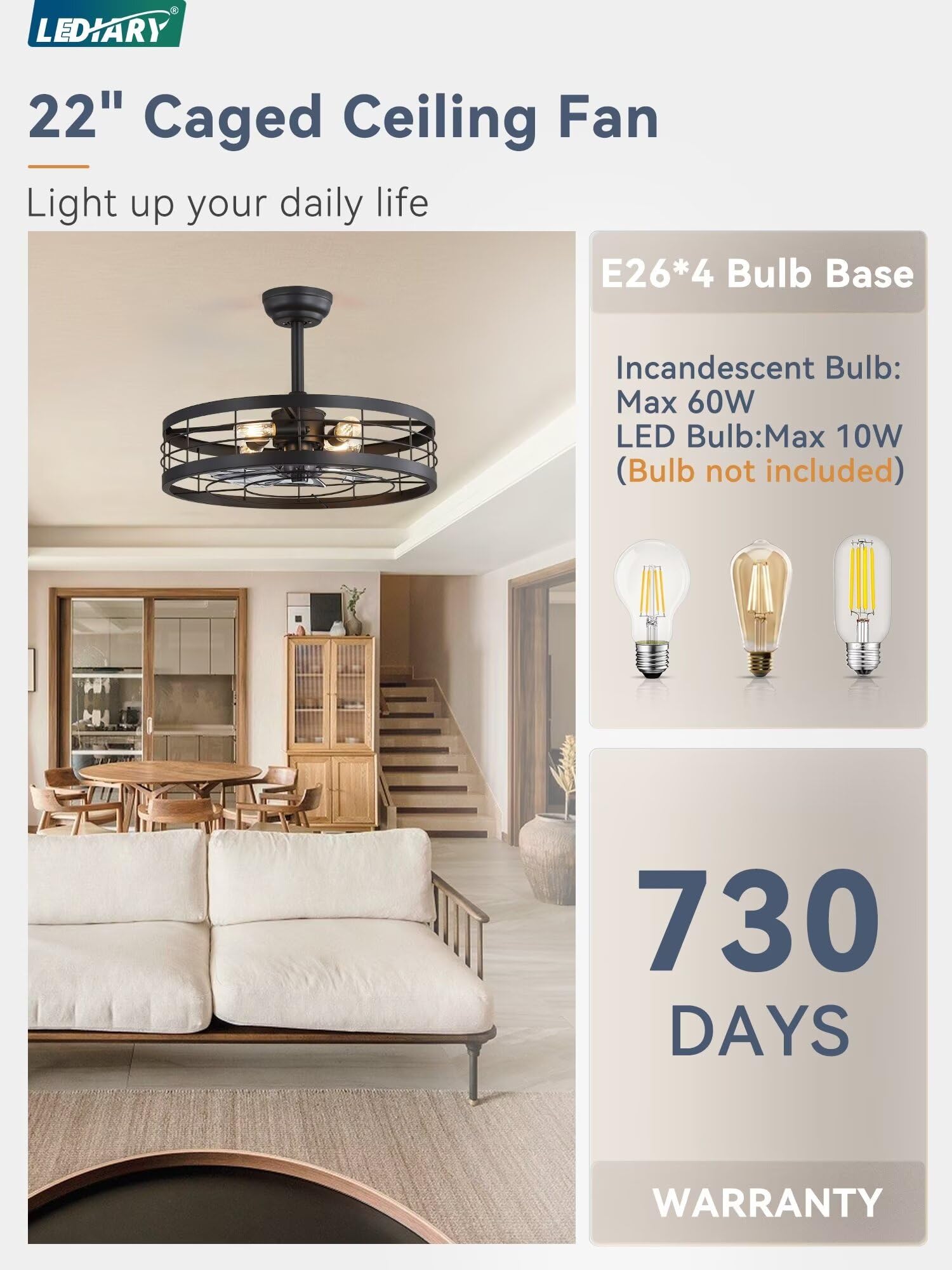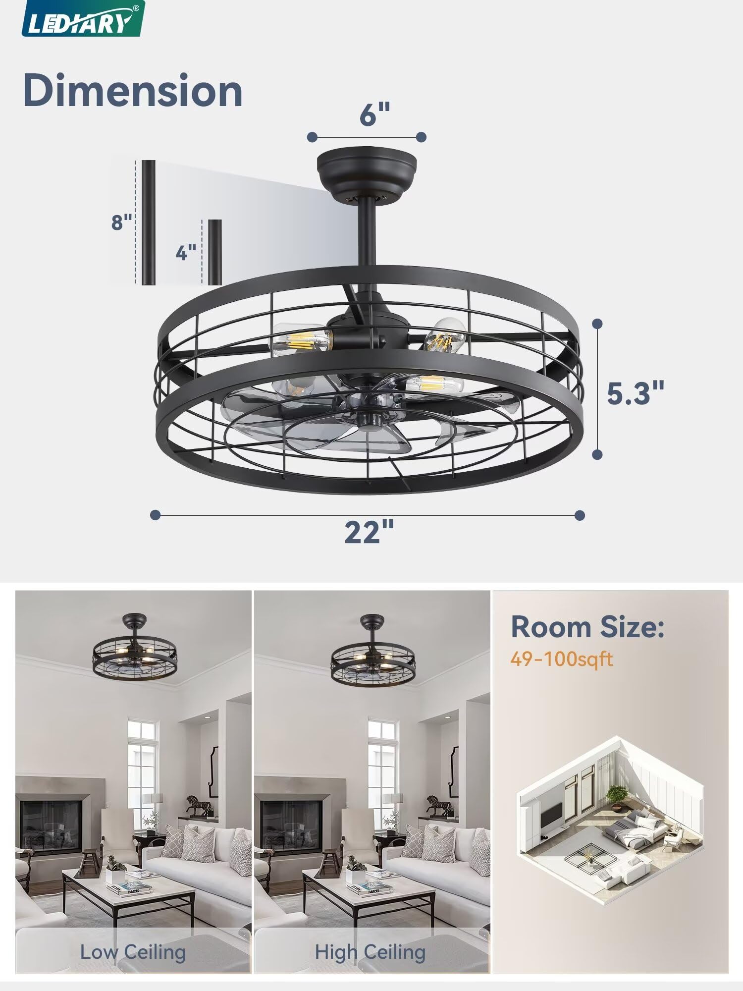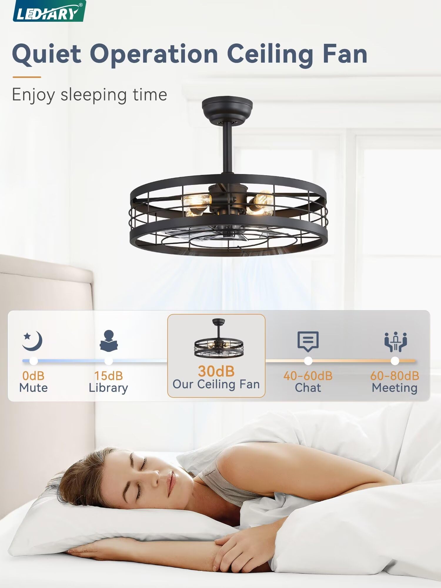 - EASY INSTALLATION: Complete accessories, with detailed instructions, buyers can quickly install and enjoy the comfort brought by the caged ceiling fan with light