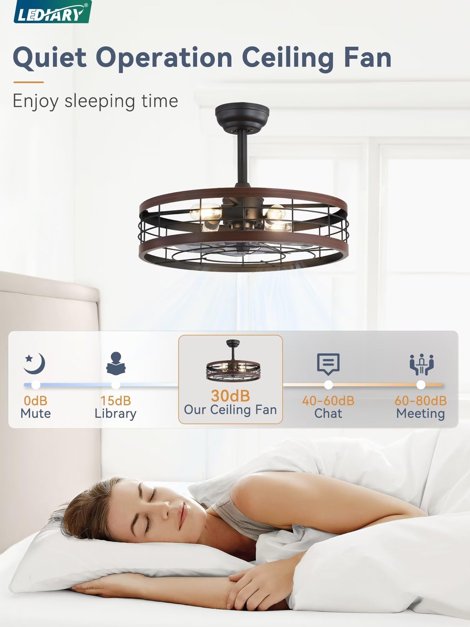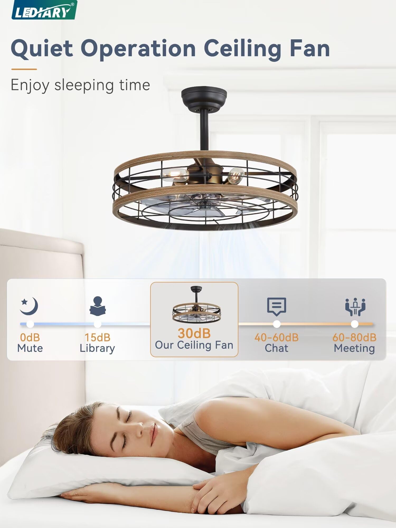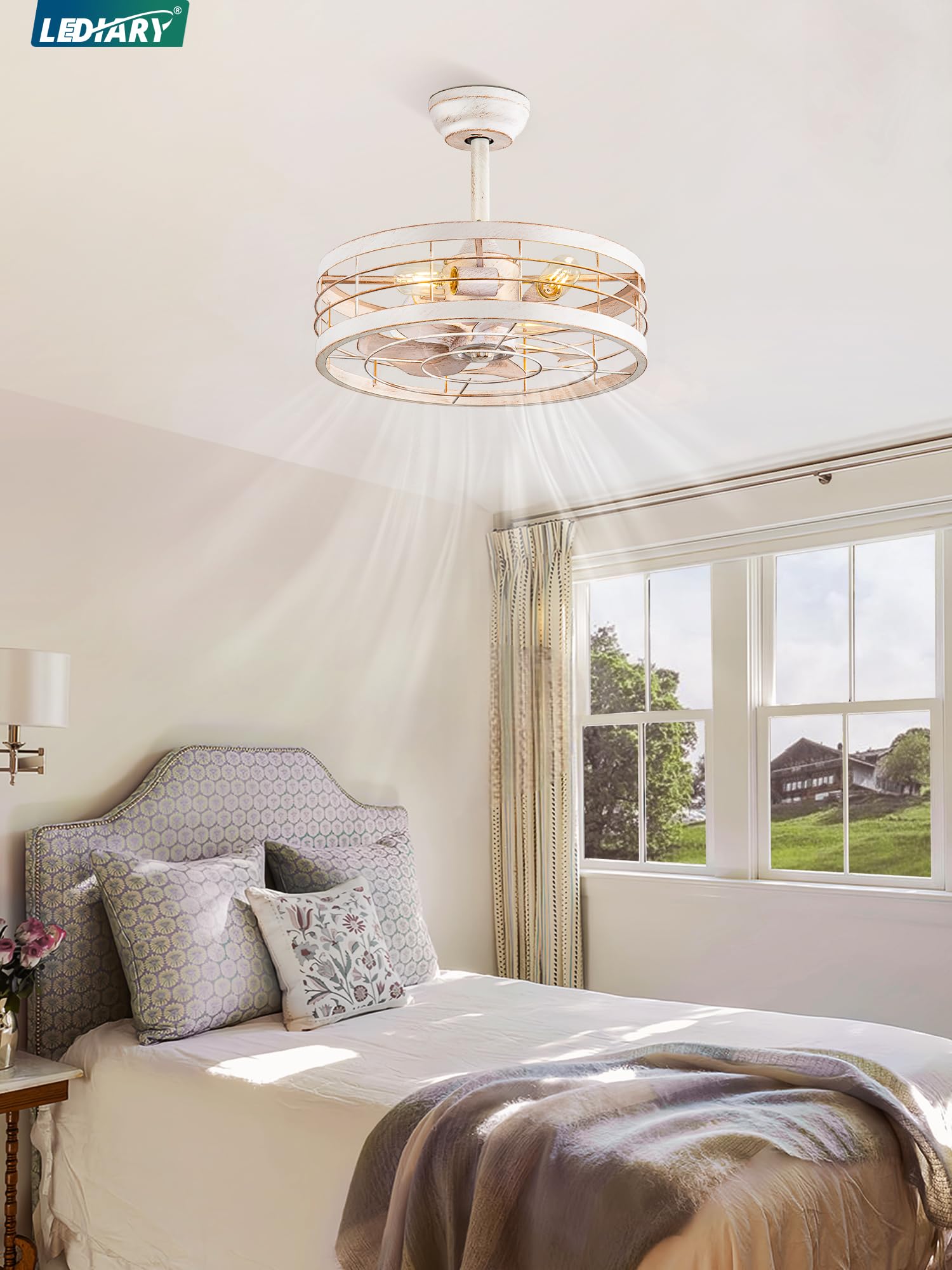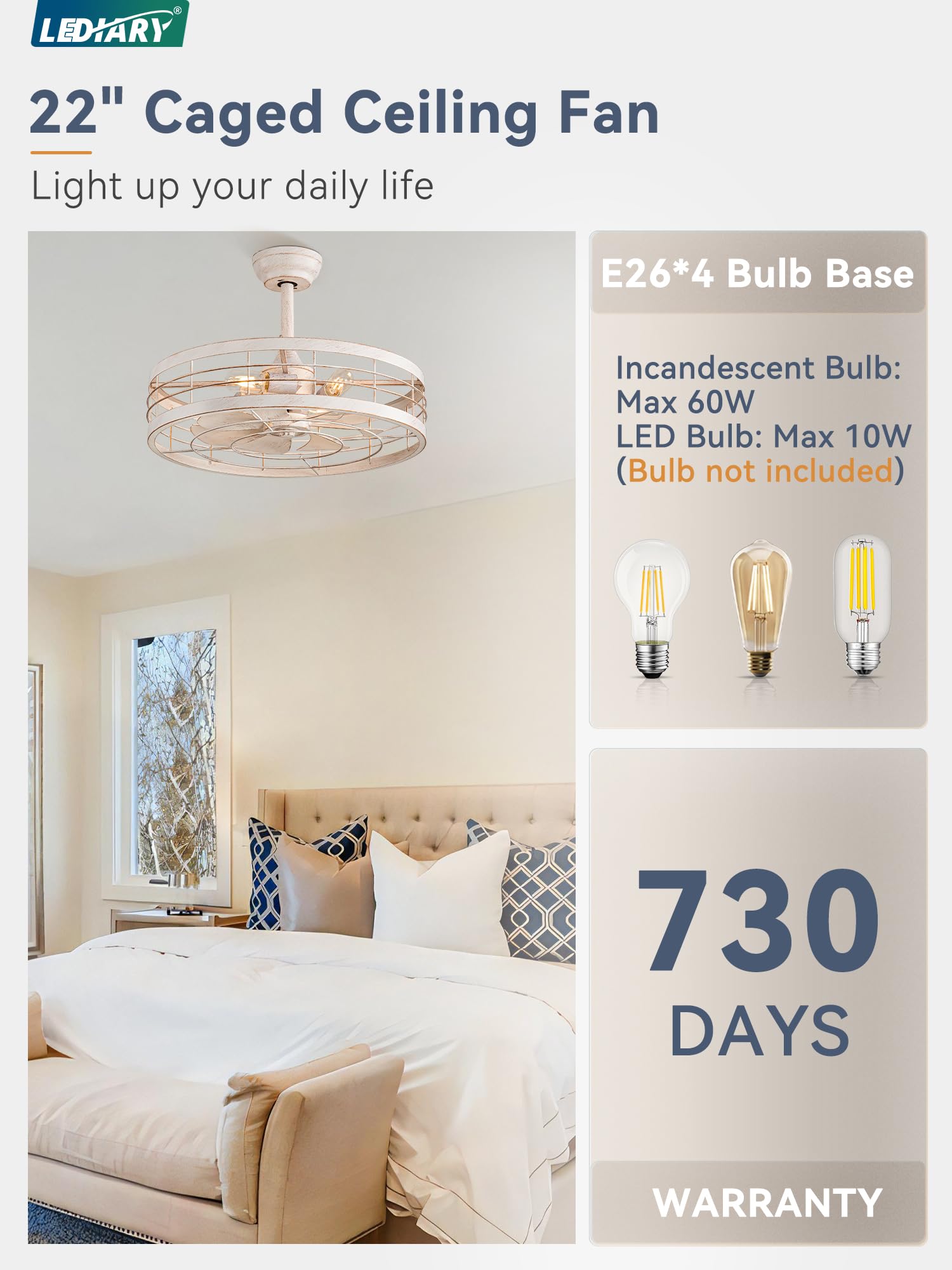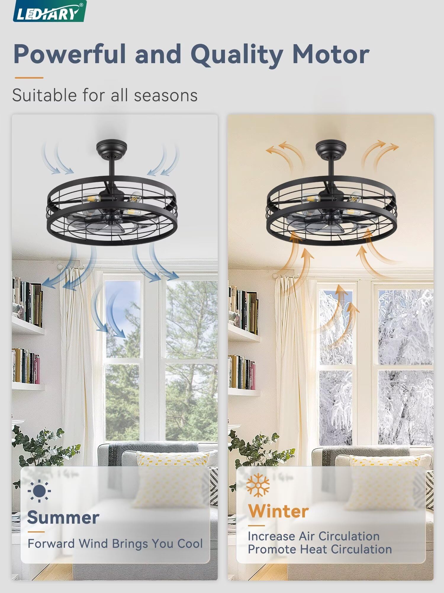 - EASY INSTALLATION: Complete accessories, with detailed instructions, buyers can quickly install and enjoy the comfort brought by the caged ceiling fan with light