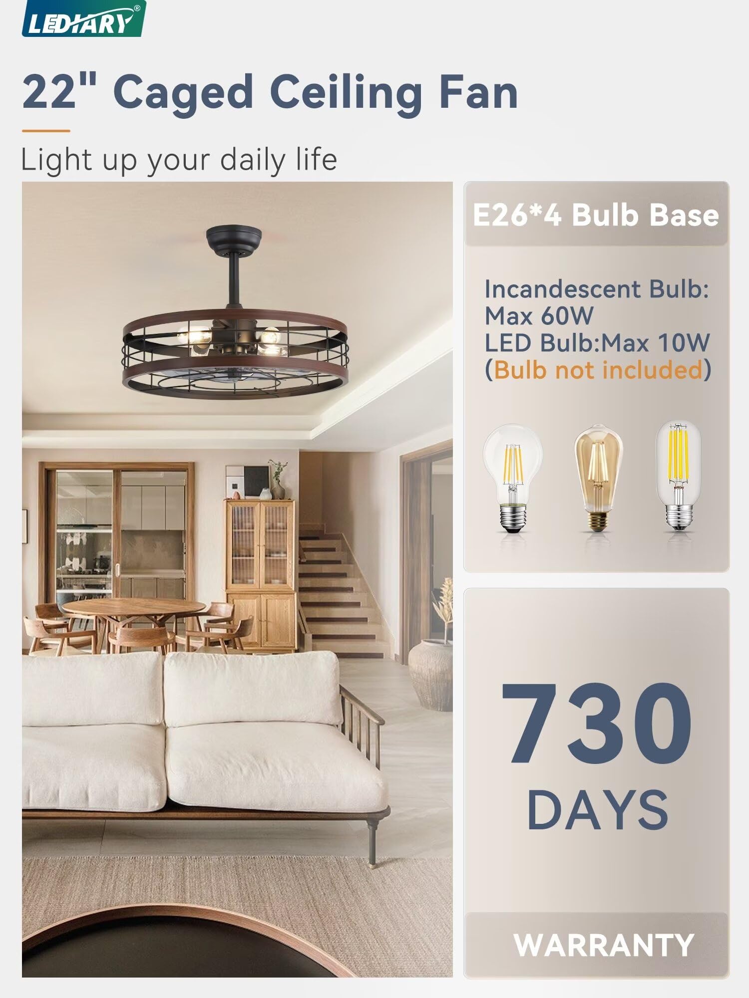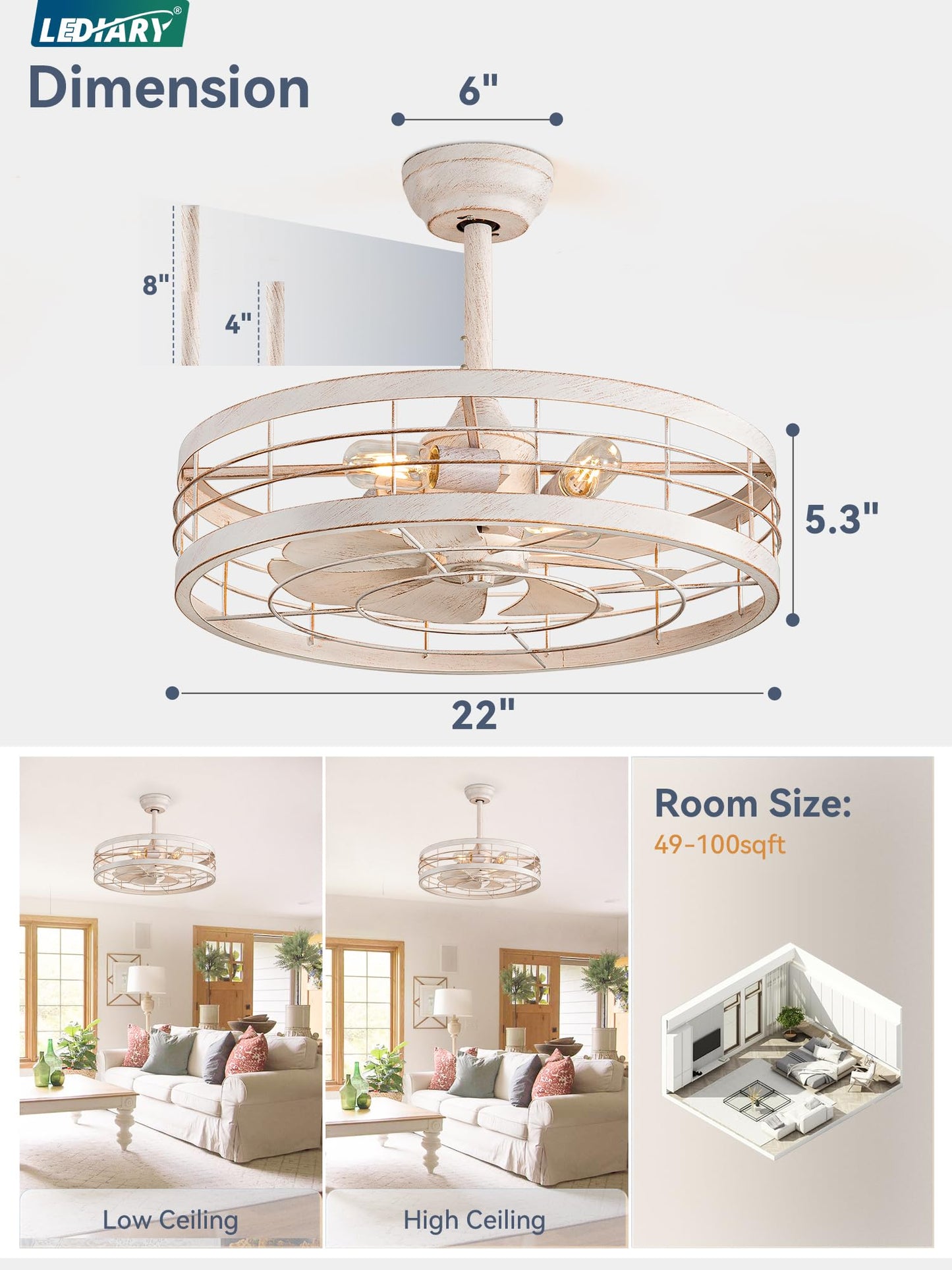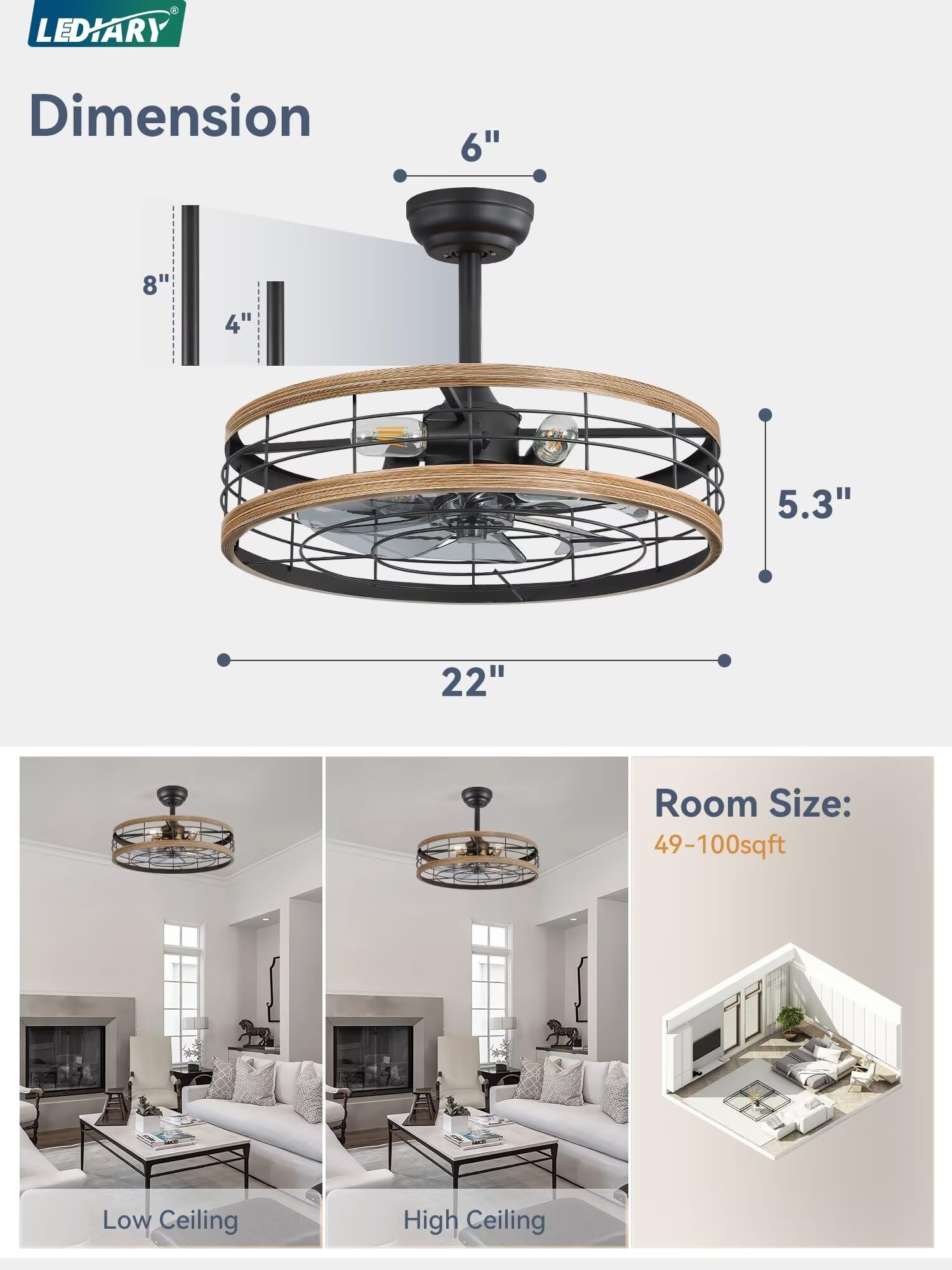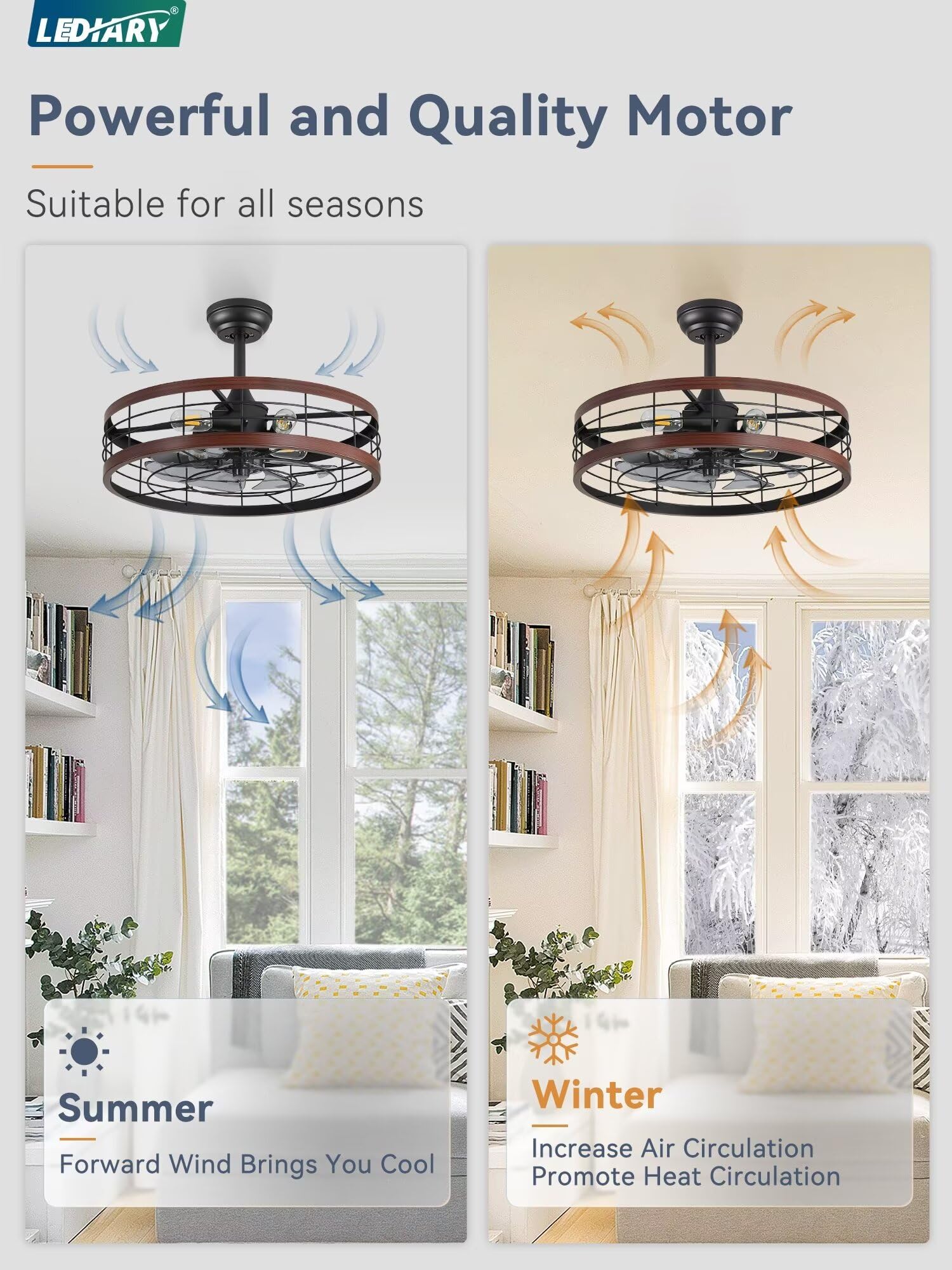 - EASY INSTALLATION: Complete accessories, with detailed instructions, buyers can quickly install and enjoy the comfort brought by the caged ceiling fan with light