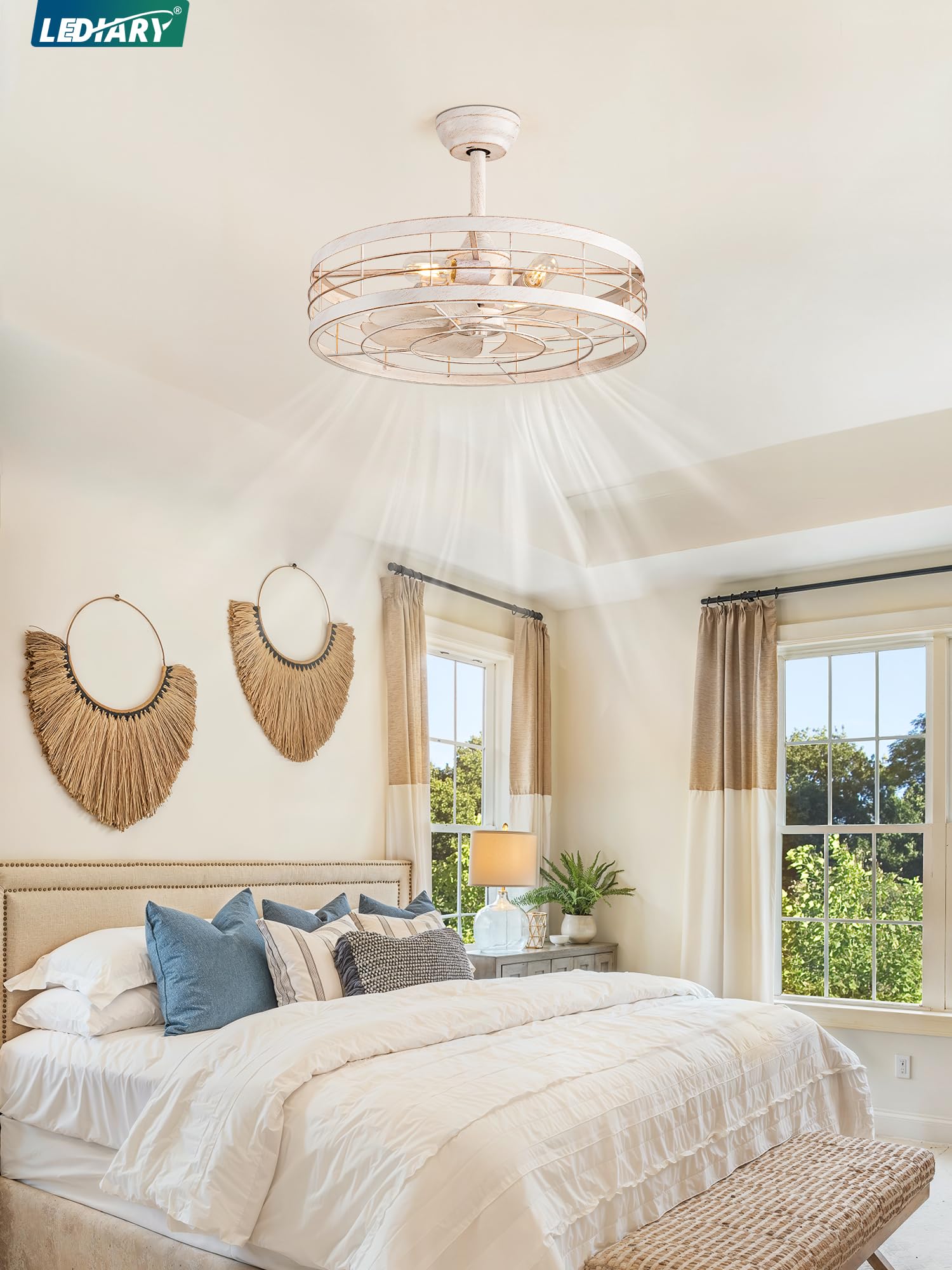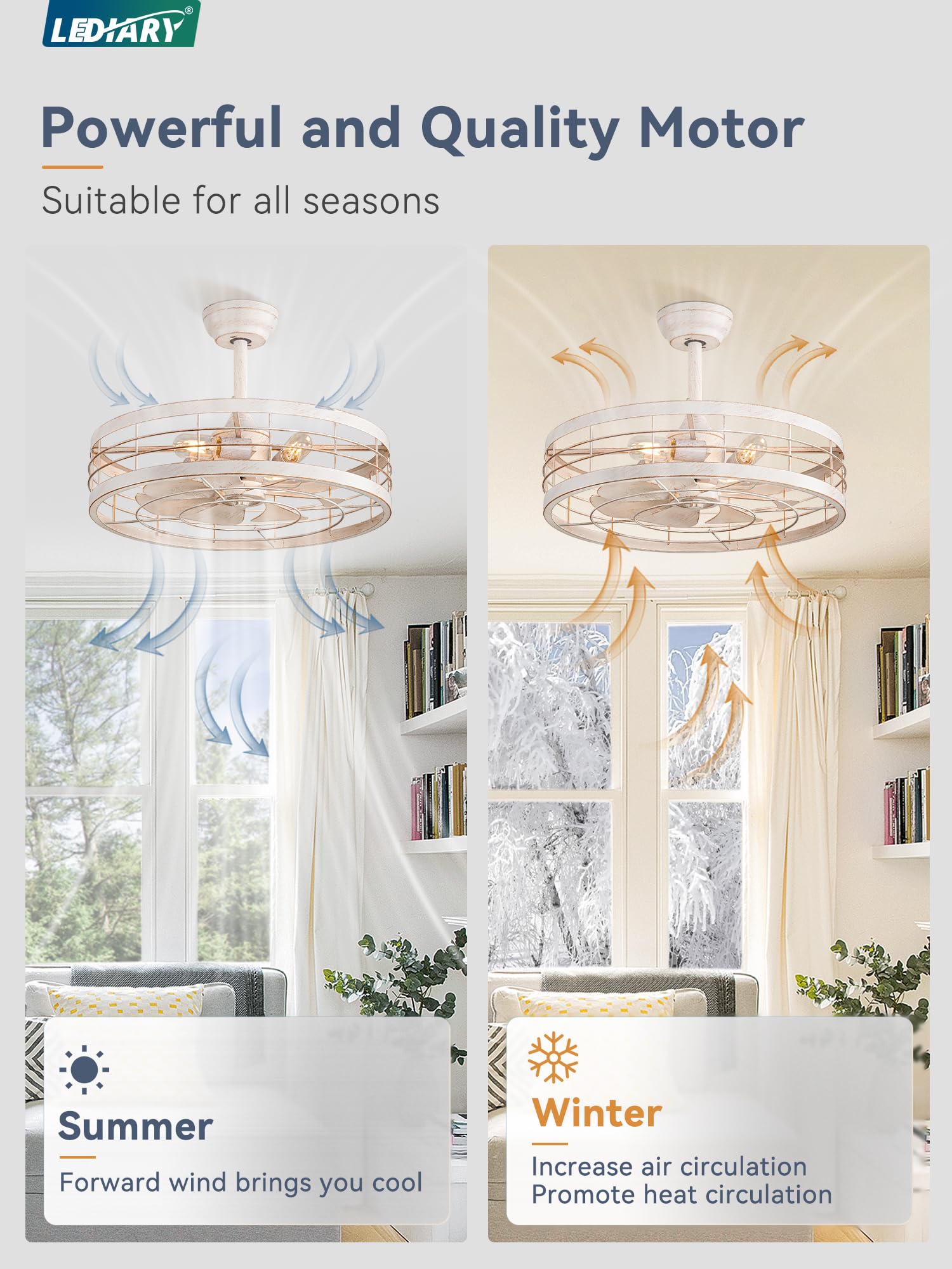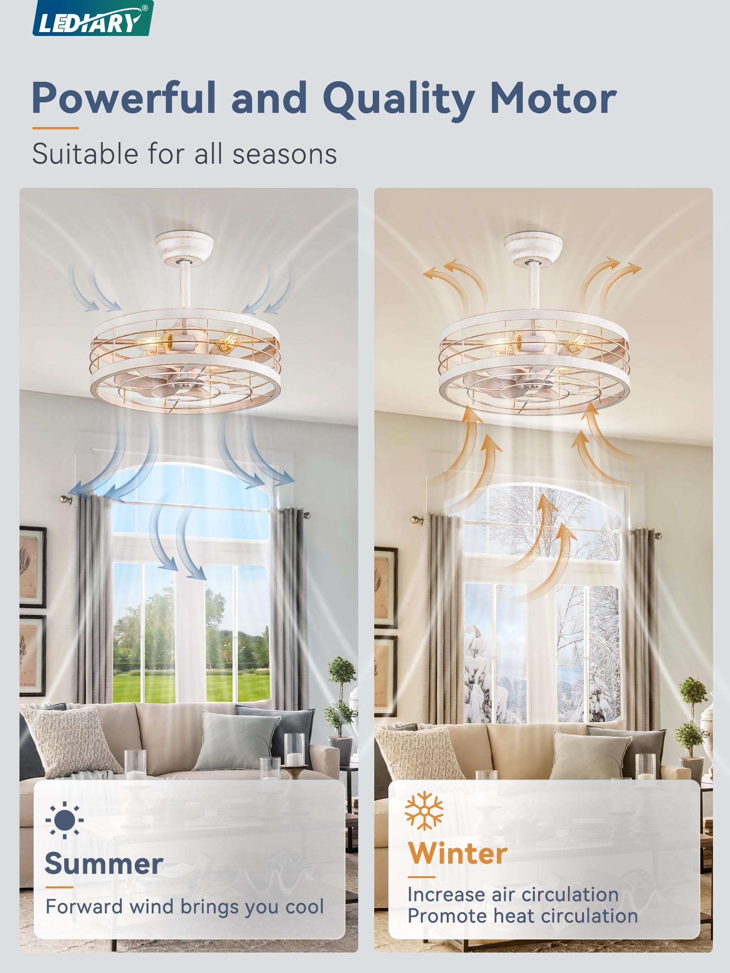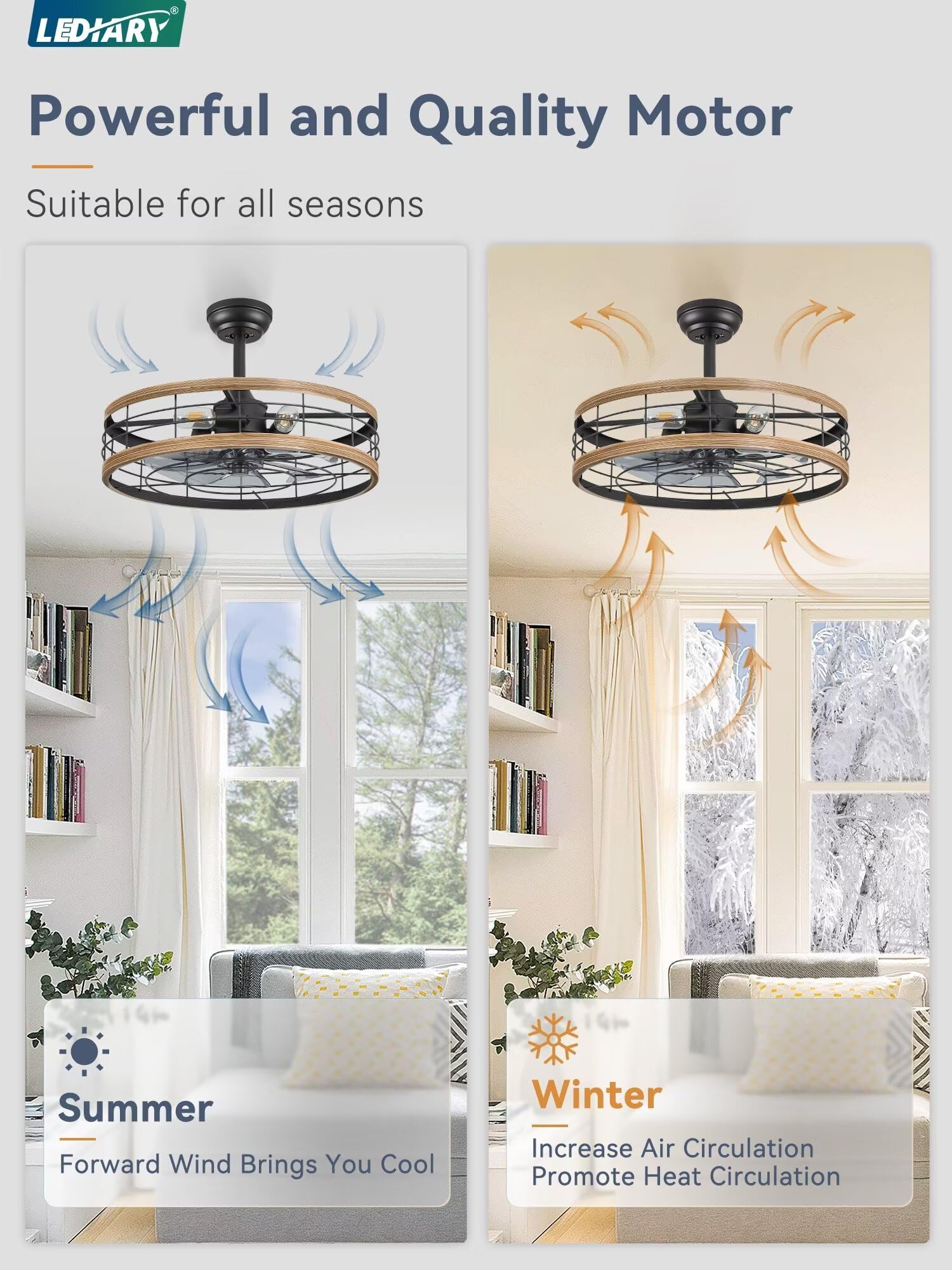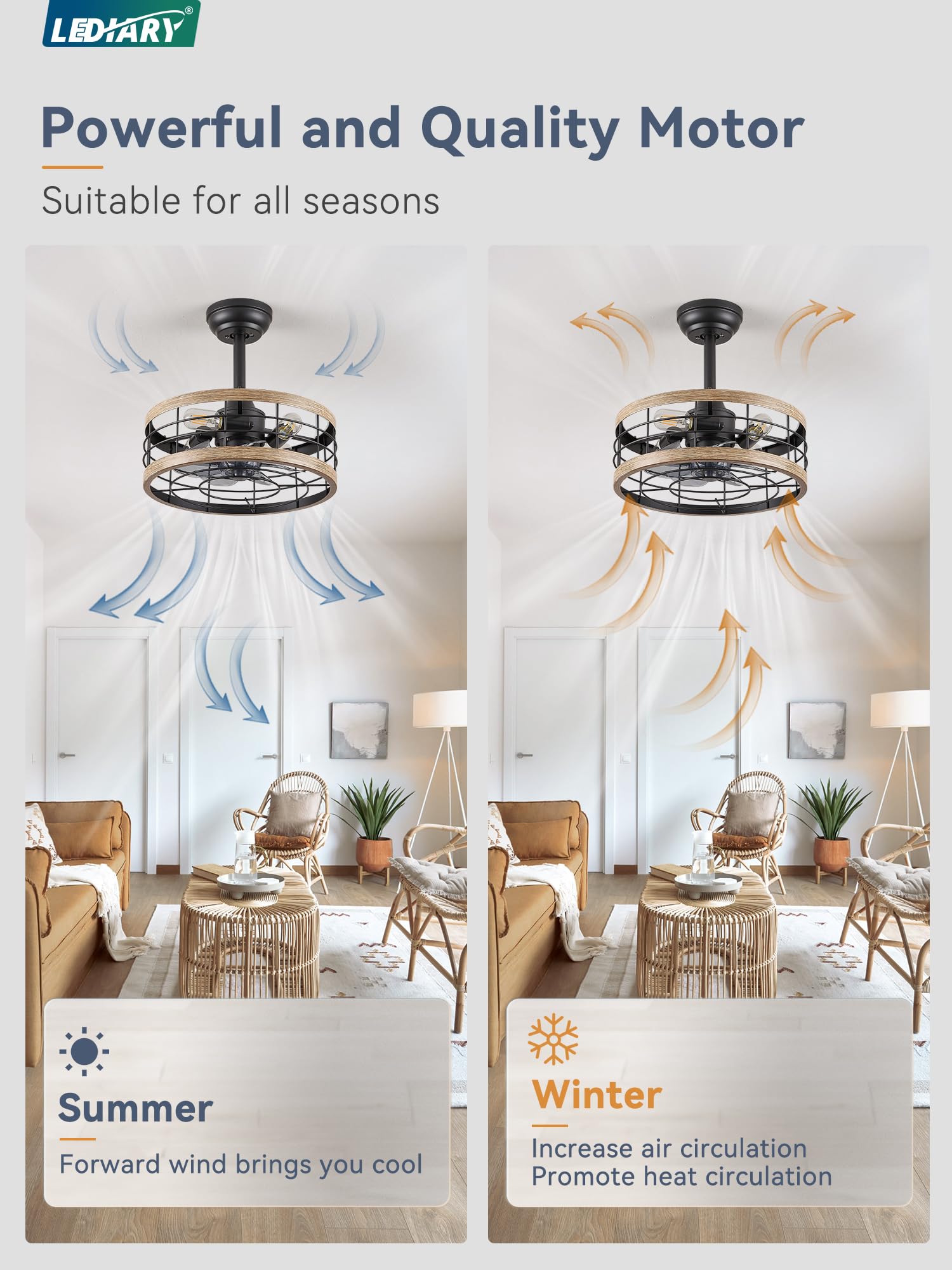 - EASY INSTALLATION: Complete accessories, with detailed instructions, buyers can quickly install and enjoy the comfort brought by the caged ceiling fan with light