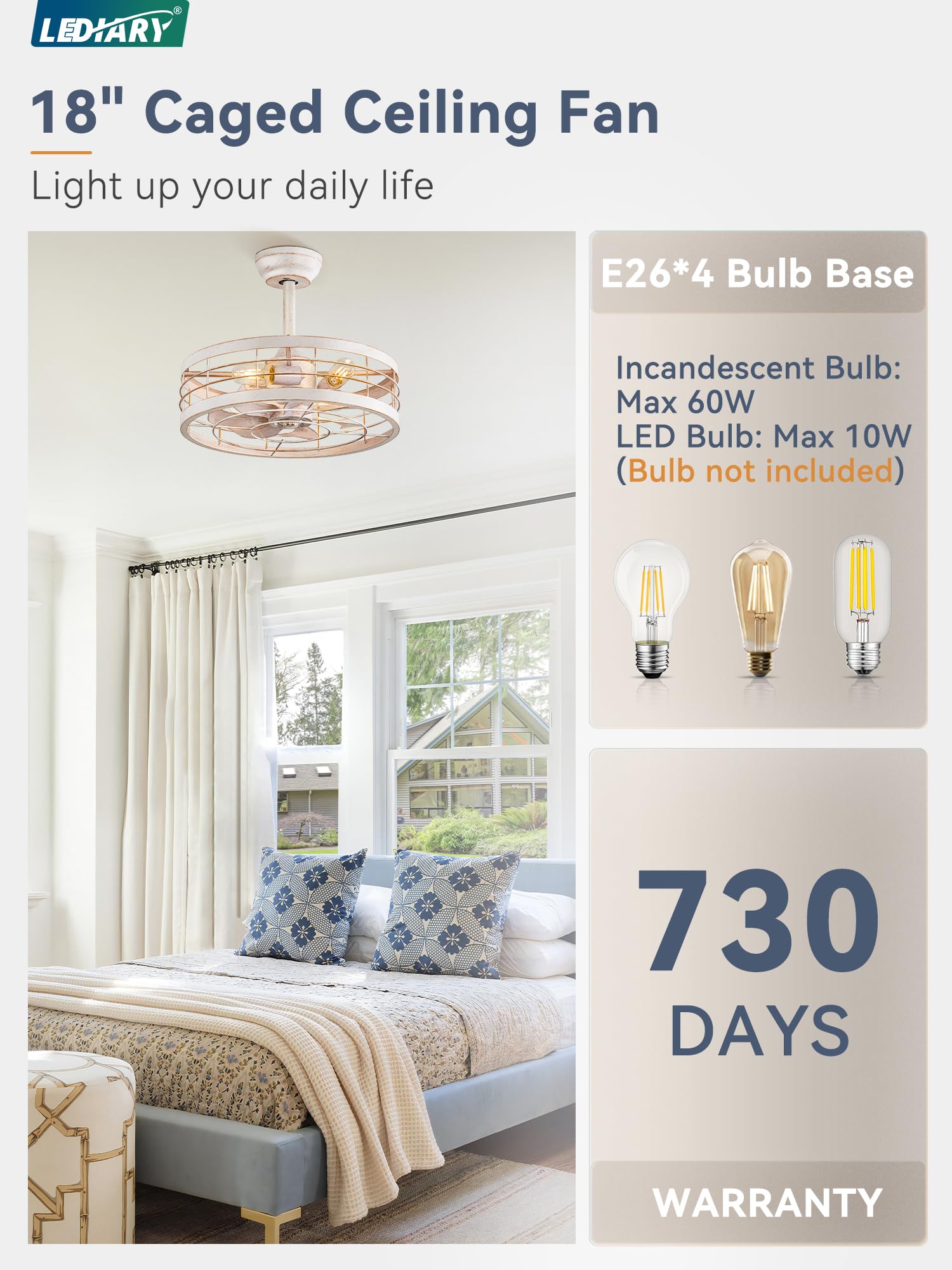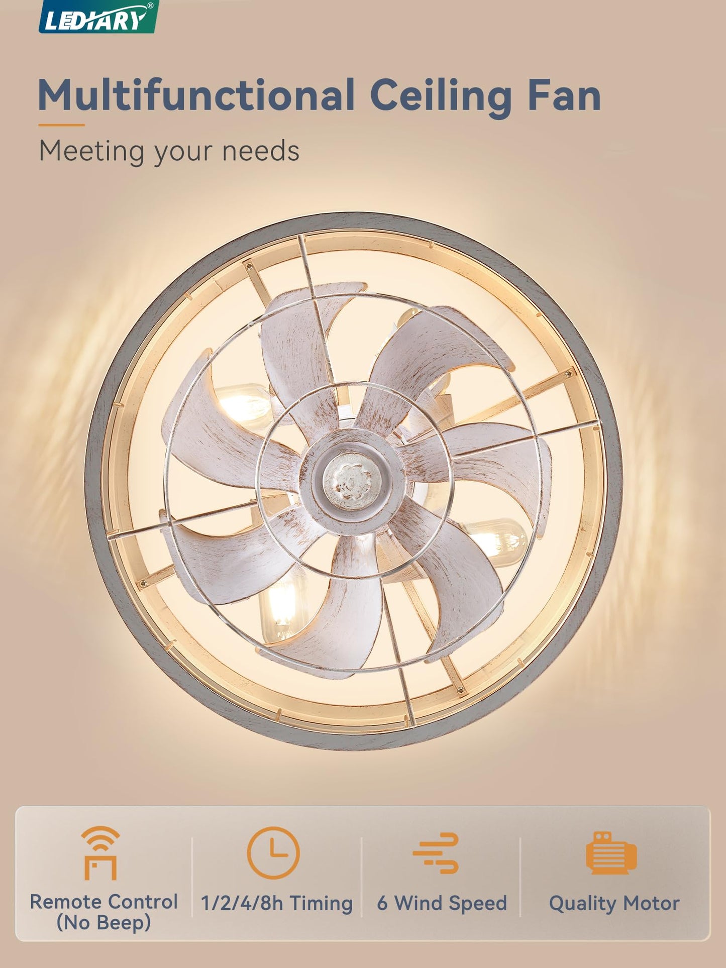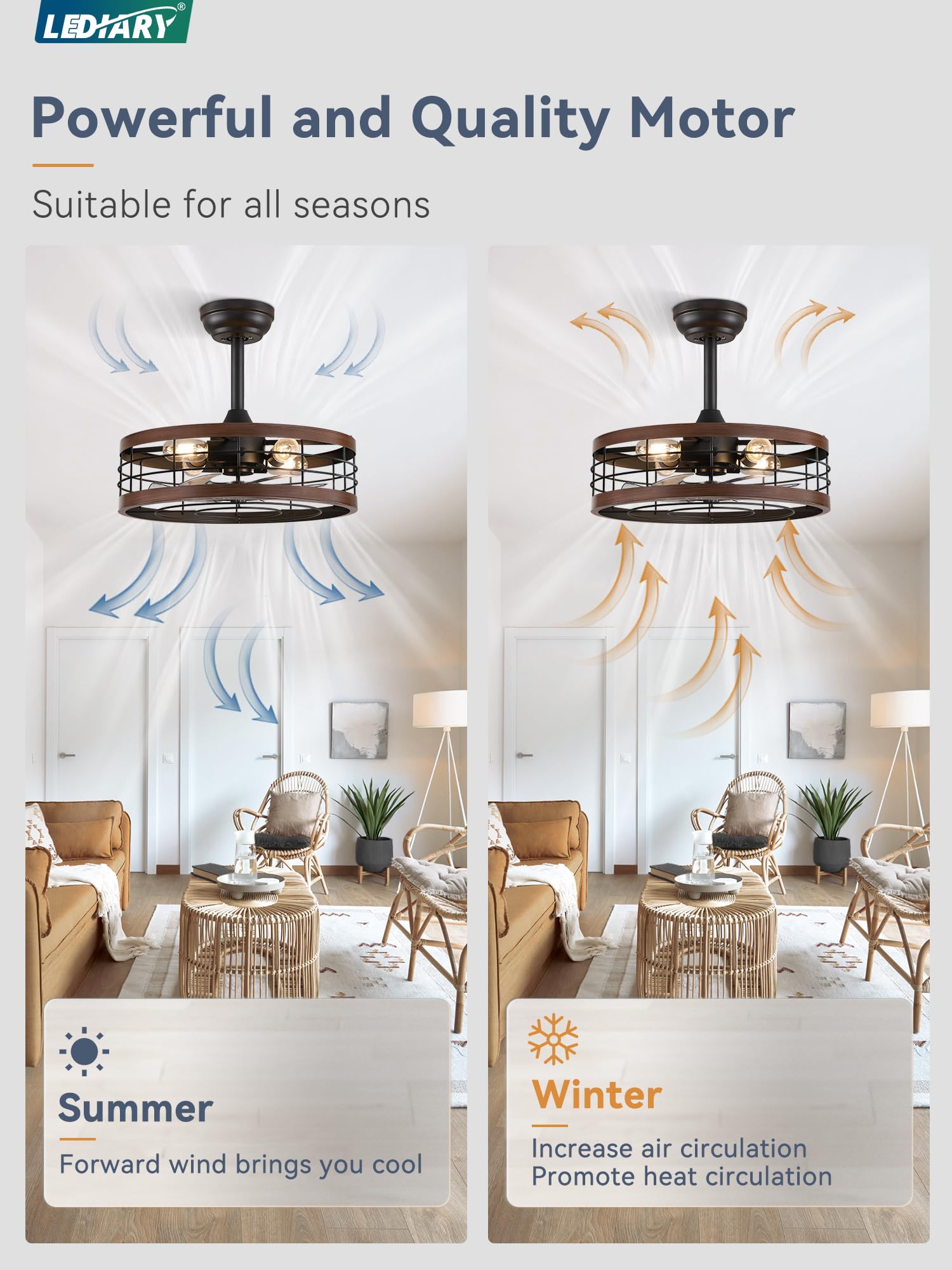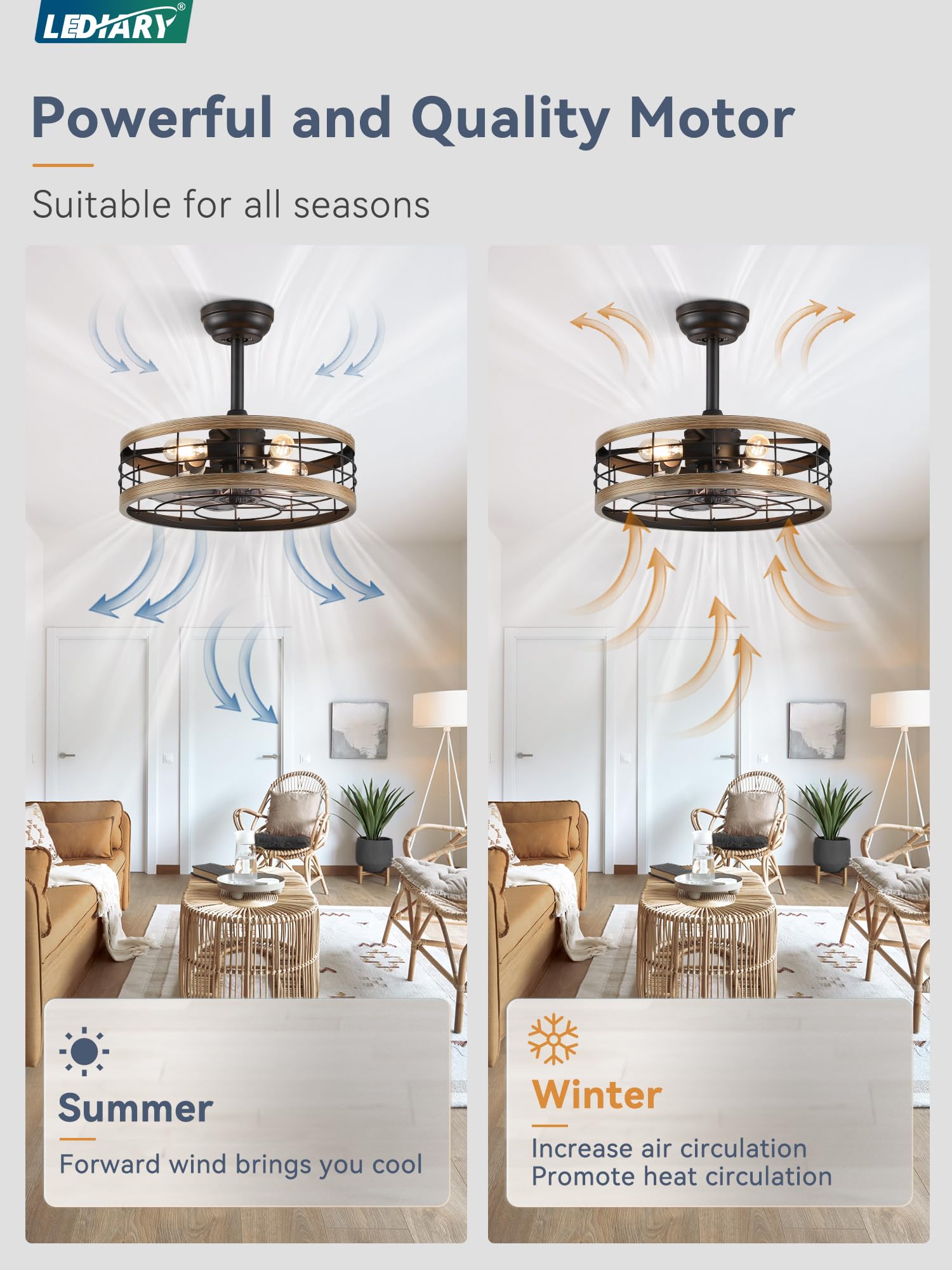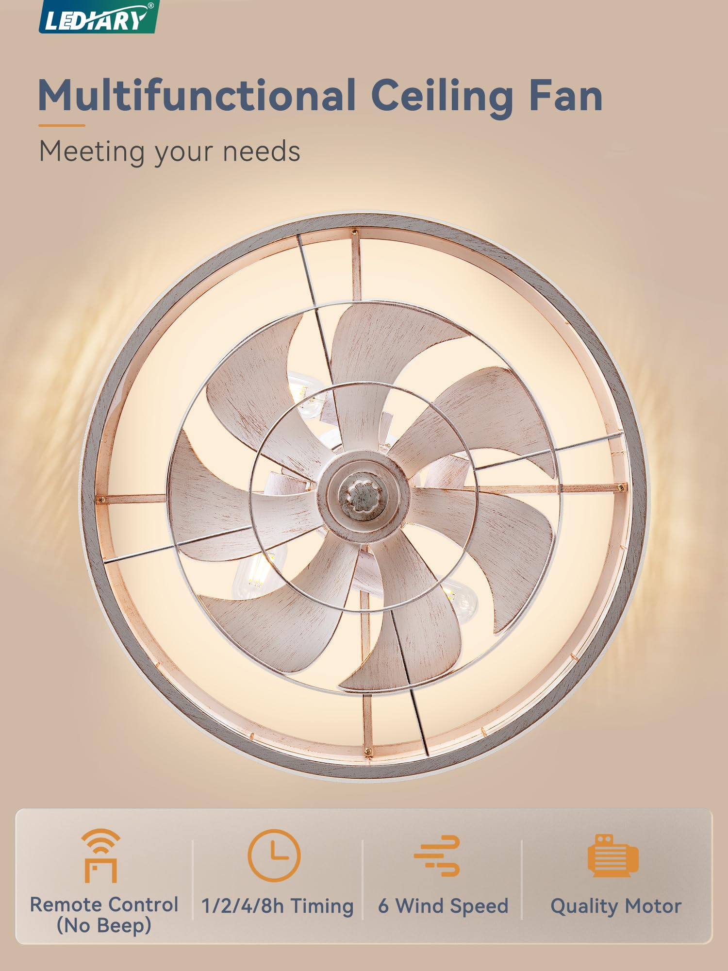 LEDIARY 16.5 inch Black Caged Ceiling Fan with Light, Fandelier Industrial Ceiling Fan with Remote, Farmhouse Fan Lights Ceiling Fixtures for Kitchen, Bedroom, Outdoor(6 Speed, Timing)-Black