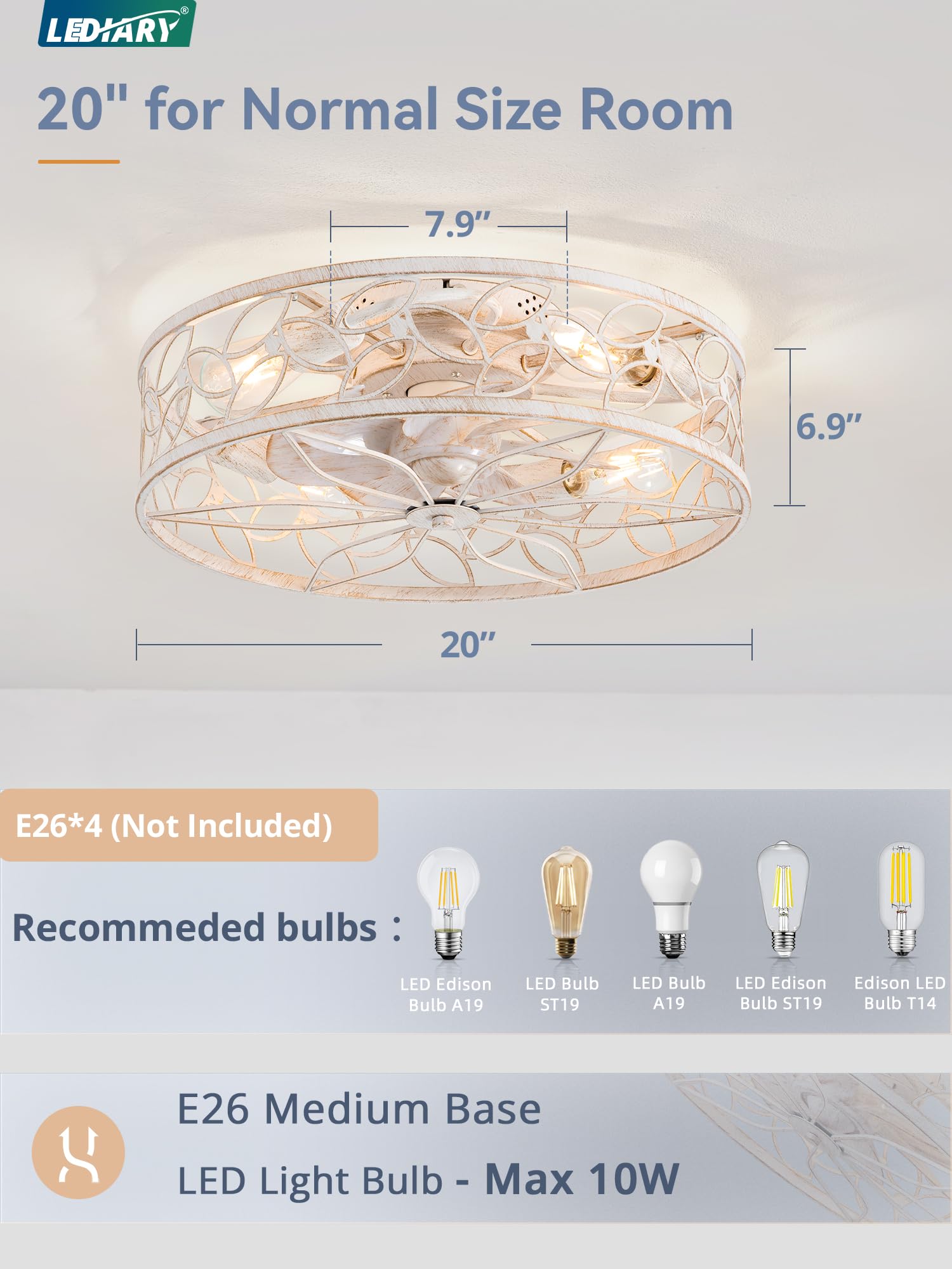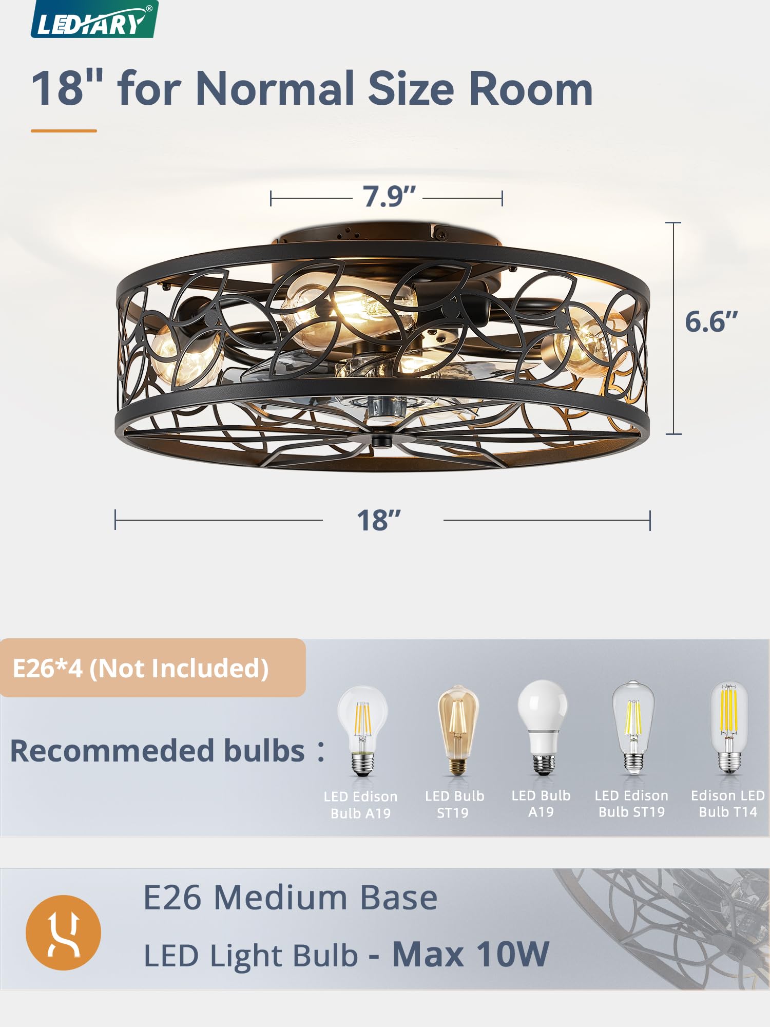 - 【Quality Assurance】LEDIARY flush mount ceiling fan with lights have 5-year motor support and 2-year limited support on other parts. We uphold the highest standards for all our products by testing each product for optimal performance, just buy with confidence.