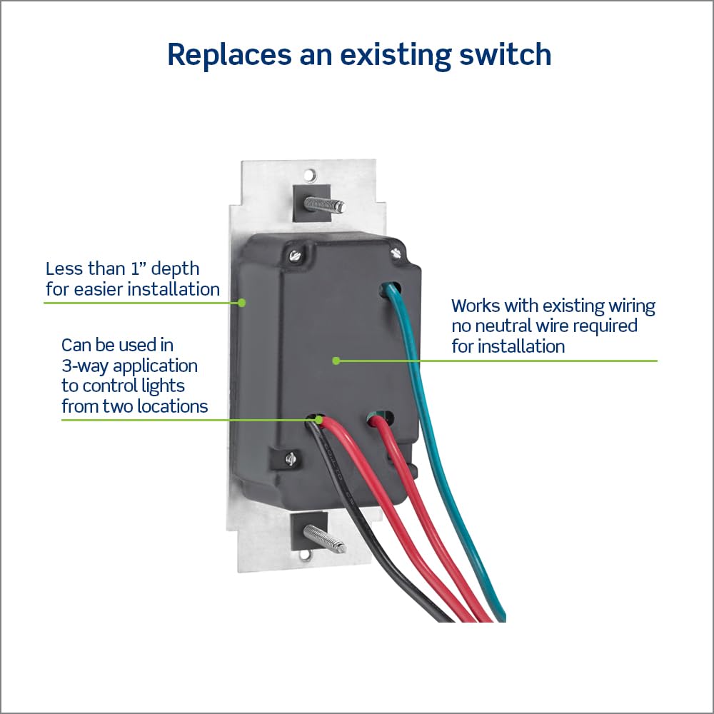 - EASY TO INSTALL - slim profile fits in most wallboxes. 150W LED, 600W incandescent/halogen. Works with existing wiring, no neutral wire required for installation