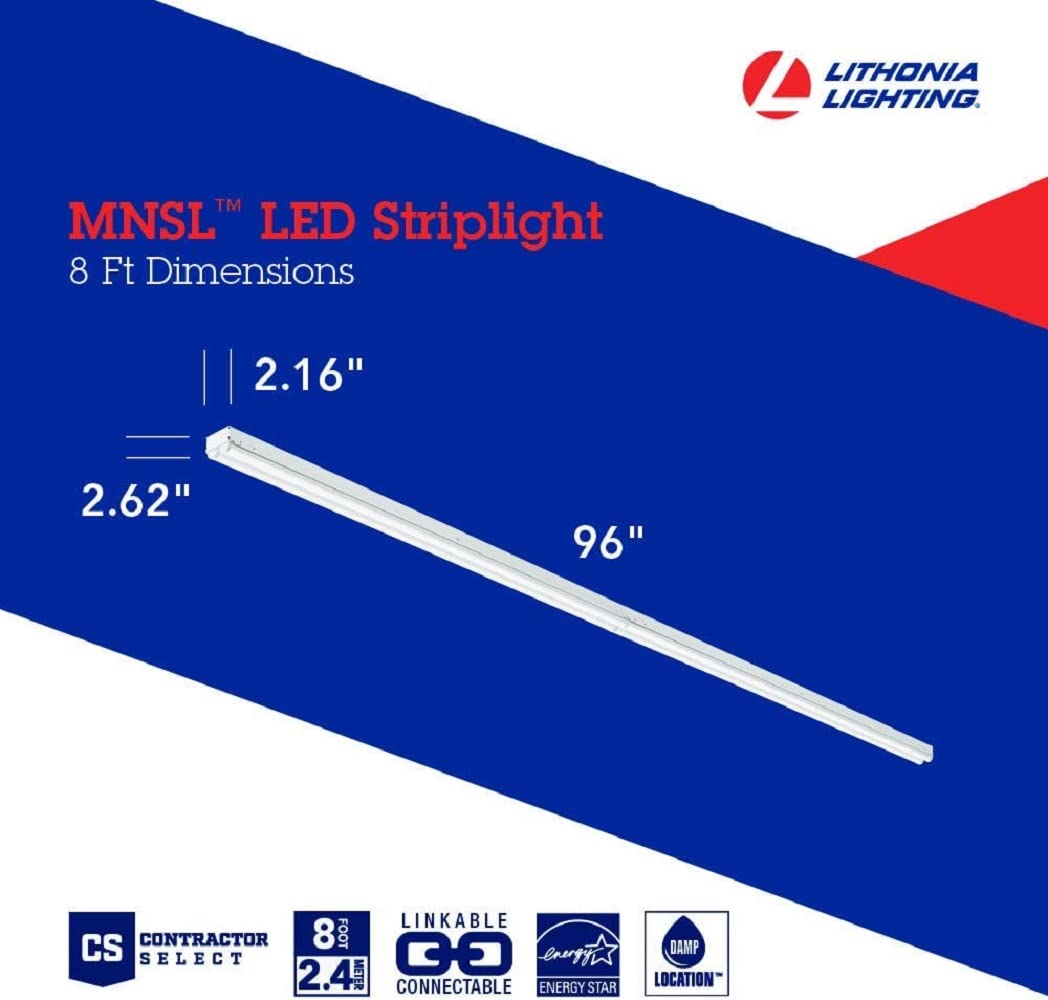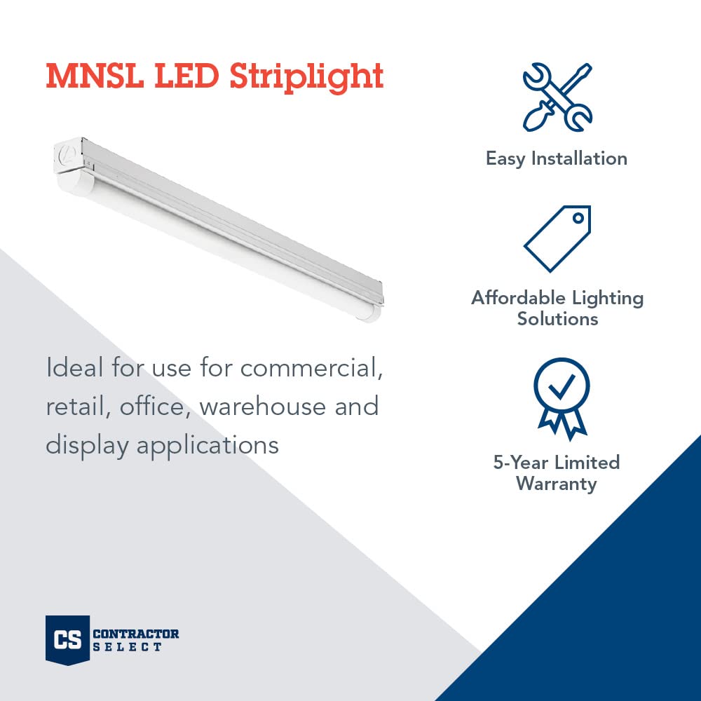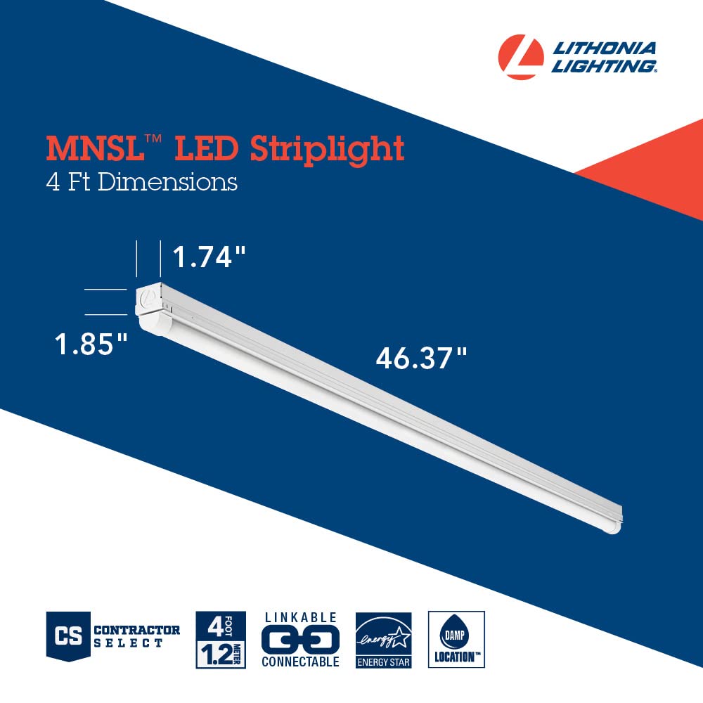 The Lithonia Lighting 4-foot, 1-light 4000K Cool White LED strip light offers a traditional appearance while incorporating the latest LED technology. This strip light is ideal for commercial, retail, office, warehouse and display applications