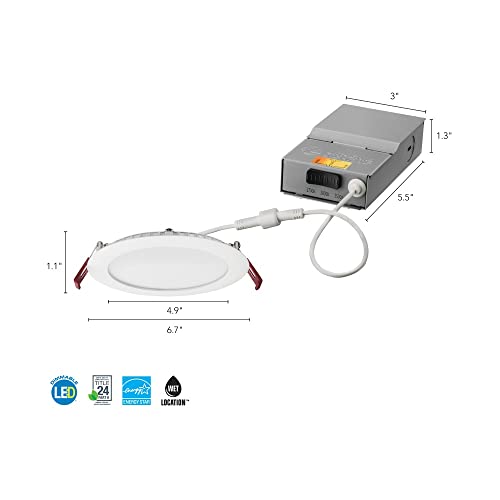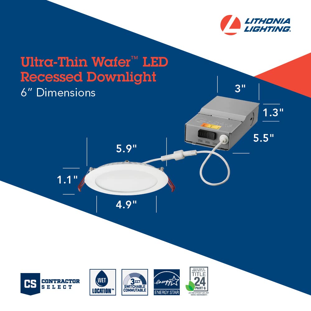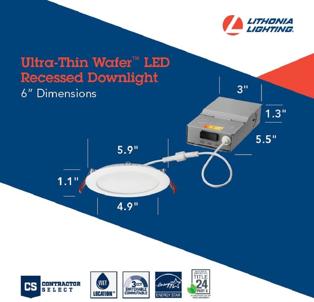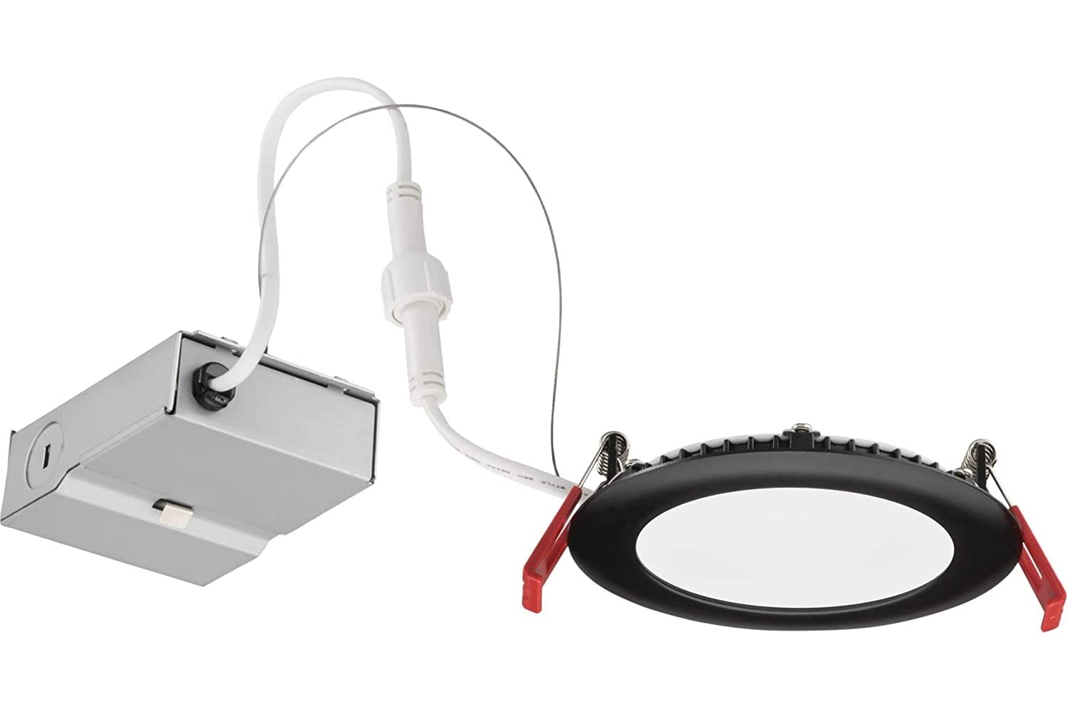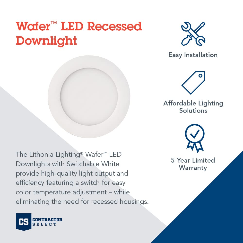 Lithonia Lighting WF4 LED 27K30K35K 90CRI MB M6 Recessed Wafer Downlight with Ultra Thin Round Trim, Color Temperature Selectable, 2700K | 3000K | 3500K, 4-Inch, Matte Black