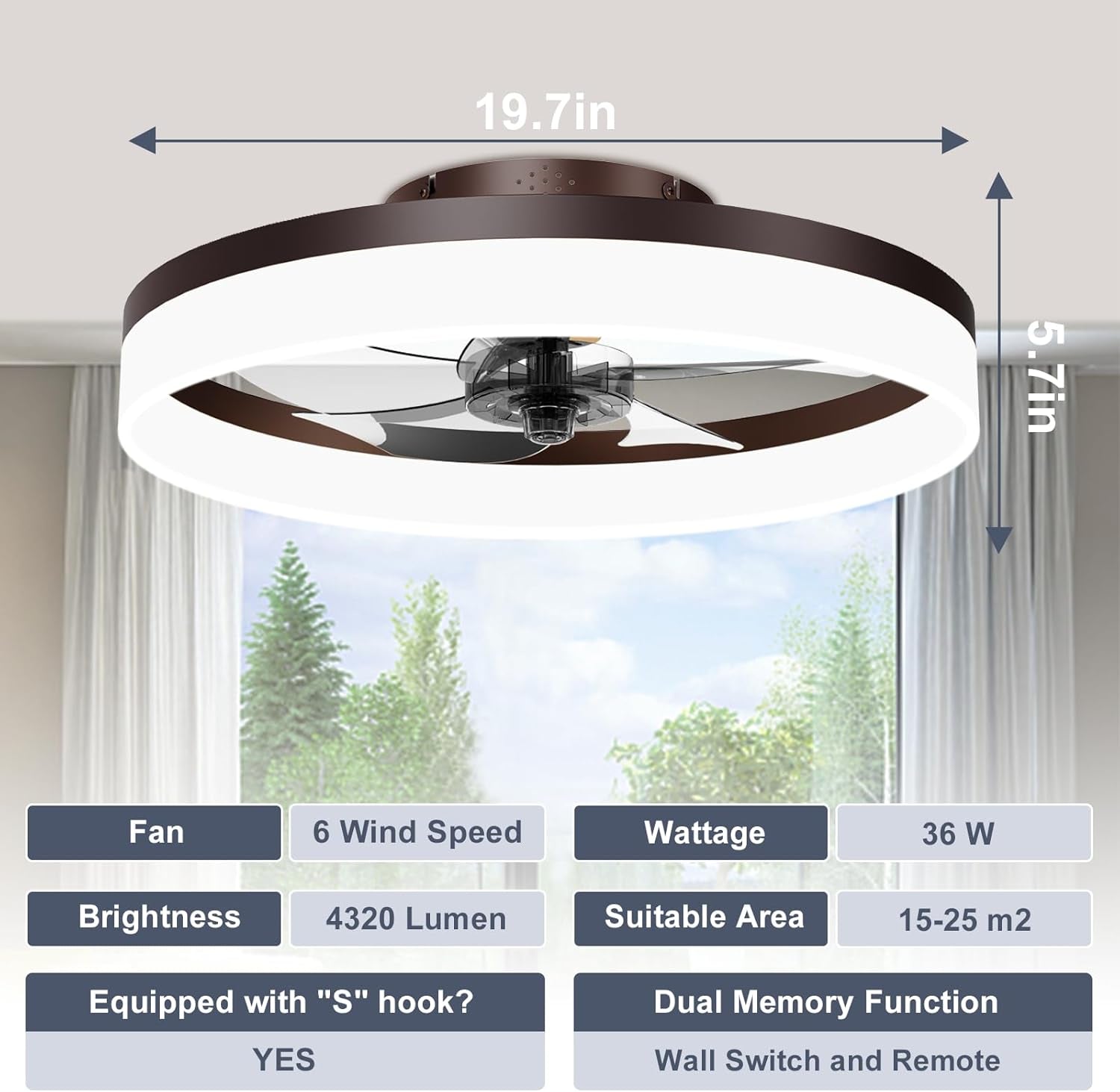 - High Brightness: With 4320LM, 310 LEDs, and 36W, this fan provides excellent illumination for spaces ranging from 15-25 m².