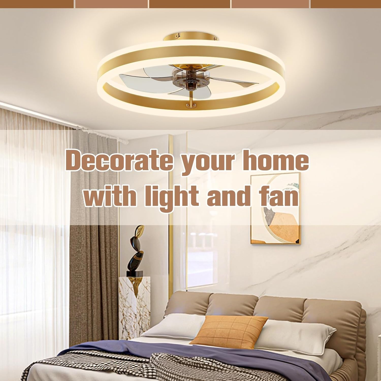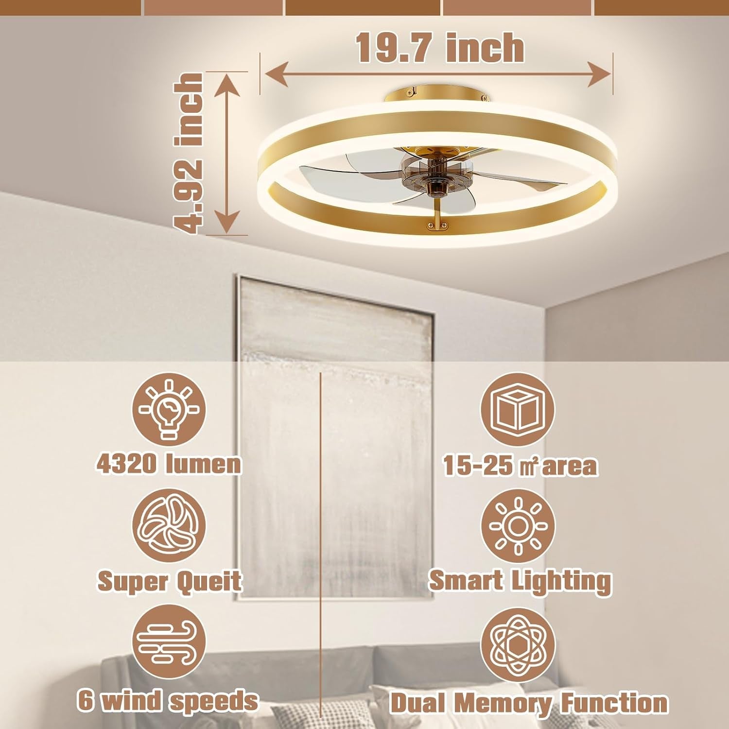 Low Profile Ceiling Fans with Lights and Remote, 19.7In Flush Mount