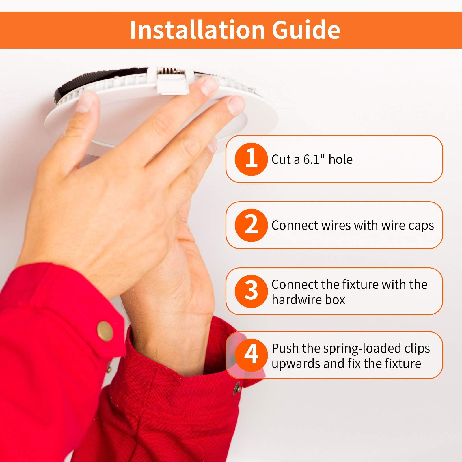 - 5CCT Selectable: Still worried about how to choose the right color temperature for your living room/ kitchen/bathroom /bedroom/garage/warehouse. Then our 5CCT (2700K/3000K//3500K/4000K/5000K) canless led recessed light can meet your requirements. Choose the color you need by switch the button on junction box.
