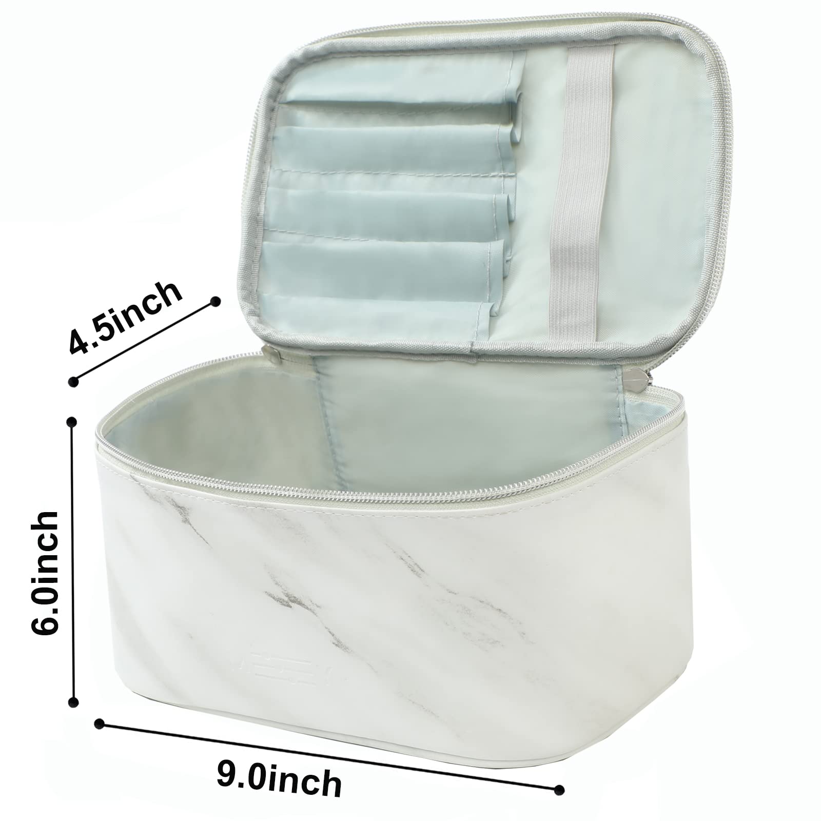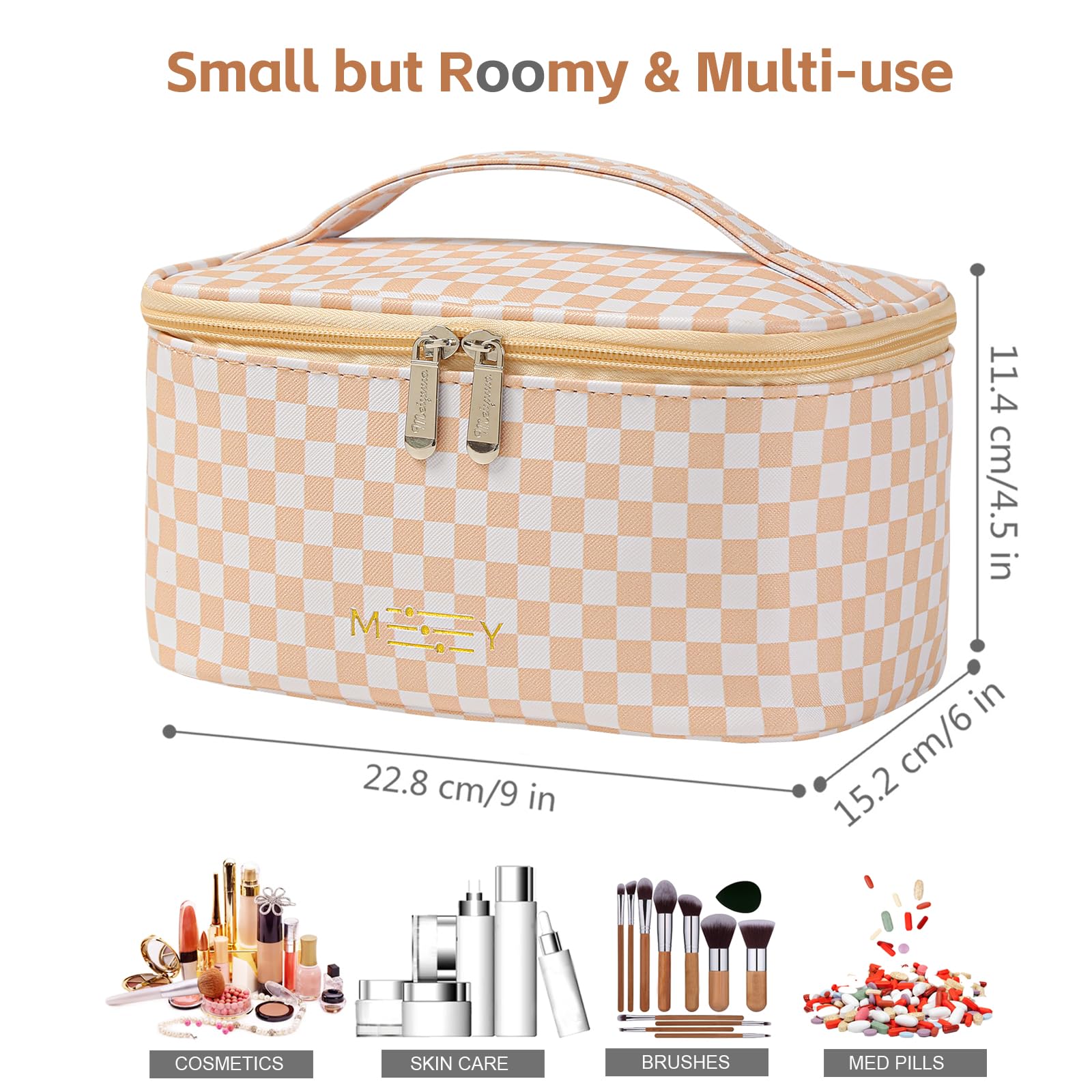 - Medium Size - 9x6x4.5 inches, good size roomy to fit in the corner of your suit case or luggage when traveling, small and smart, decent size without any bulkiness. Spacious enough for all your purse essentials, make up kit, meds and diabetic supplies,medications, lotion, tweezers, pony tails,hair brush skincare products...