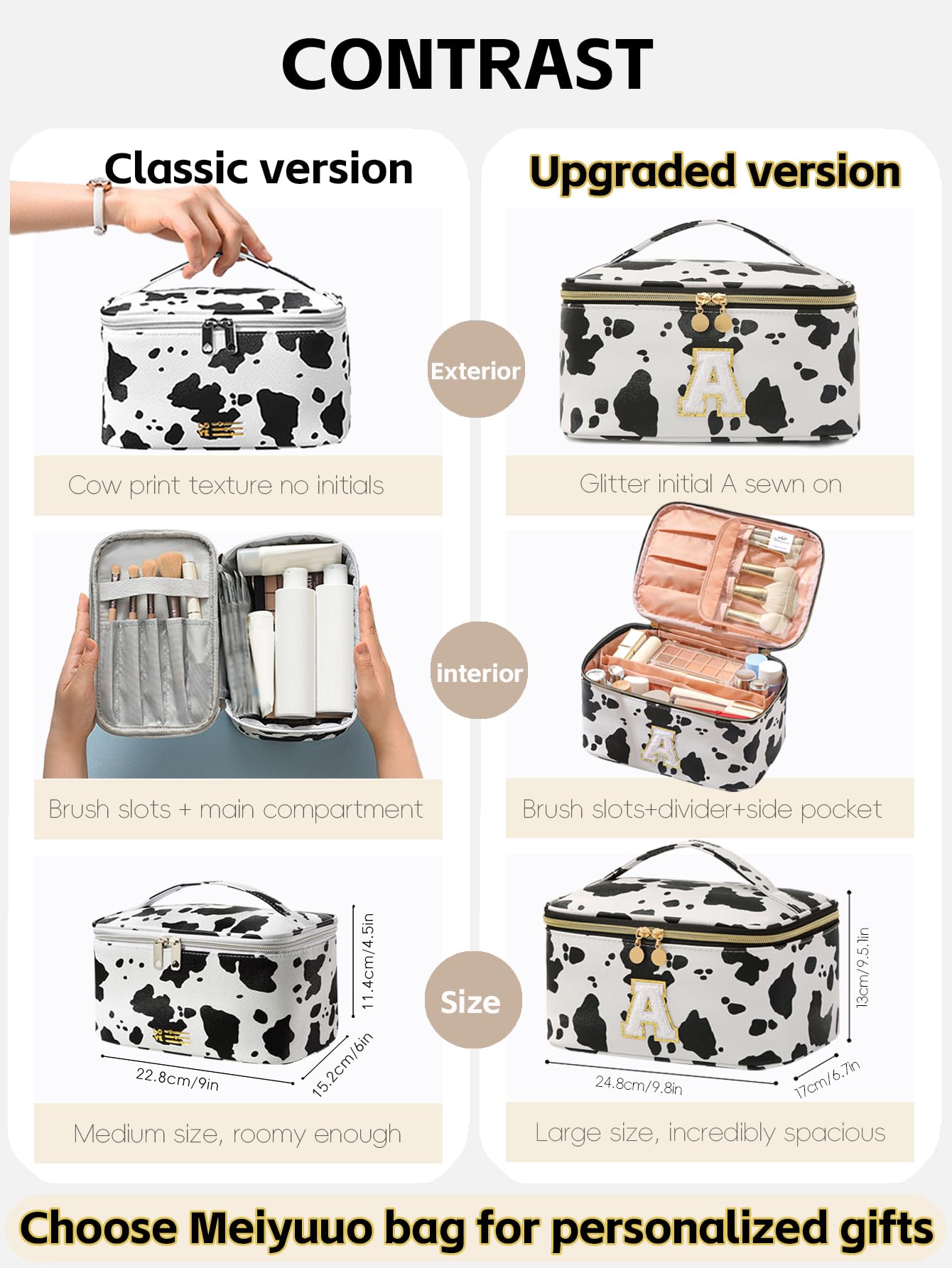 Meiyuuo Cute Makeup Bag Small Cosmetic Bags for Women Girls Gift for Teens Medium Pouch for Purse Essentials Toiletry Zip Pouch PU Waterproof Organizer Case (Cow Print)
