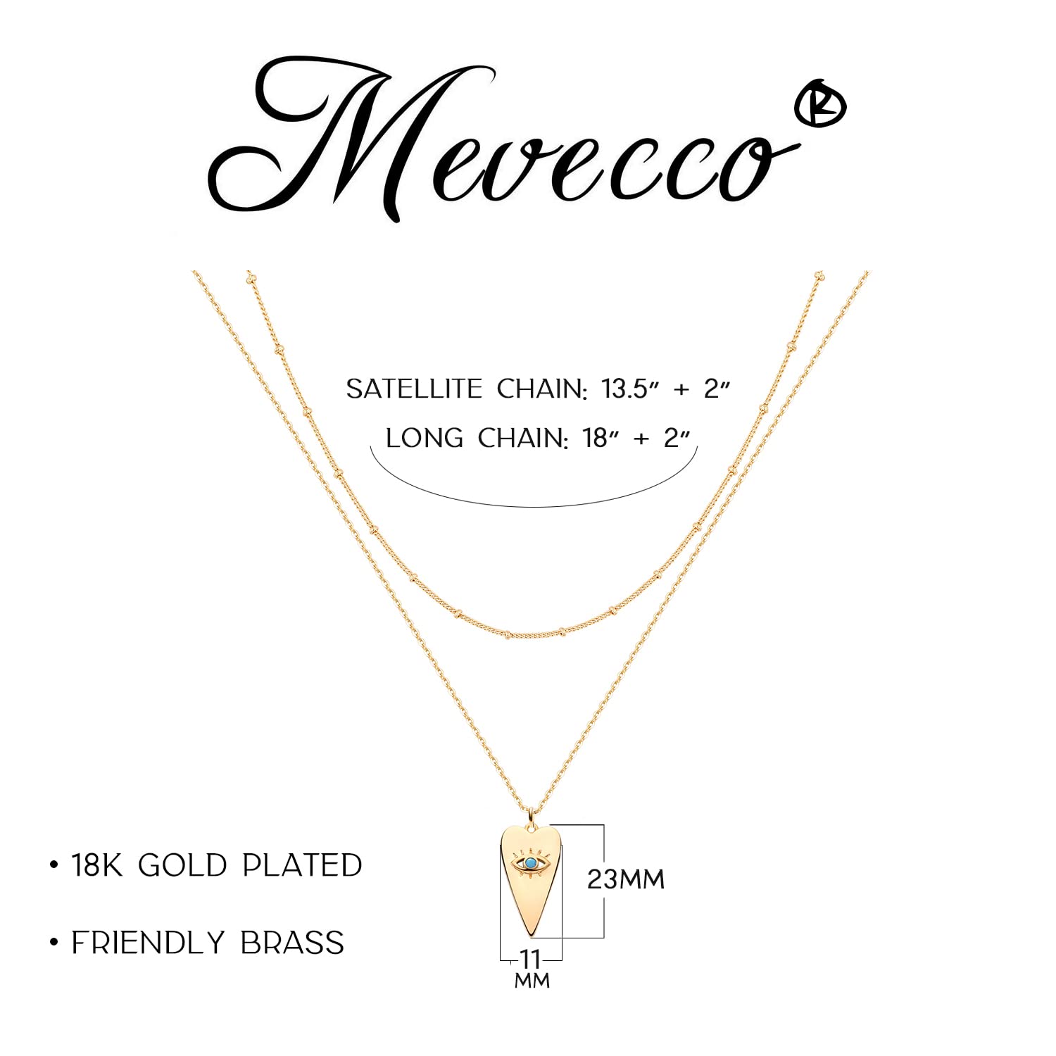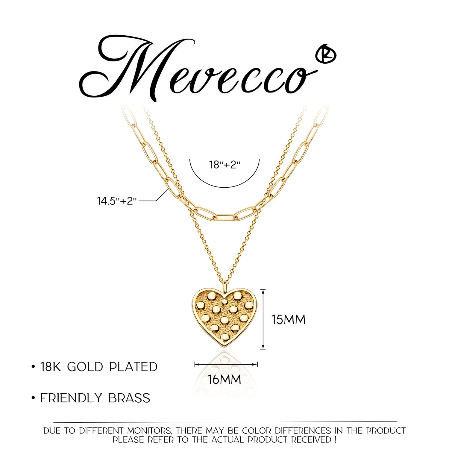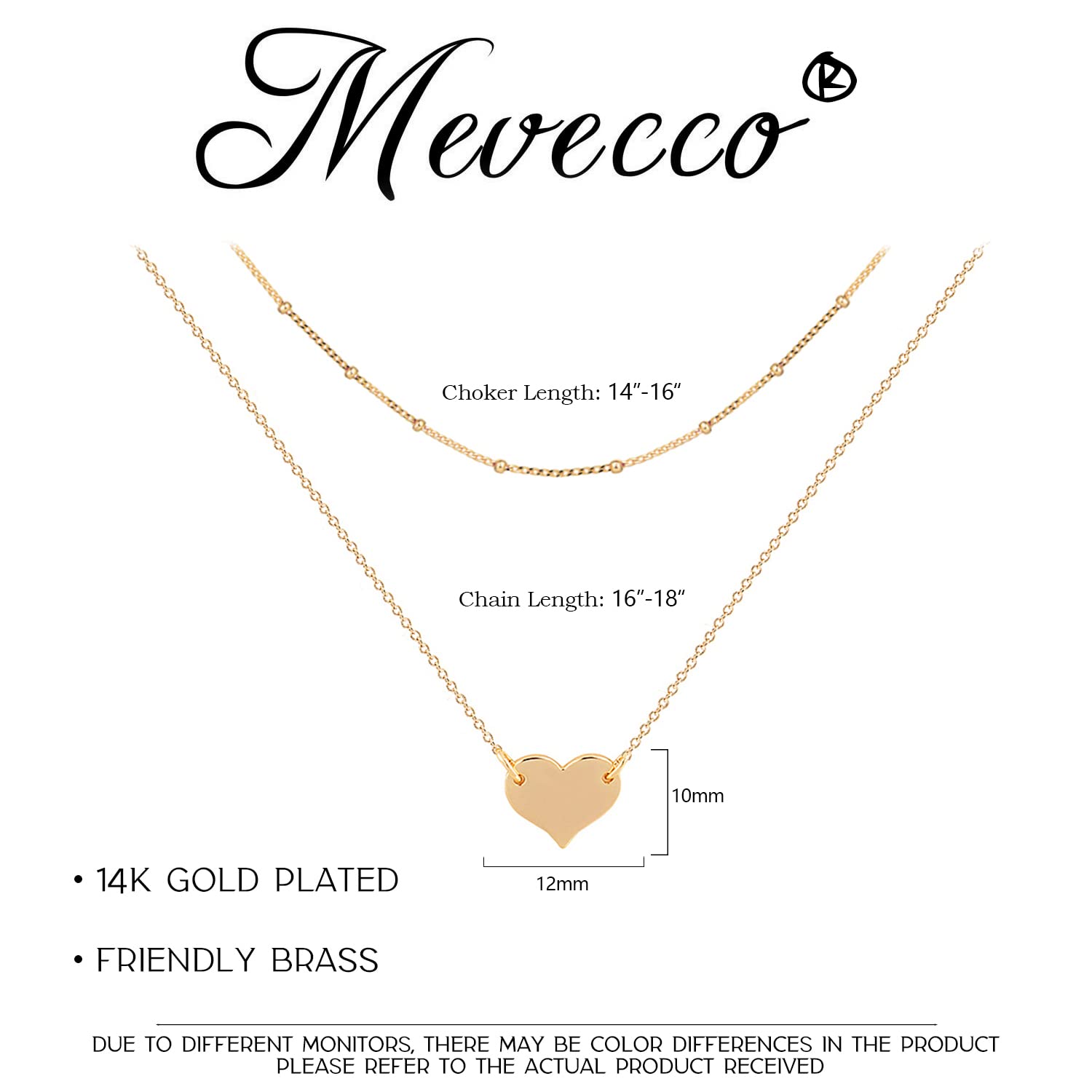 MEVECCO Layered Heart Necklace Pendant Handmade 18k Gold Plated Dainty Gold Choker Arrow Bar Layering Long Necklace for Women