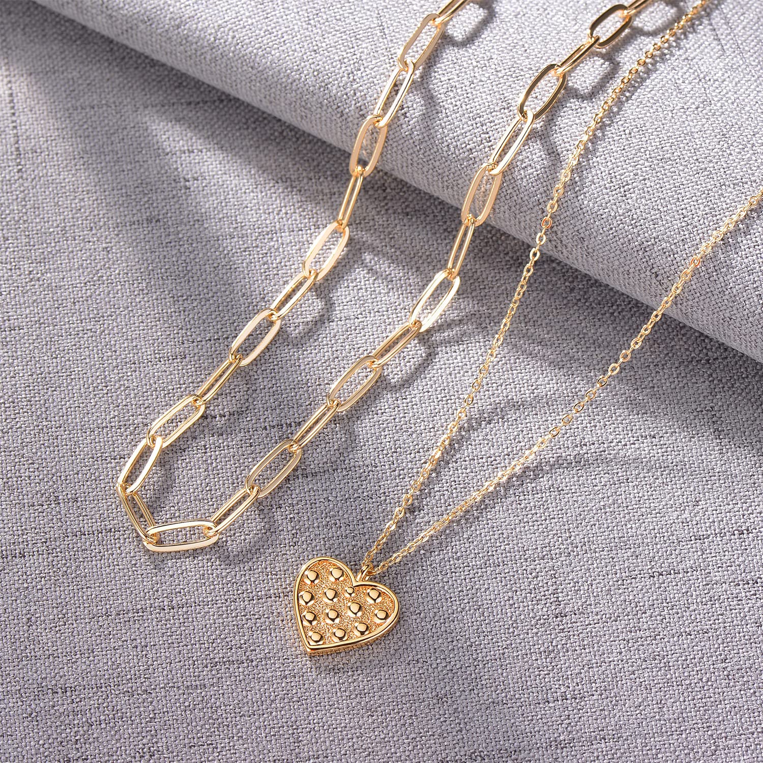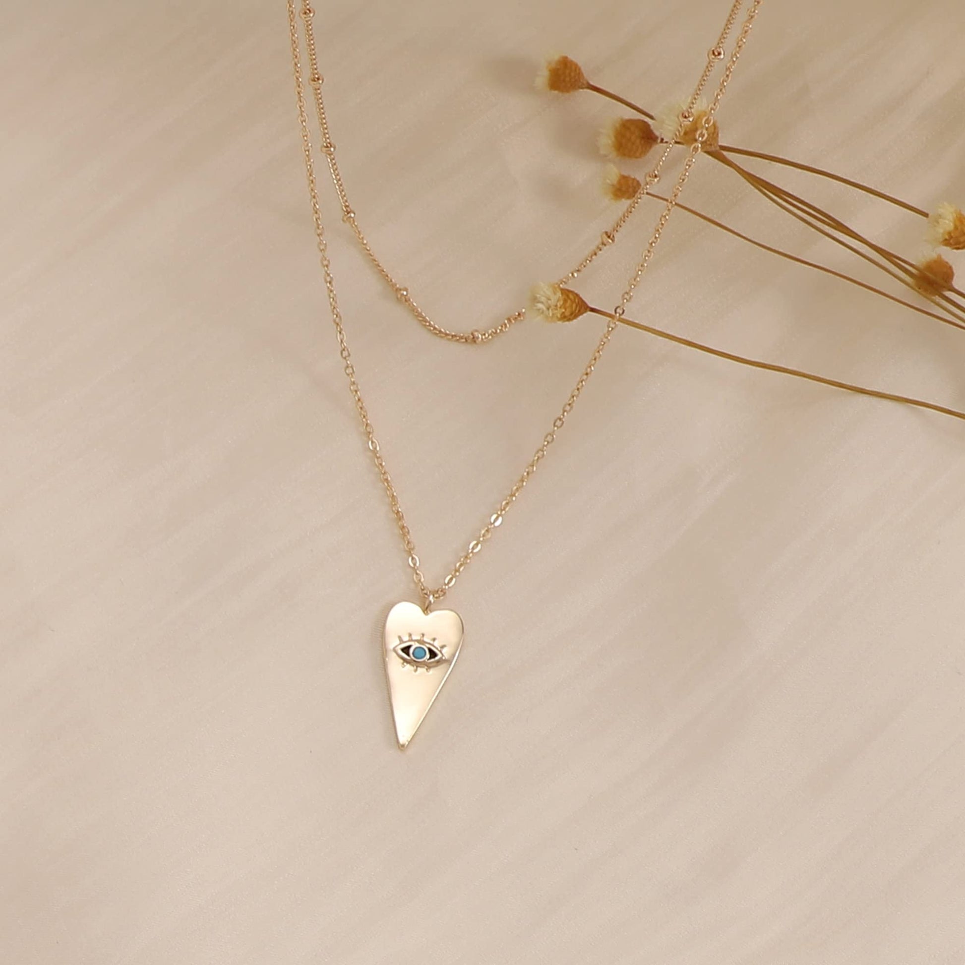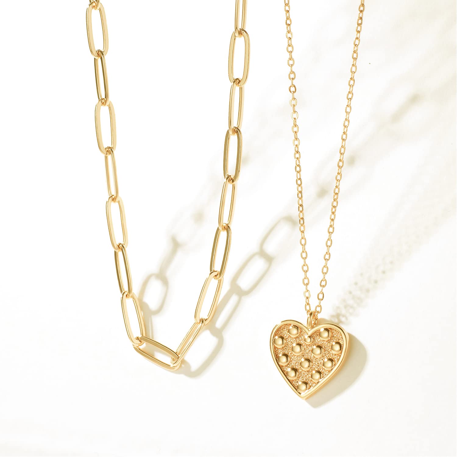 MEVECCO Layered Heart Necklace Pendant Handmade 18k Gold Plated Dainty Gold Choker Arrow Bar Layering Long Necklace for Women