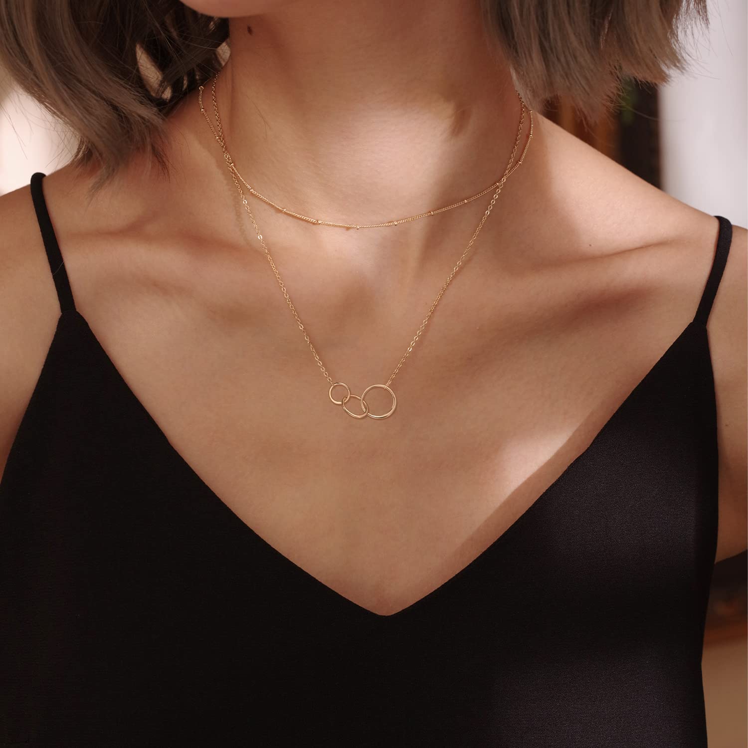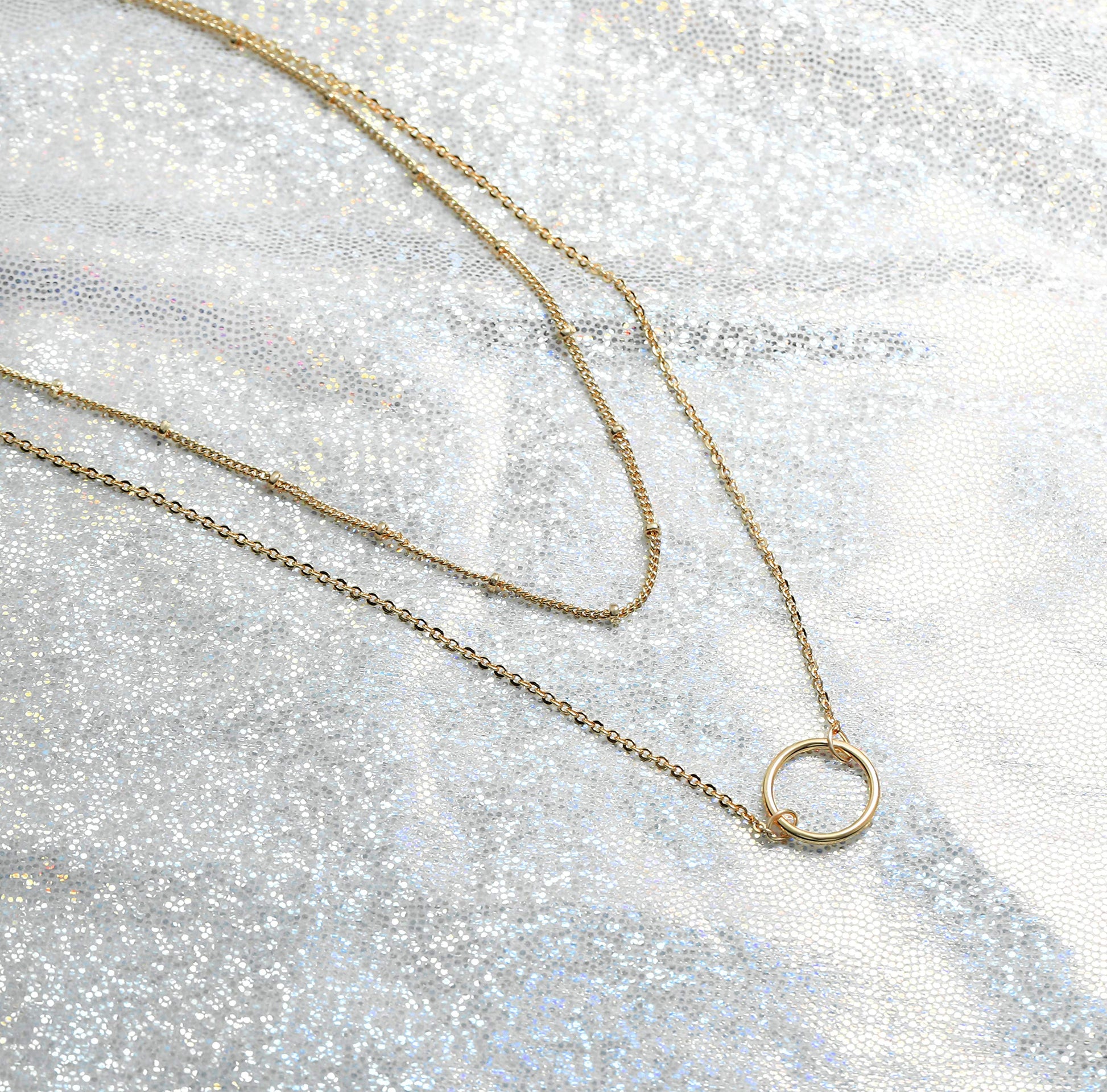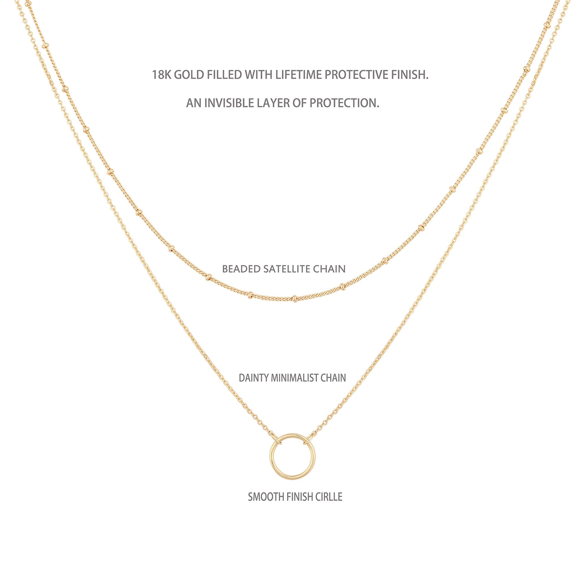 - Material: Our gold link circle layered necklace crafted in 18K gold plated, heat and pressure bonded to a high-quality brass core; being absolutely stunning, Handcrafted for everyday wear