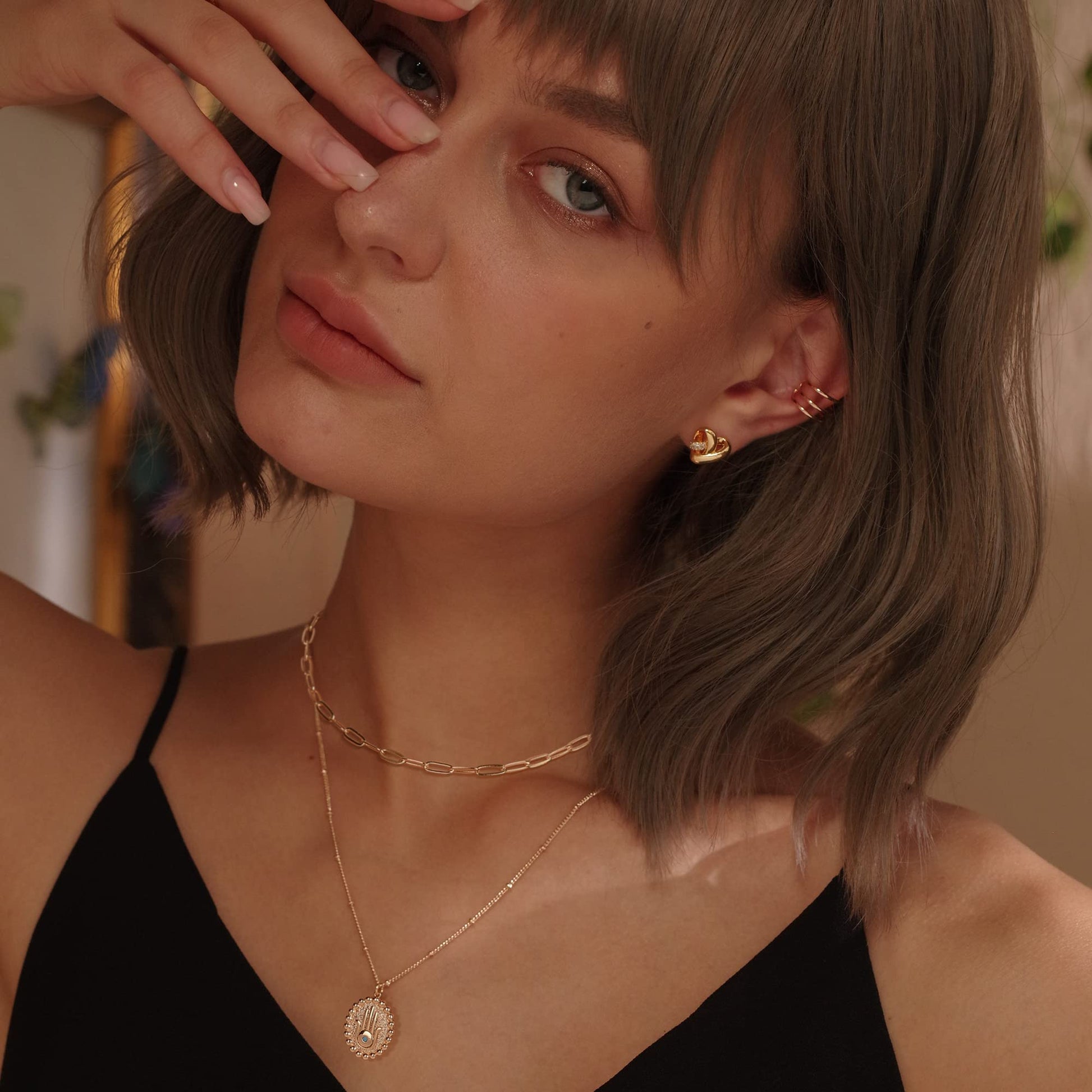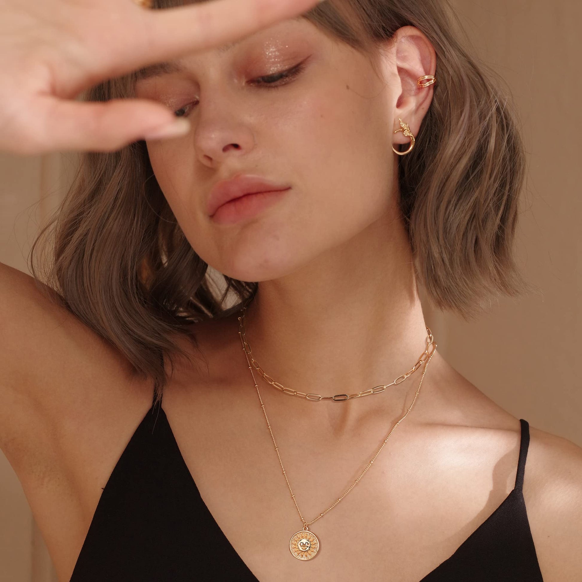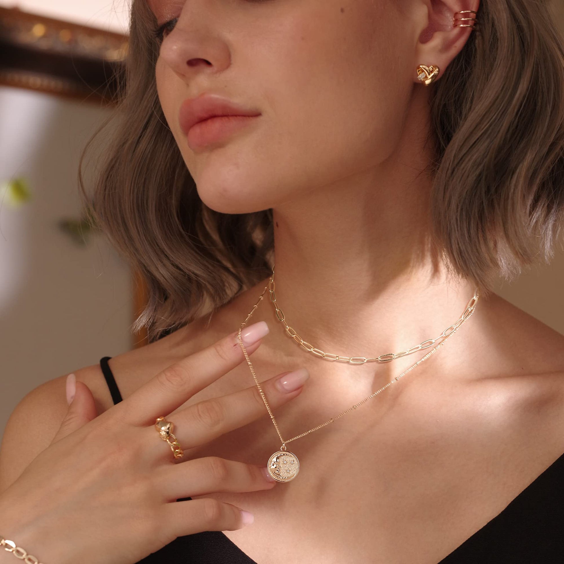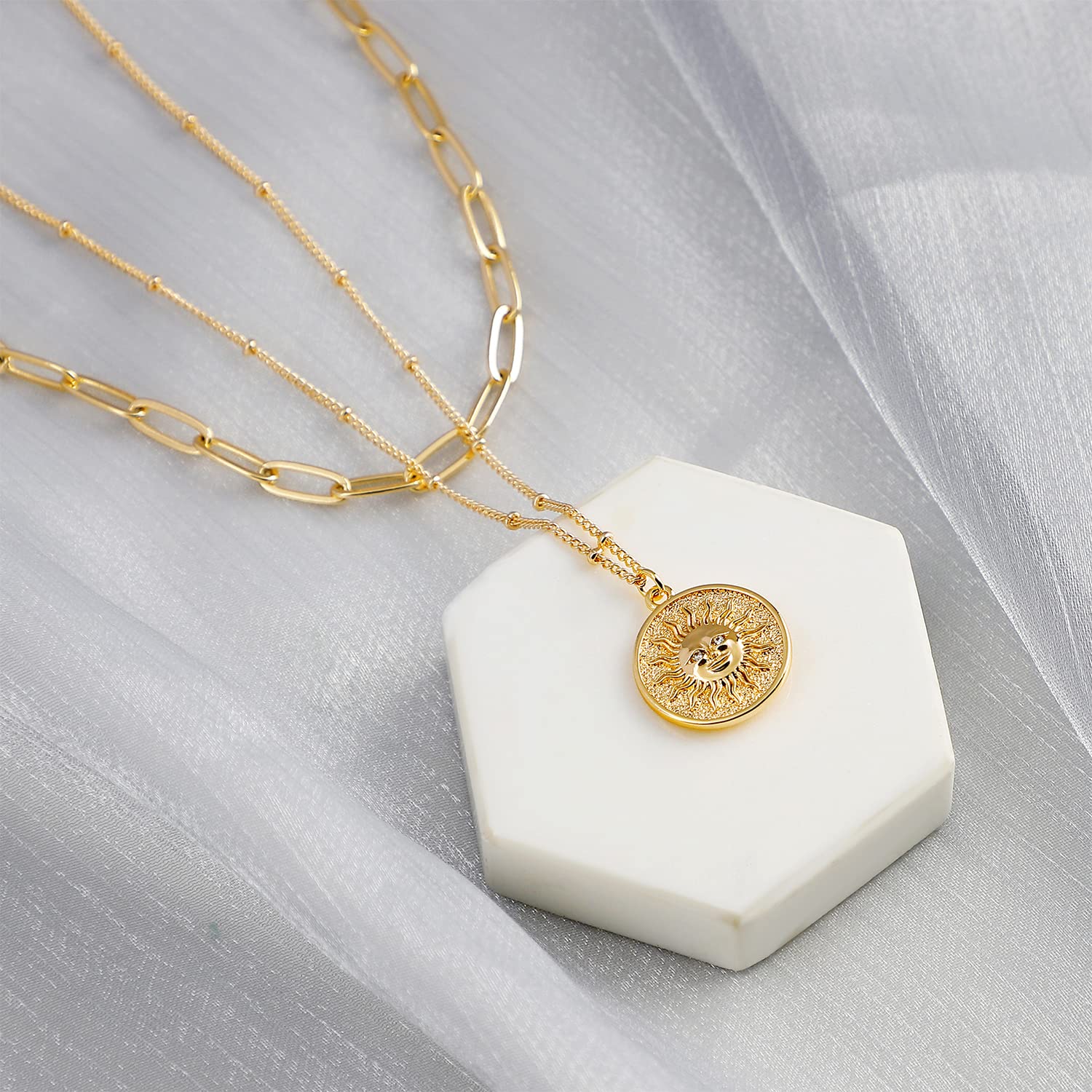 - Material: Our gold link circle layered necklace crafted in 18K gold plated, heat and pressure bonded to a high-quality brass core; being absolutely stunning, Handcrafted for everyday wear
