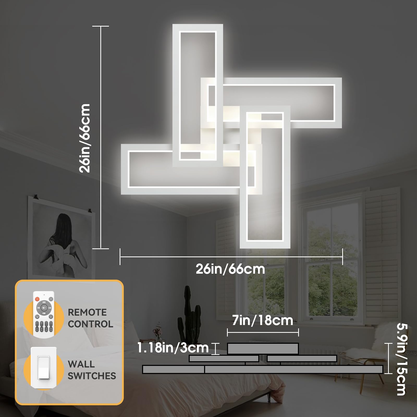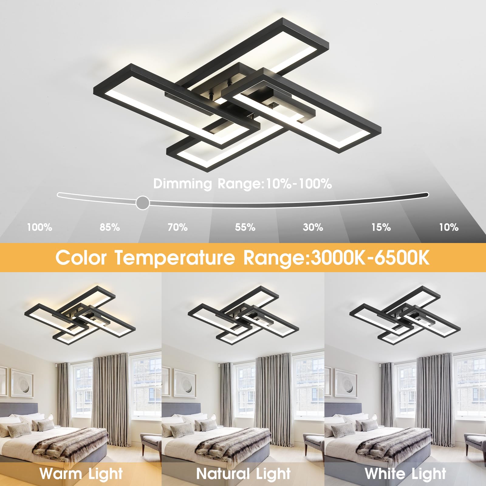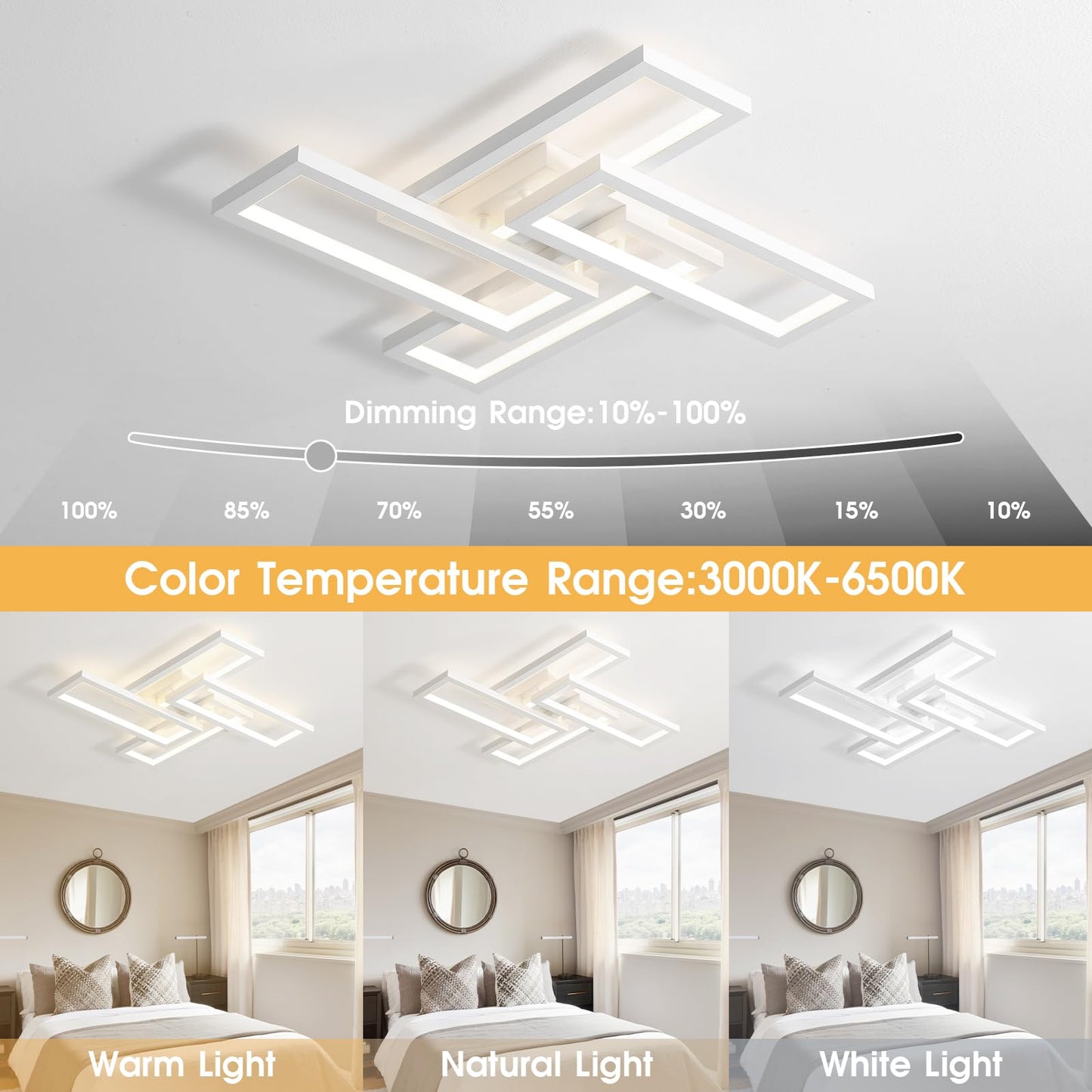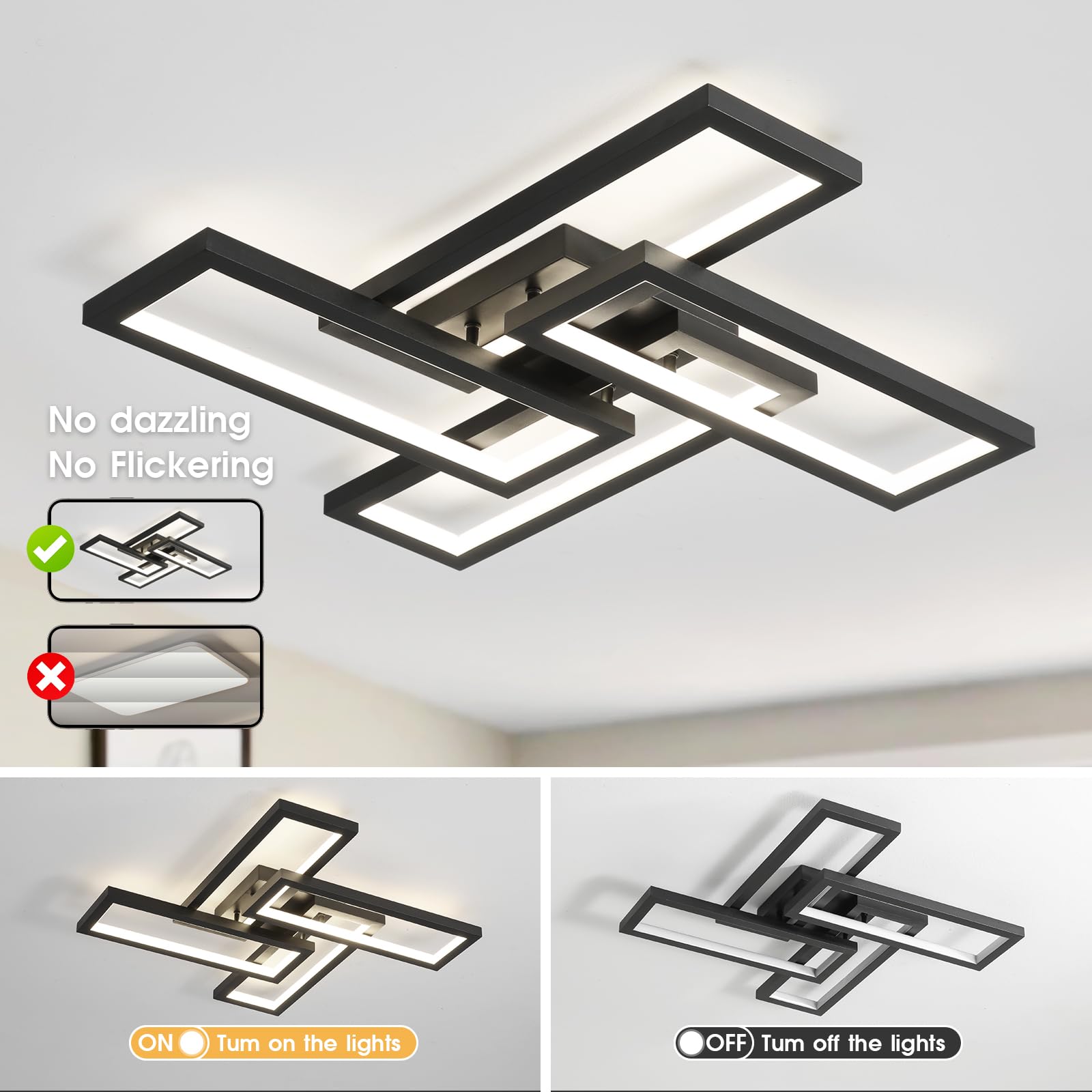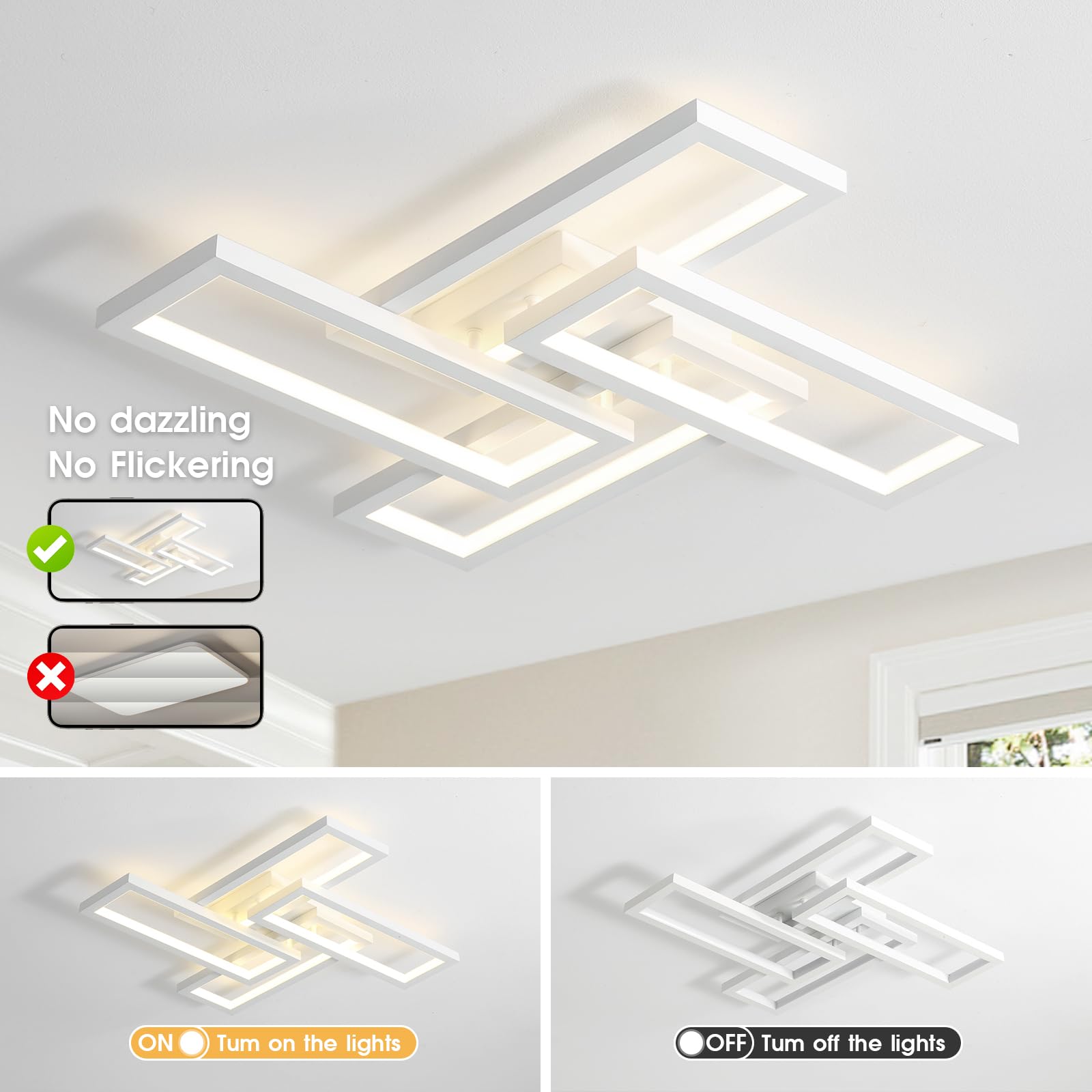 - 😊[Modern Ceiling Light] Simple square design, elegant and fashionable appearance, can fit well into different interior decorating styles, bring you elegant light effect. Better performance and effect compared with traditional ceiling lights