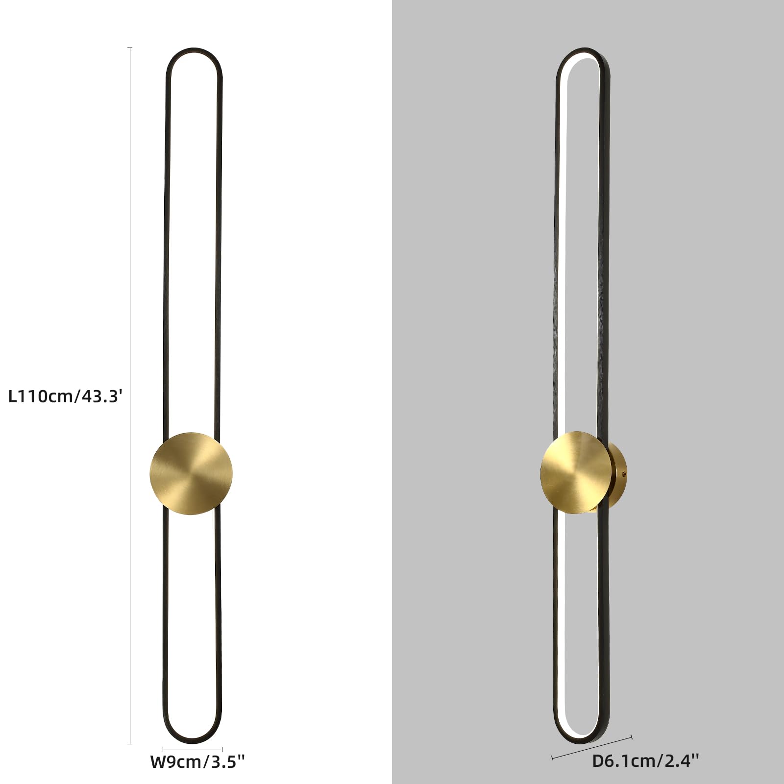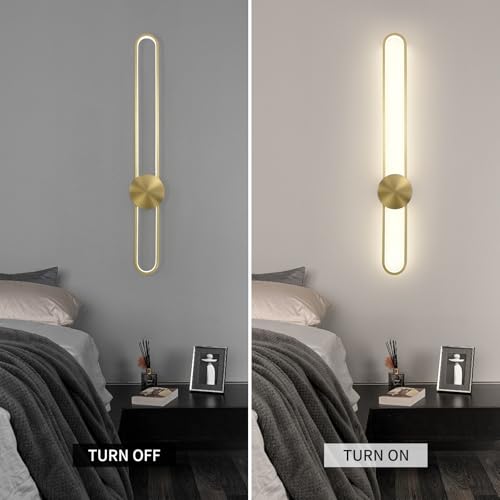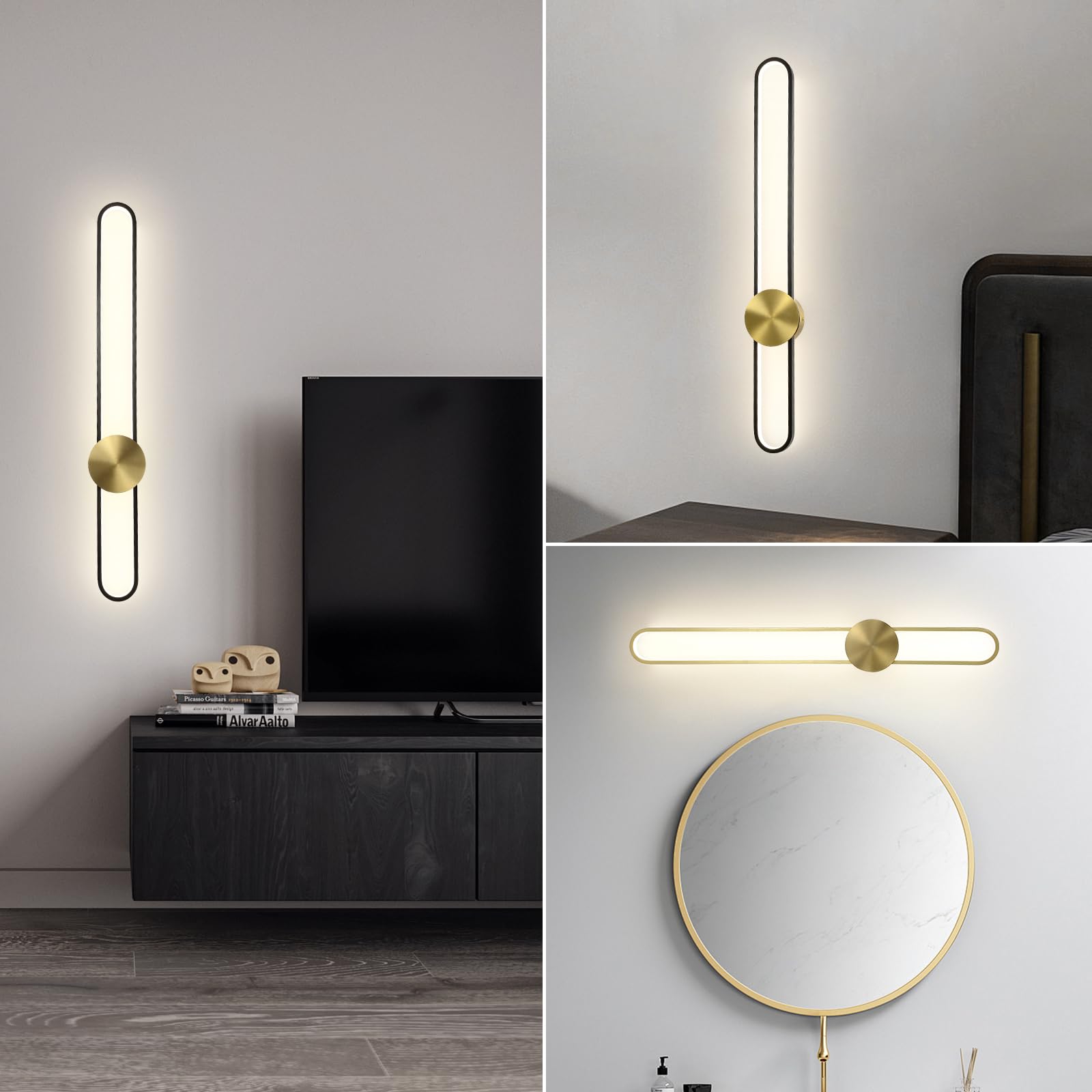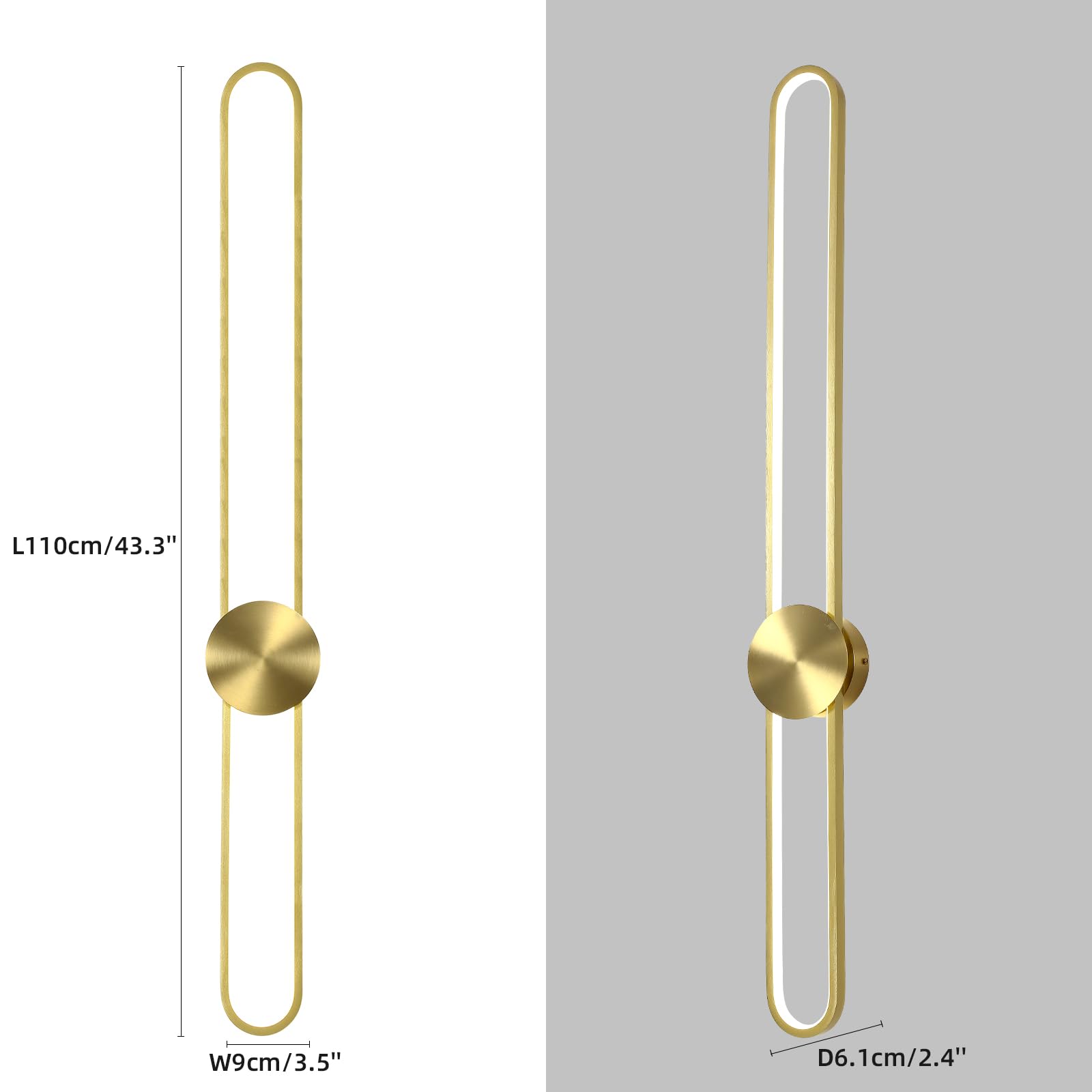- Sleek Contemporary Design: JAYMP Modern wall sconce crafted with chic geometric lines and premium brushed & electroplated copper color finish, this dimmable wall lamp enhances the texture of the space. Choose from brushed black/gold to complement modern interiors.Dimensions is 43.3× 5.1 inch.