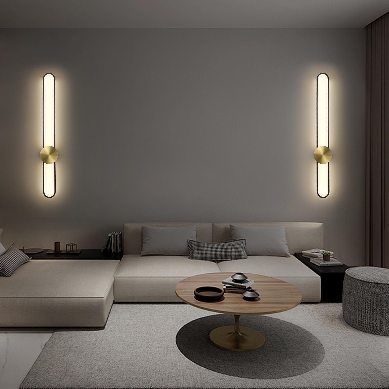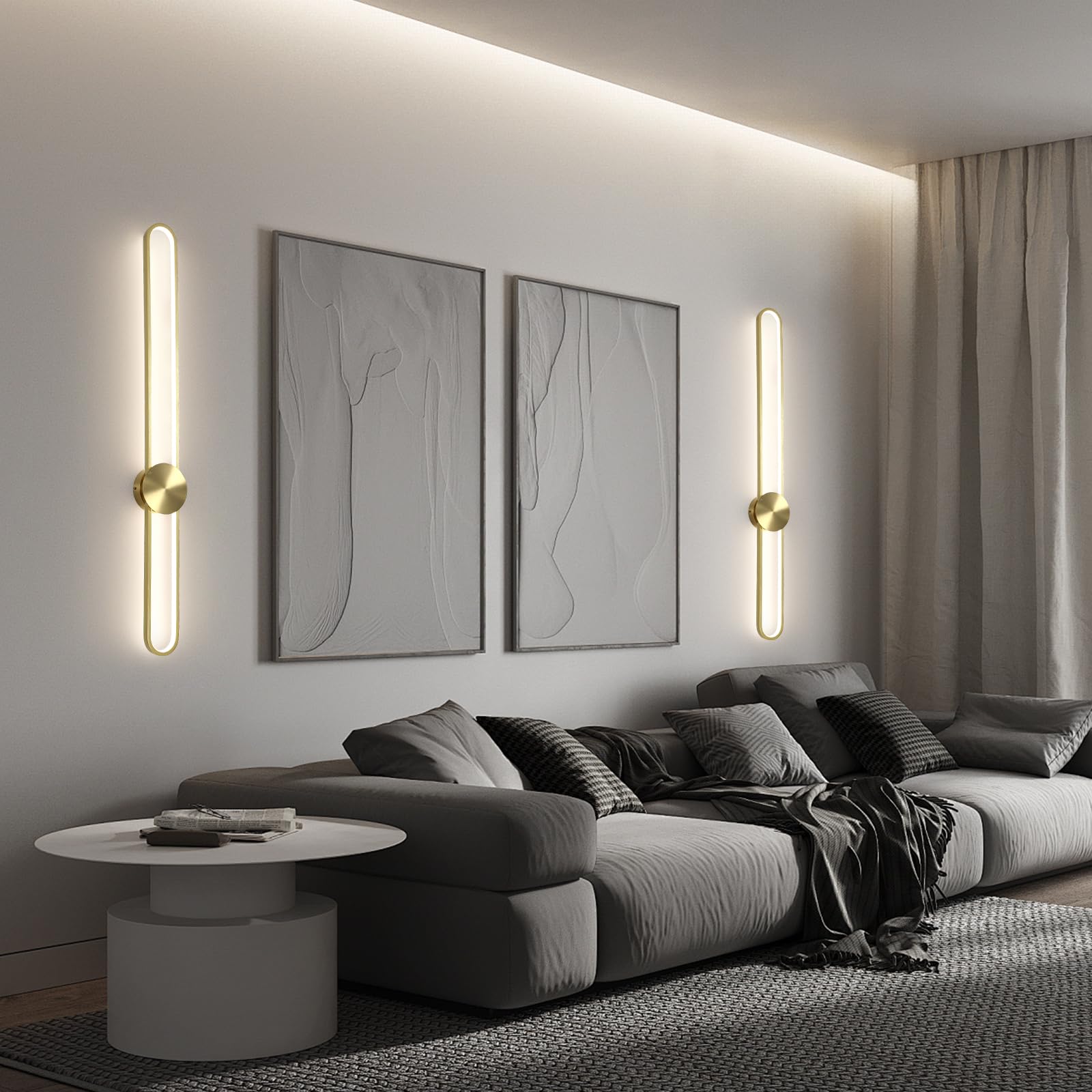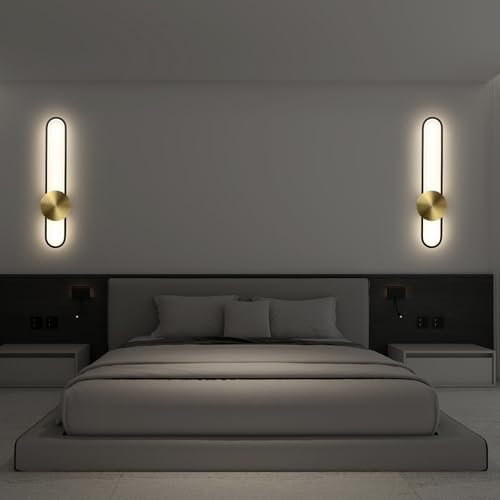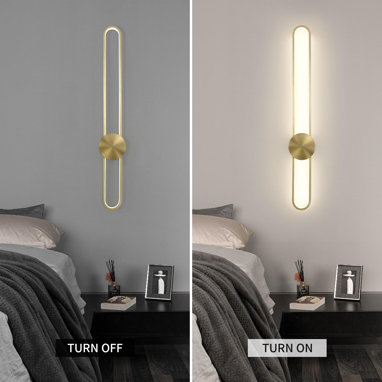 - Sleek Contemporary Design: JAYMP Modern wall sconce crafted with chic geometric lines and premium brushed & electroplated copper color finish, this dimmable wall lamp enhances the texture of the space. Choose from brushed black/gold to complement modern interiors.Dimensions is 43.3× 5.1 inch.