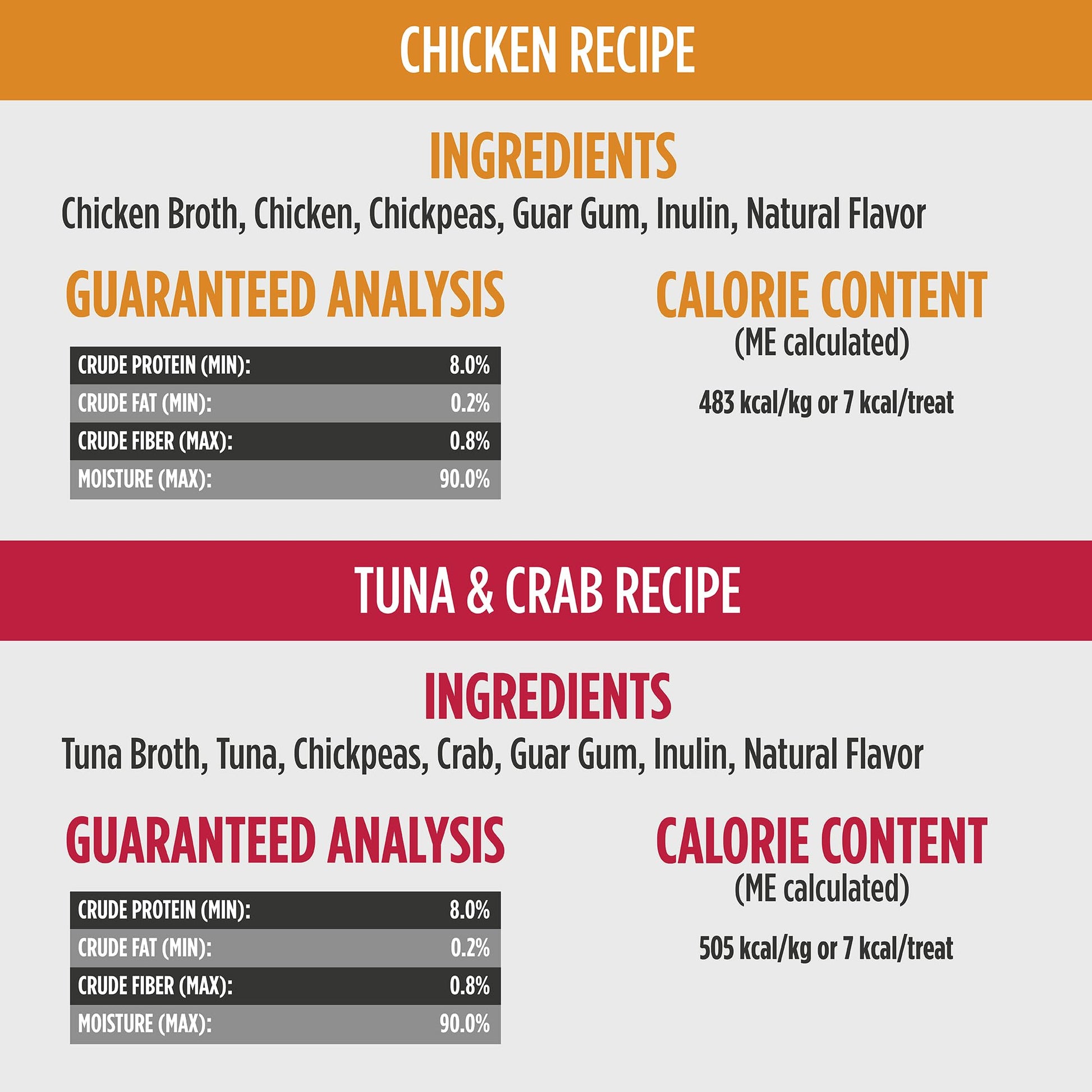 - Premium cat treats with a high-moisture content to promote your feline friend's hydration throughout the day. Variety pack of 40, 0.5 Oz each.