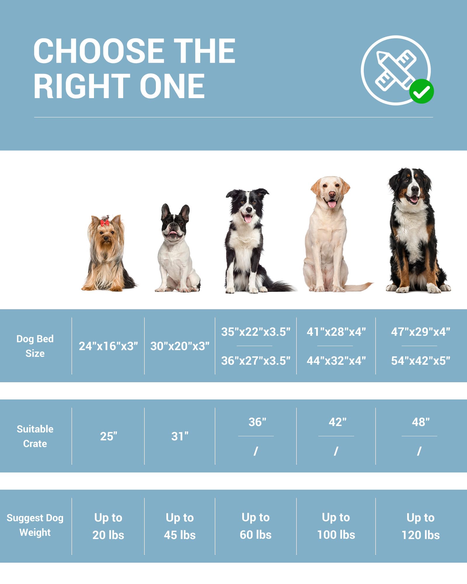 - Versatile Sizing for Every Need: Available in two sizes – one designed to fit standard dog crates, offering a snug fit for crate use(24/30/35/41/47''). Another extra-wide size for maximum comfort outside the crate(36/44/54''). Choose the perfect fit for your furry friend’s lifestyle!