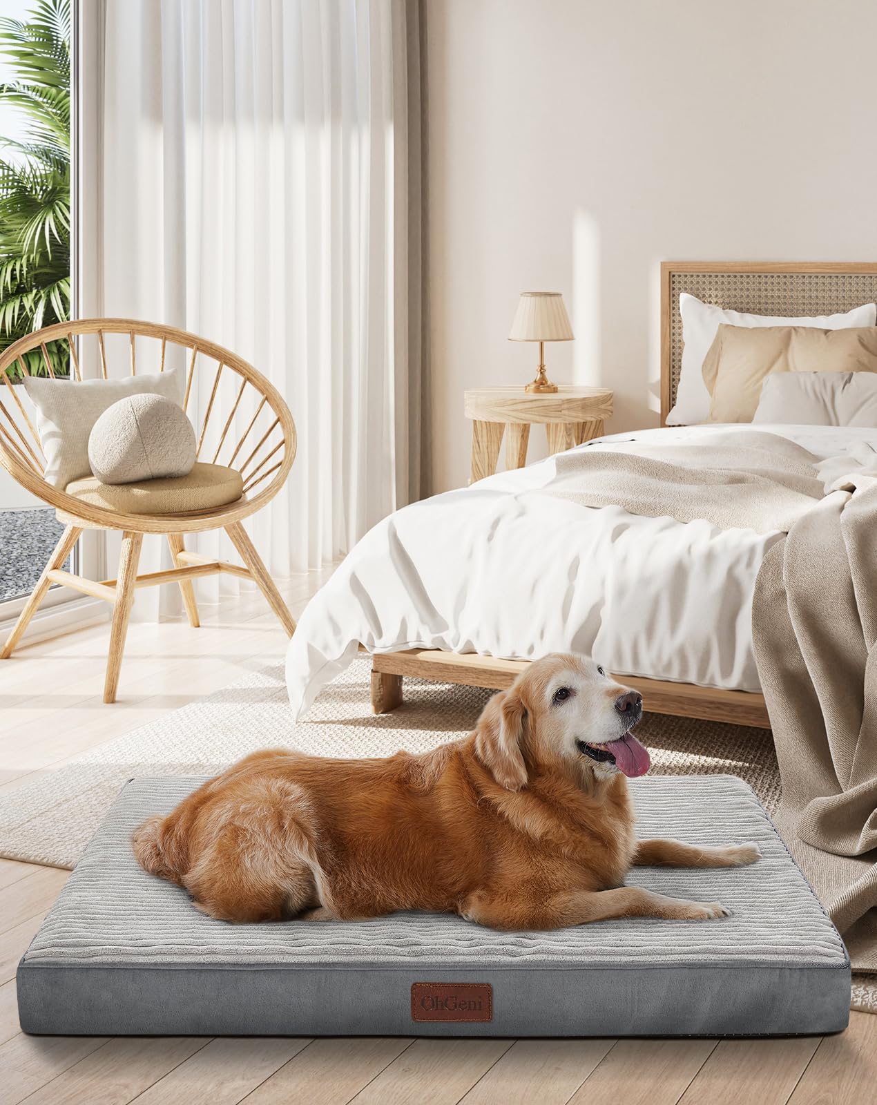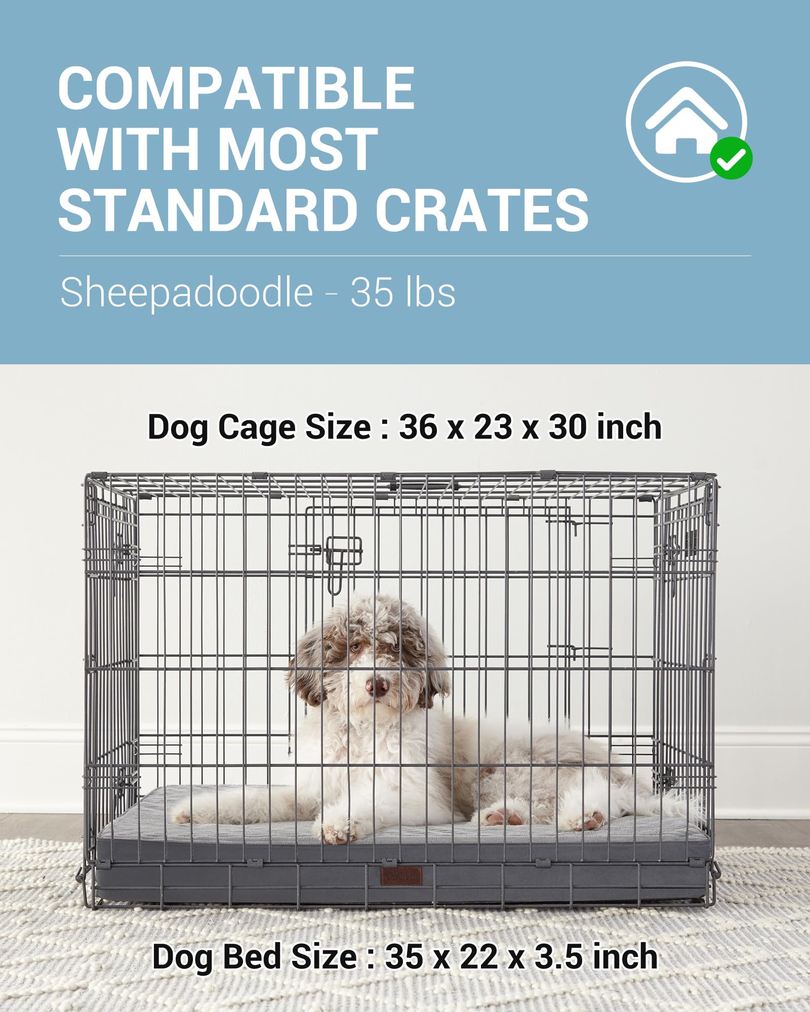 OhGeni 35 Inch Orthopedic Waterproof & Machine Washable Dog Bed for Medium Large Pets, Suitable for Crates, 25D Egg Crate Foam, Non-Slip Bottom & Removable Cover, Invisible Zipper(Gray)