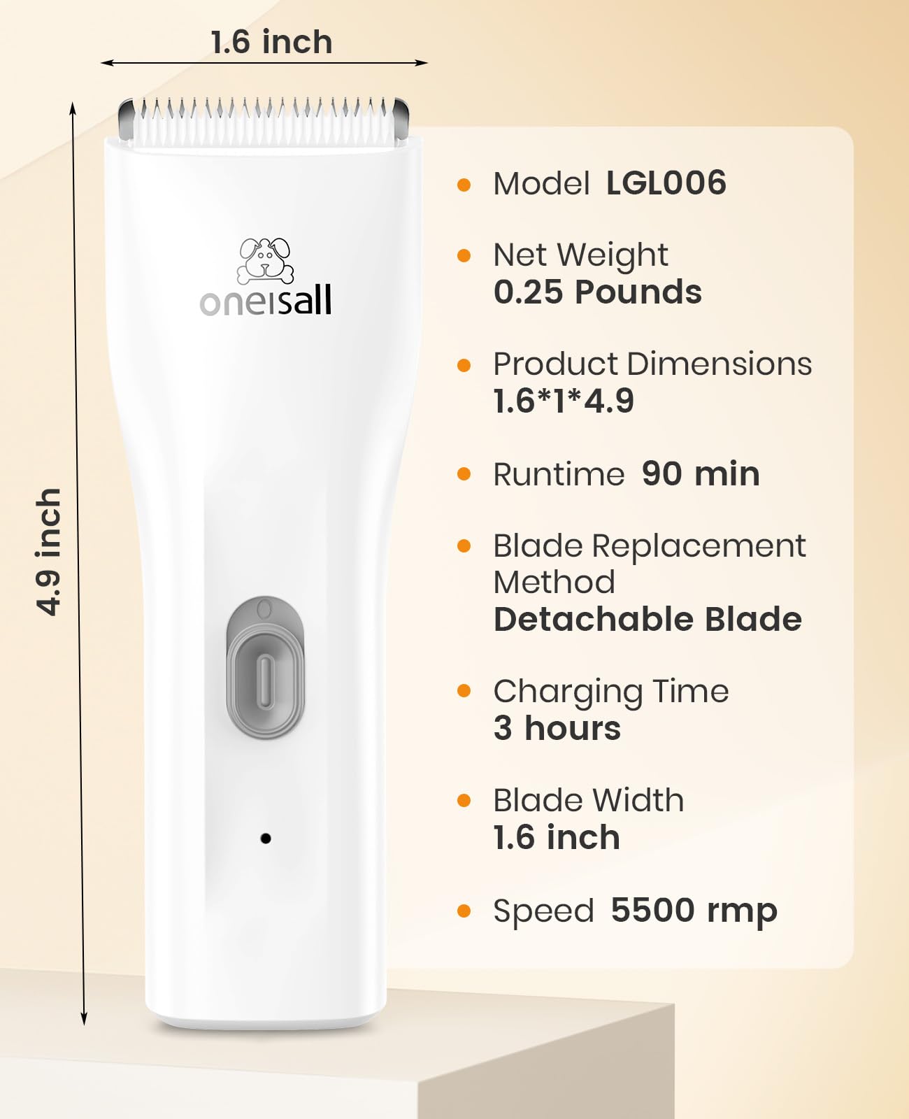 - Trimmed Clean and Fast: Cat hair clippers is the combination of powerful motor plus sharp stainless steel head and safe ceramic head, pet shaver brings a smooth and unhindered grooming experience. Oneisall pet shaver is safe and efficient, with limit comb cuts cleanly without harming your pet. Thanks to its accompanying storage bag, making organization and portability a breeze.