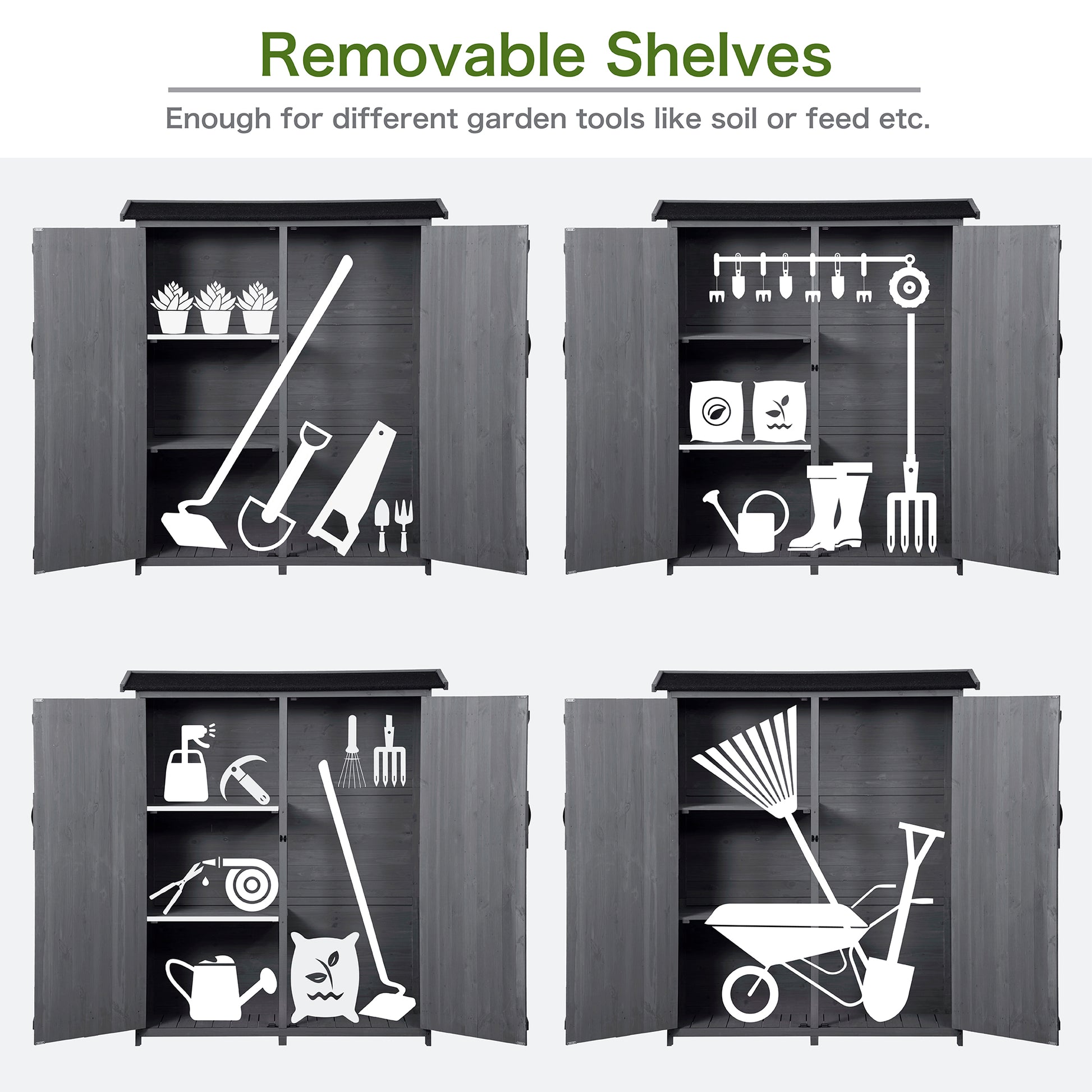 Outdoor 5.3ft Hx4.6ft L Wood Storage Shed Tool Organizer,Garden Shed, Storage Cabinet with Waterproof Asphalt Roof Gray
