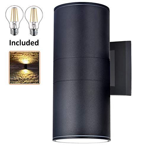 - ✅Up and Down Wall Ligh Lamps Included – 2 pcs of A19 LED filament light bulbs (UL Listed) are included in this front porch light fixtures.the up and down wall lighting design gives a modern style.Oil Rubbed Bronze paint with the exterior light fixture. outdoor lighting illuminate your porch, garage,house and yard.