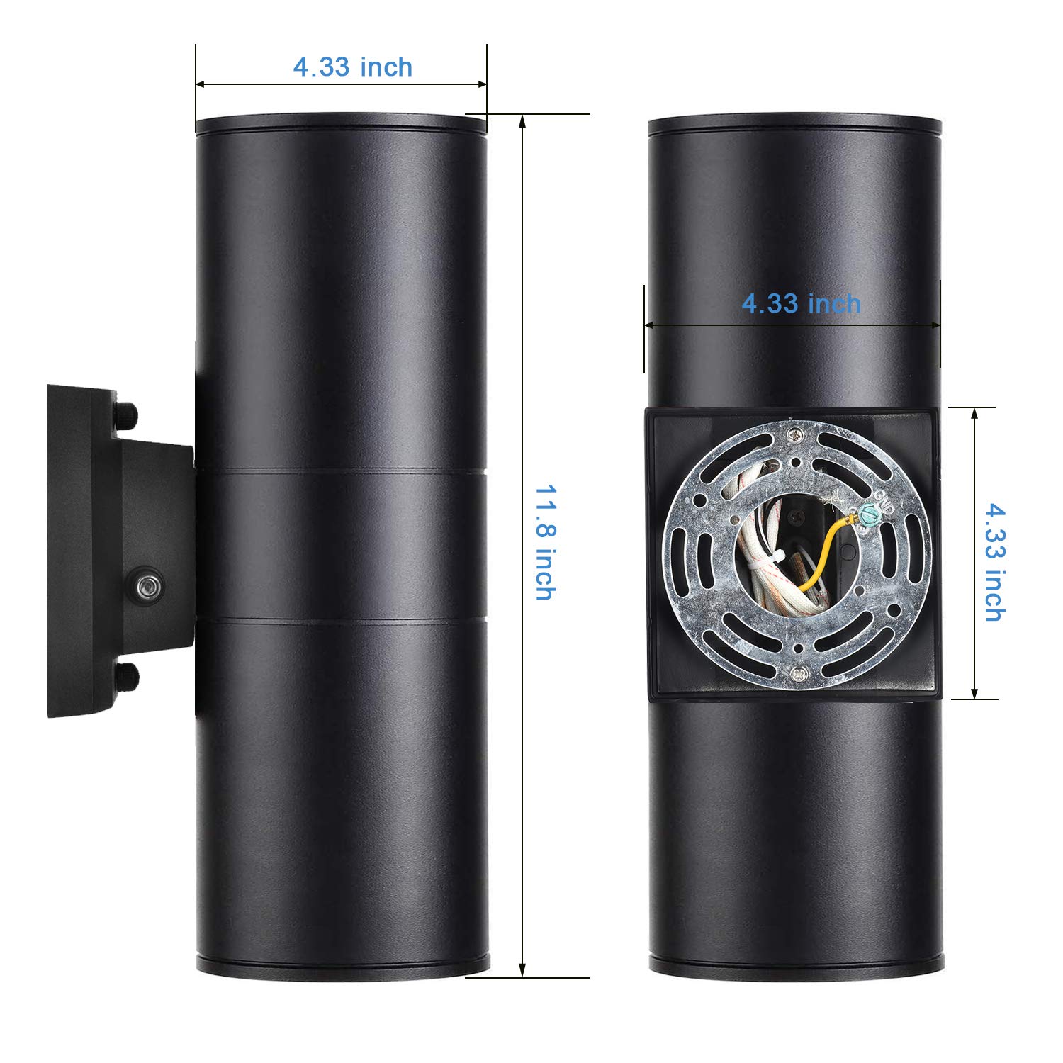 - ✅Easy to Install:This modern exterior wall light fixtures comes with all mounting hardware.just 3 steps to replace the old front door porch light:Attach the mounting plate to the junction box with screws → Connect the wires → Fix the exterior light fixture to the wall mounting plate with nuts. Cylinder outdoor light fixture Dimension: 4"3 x 4''3 x 11.8"(L x W x H)