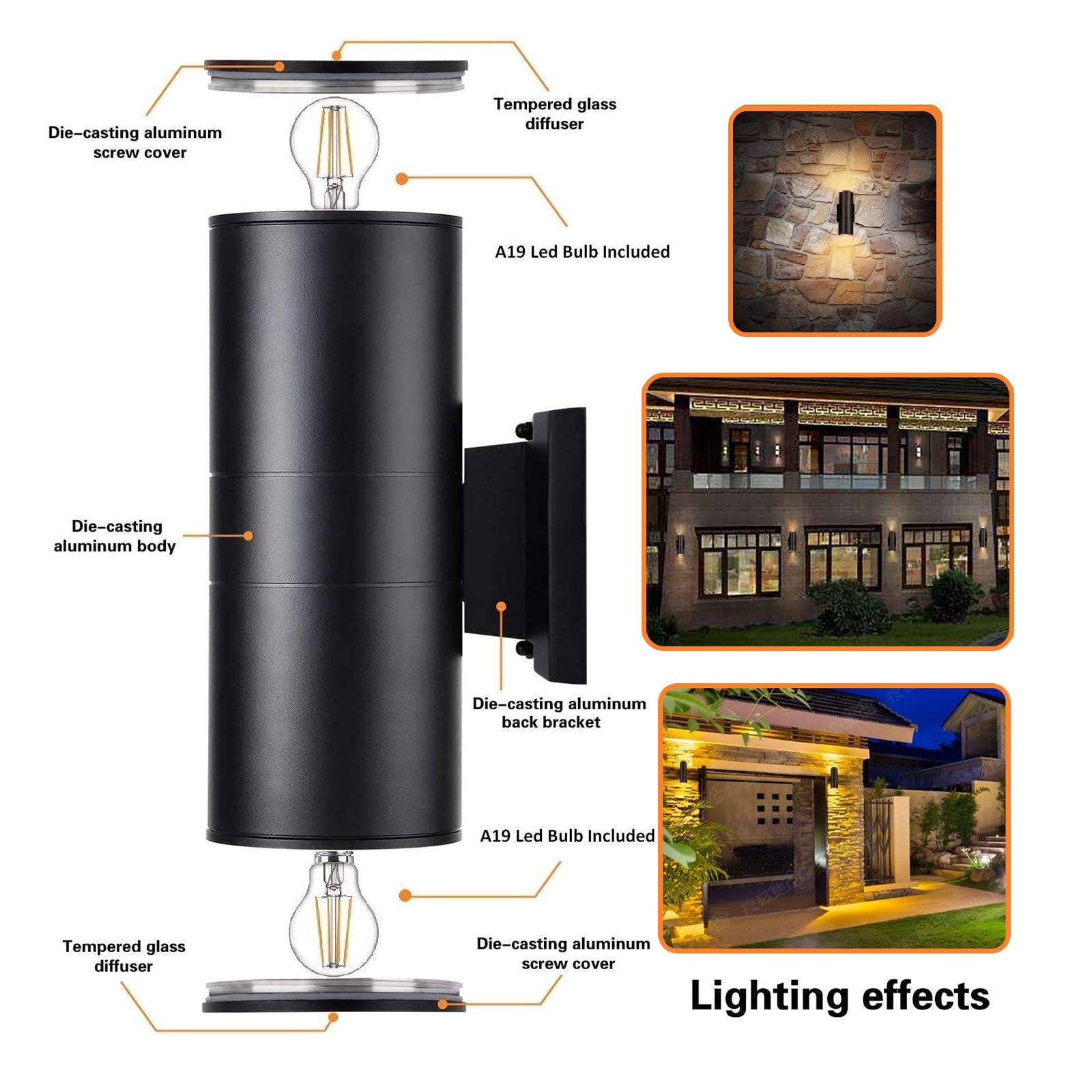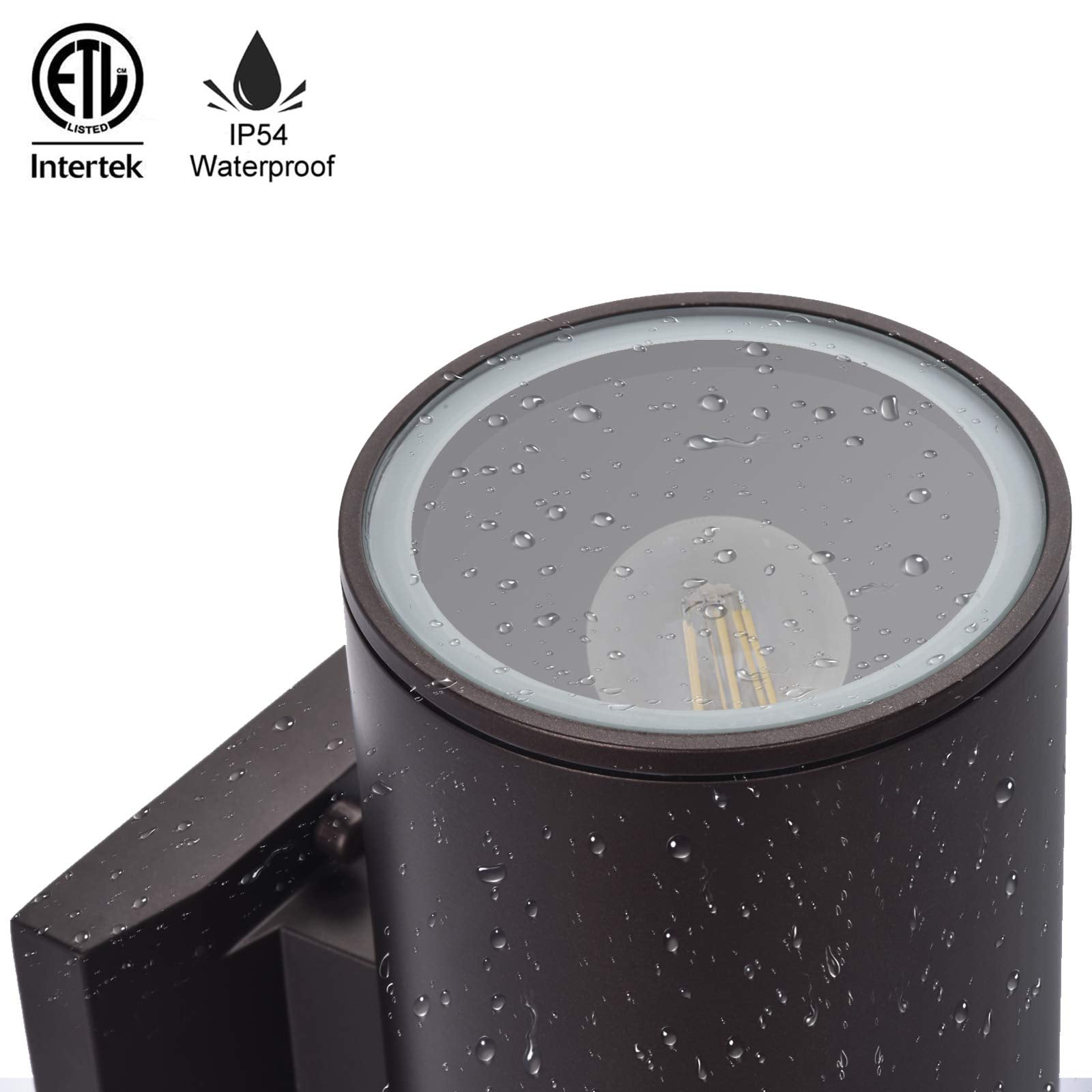 · 2 PCS up and down light bulbs are included in this exterior light fixture, Type of E26 A19 LED filament light bulbs .