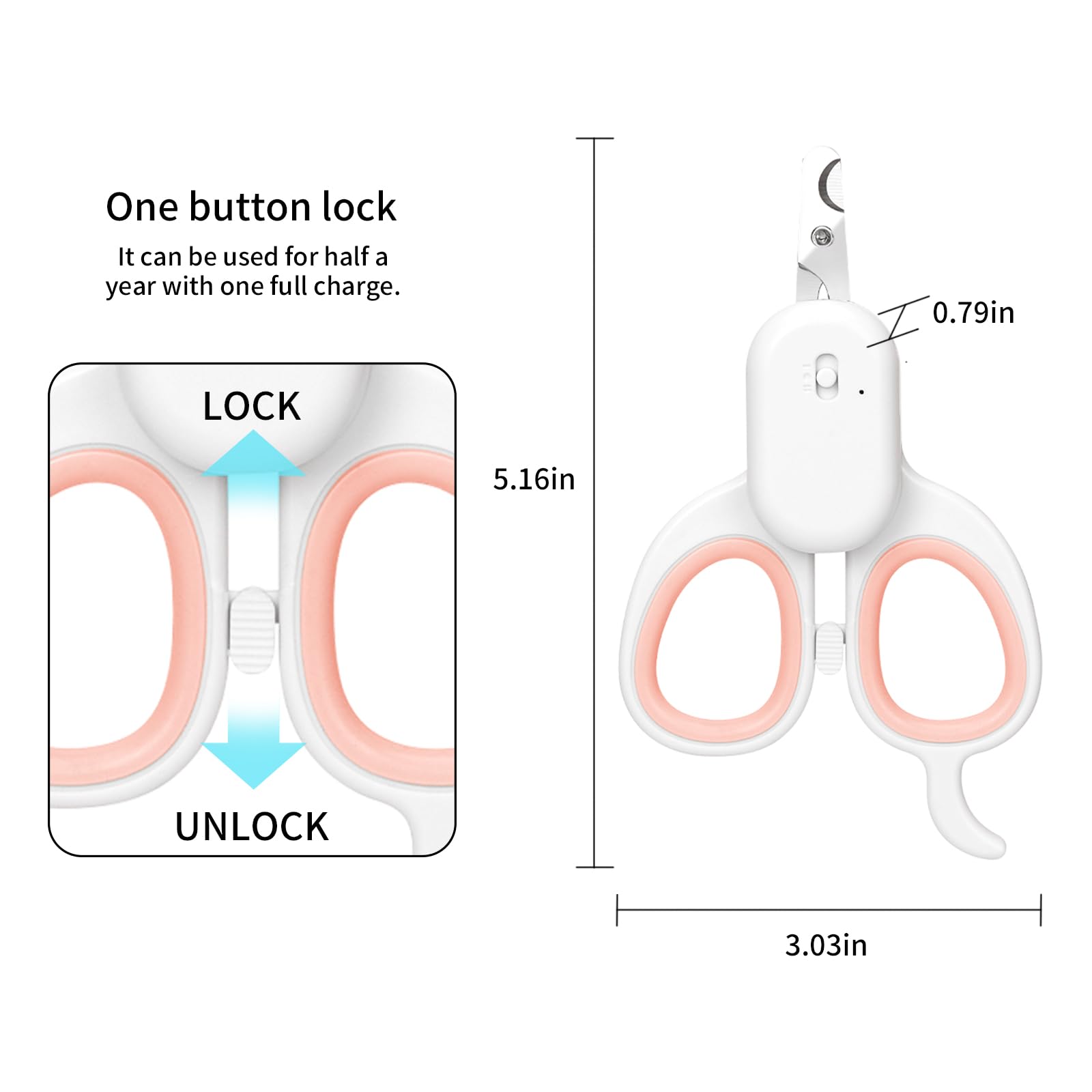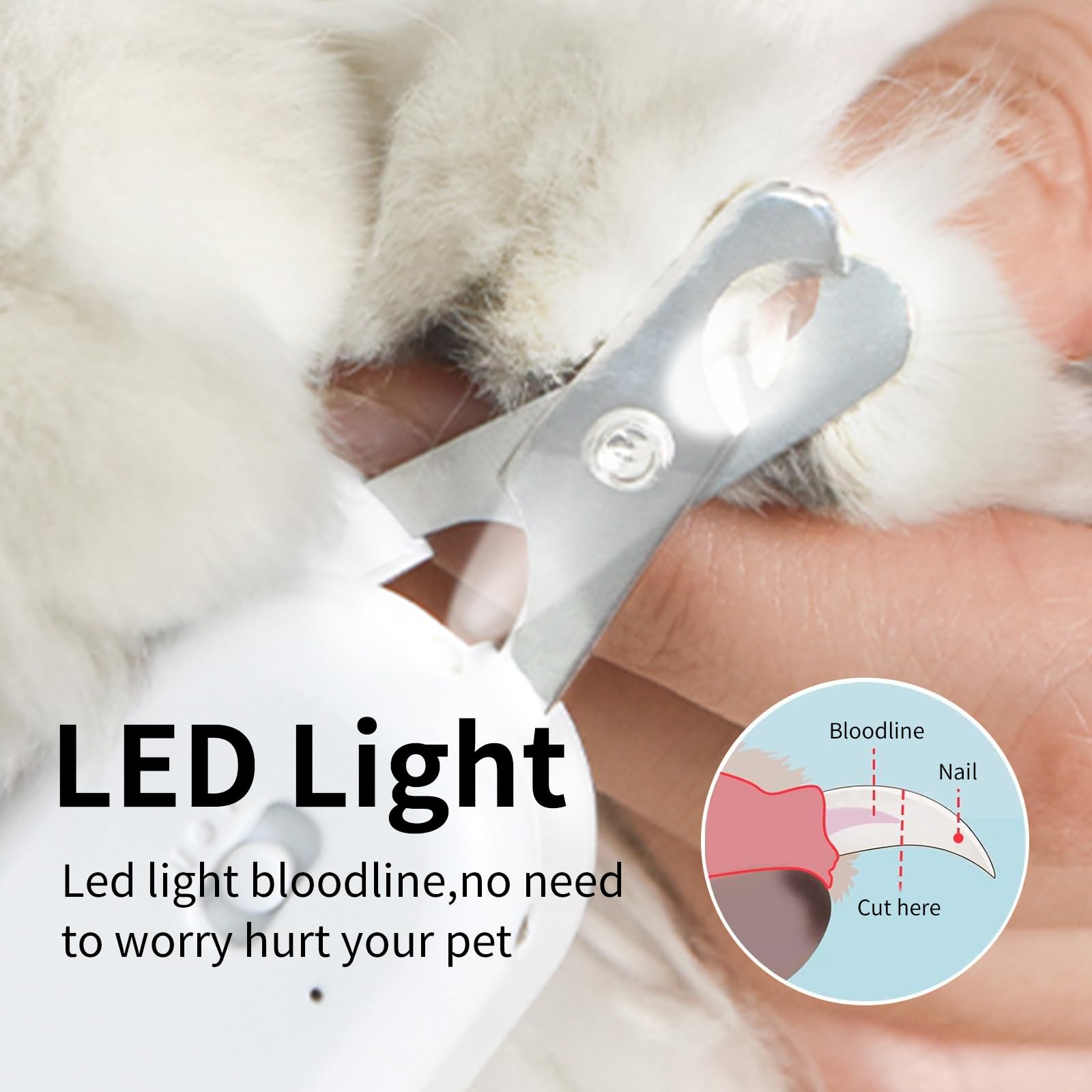- Bright LED Light: Equipped with LED light at the end of this unique cat nail clipper. The light illuminates your pet's nails, allowing you to quickly and easily find where to cut, preventing damage to the blood vessels on your pet's nails